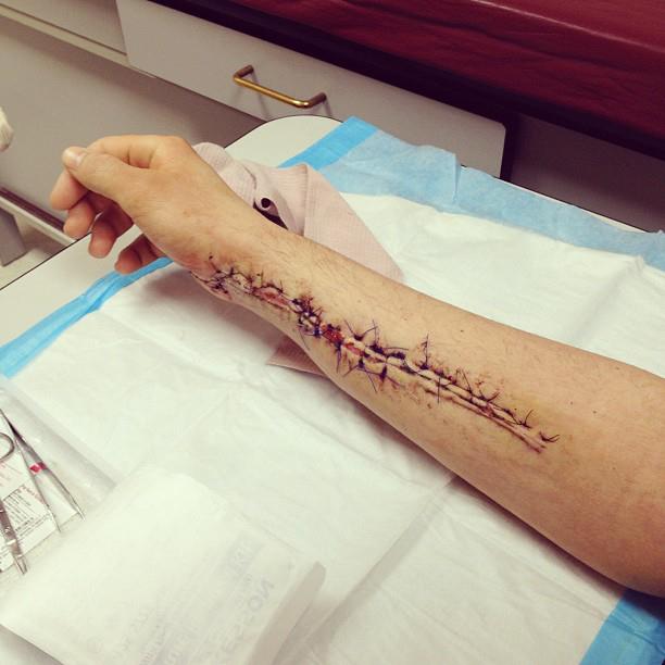 So as many of you who follow me on Twitter may already know, I was hit by a taxi while riding my bike pretty bad about three weeks ago. I ended up breaking my right arm and elbow (my dominate arm, of course,) needing 24 stitches, having 2 surgeries, getting a steel plate and 6 screws, and spending 4 days in the hospital. The recovery’s been good, though. And honestly, I feel like I got lucky… It could have been much, much worse. (And yes, for those of you that have been following me for a while, this IS the second time I’ve been hit on a bike and broken a bone.)