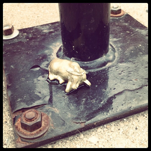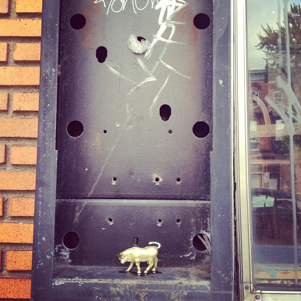 Recently relocated (from New York) artist, Miss Gracki, just brought her little installation project, called the Petting Zoo, of “simply spray painting plastic animals gold and gluing them around the city” to Philadelphia… And I’m kinda really feeling this.