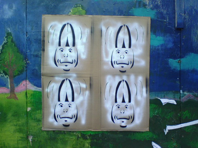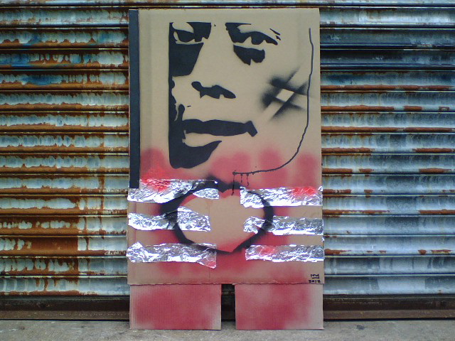 Just received an email from a pair of artists, Karen M. and Anthony C., who said they’re currently working on a number of street art related projects in South Philly, including the “cardboard art” series seen above.