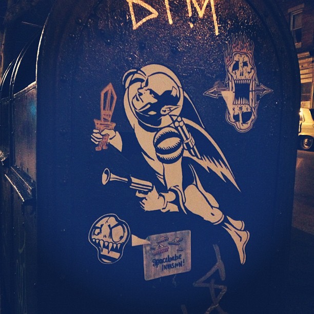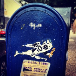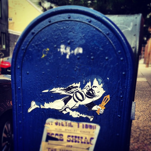 Question is, who’s out to harm Stickman that he should need such assistance? Perhaps the same person trying to peel of the sticker in the mailbox to the left above!
