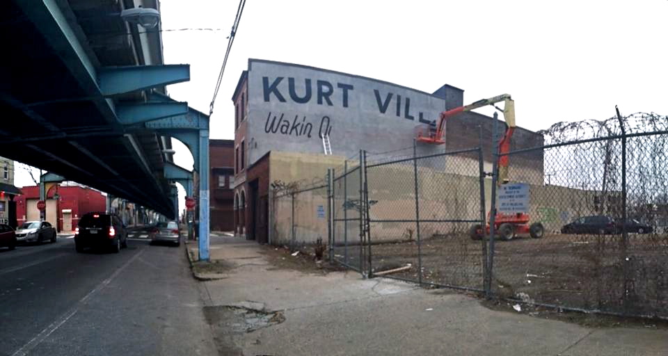Interesting little debate I’ve seen taking place in the comments of at least a few people’s photos posted on Facebook/Twitter/Instagram of this new Steve Powers (aka ESPO, aka the Love Letters artist) mural that’s currently being painted on Front street in Fishtown, right across the street from the El Bar. The debate: Is this mural an homage or an ad?