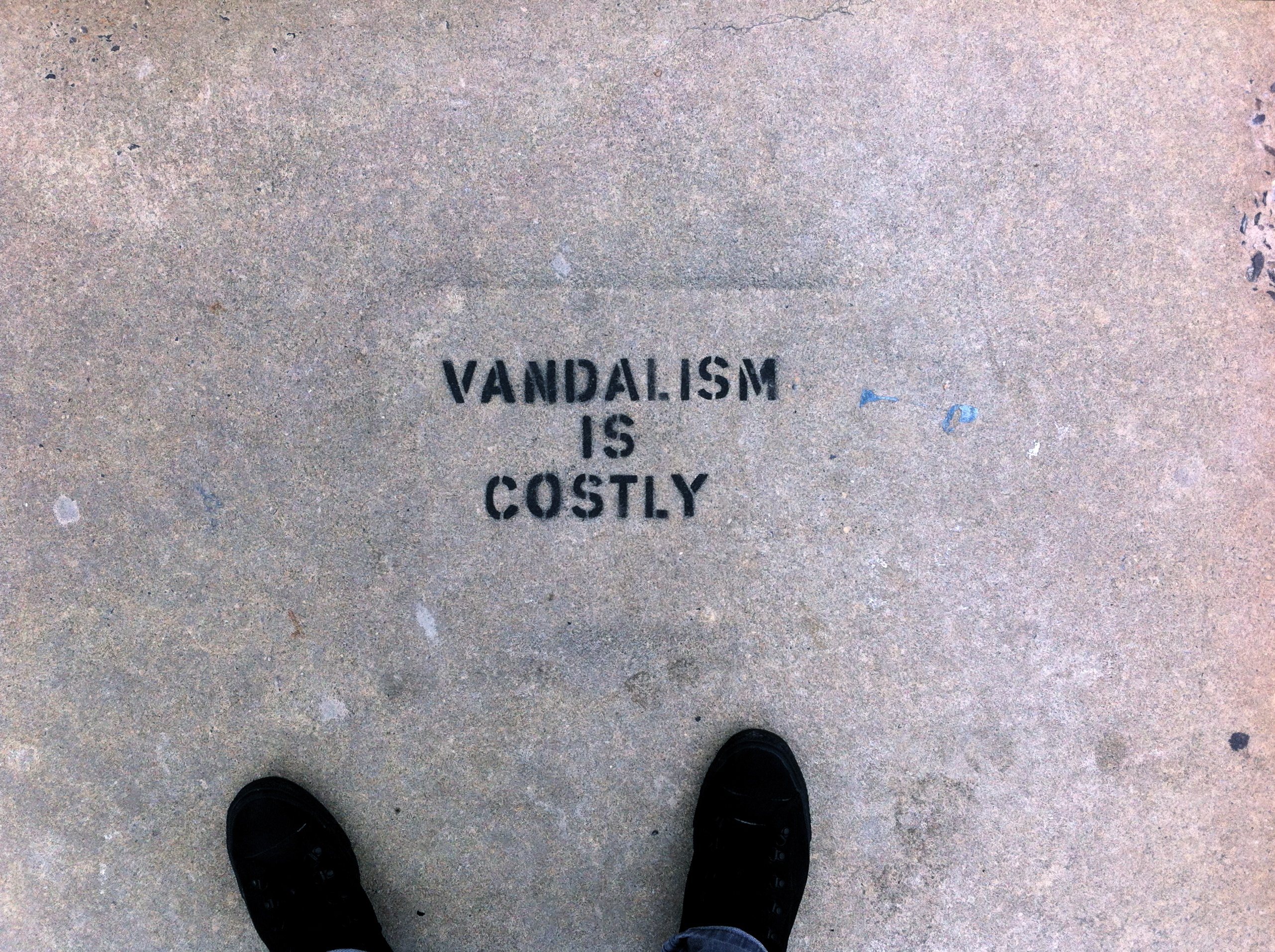 Stencil on the ground at 6th and Washington…Â How self aware!