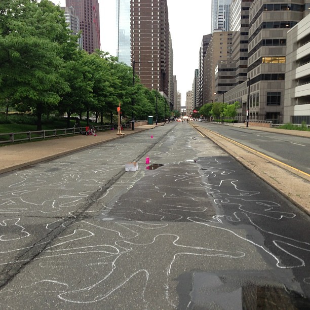 The Kickstarter campaign raised over $8K to buy chalk (a LOT of chalk,) to get the proper city permits allowing them to block off a section of JFK boulevard, to build a website and to get photographers to document the whole thing… Kind of surprised I didn’t hear more about this, actually. Either way, really cool idea.