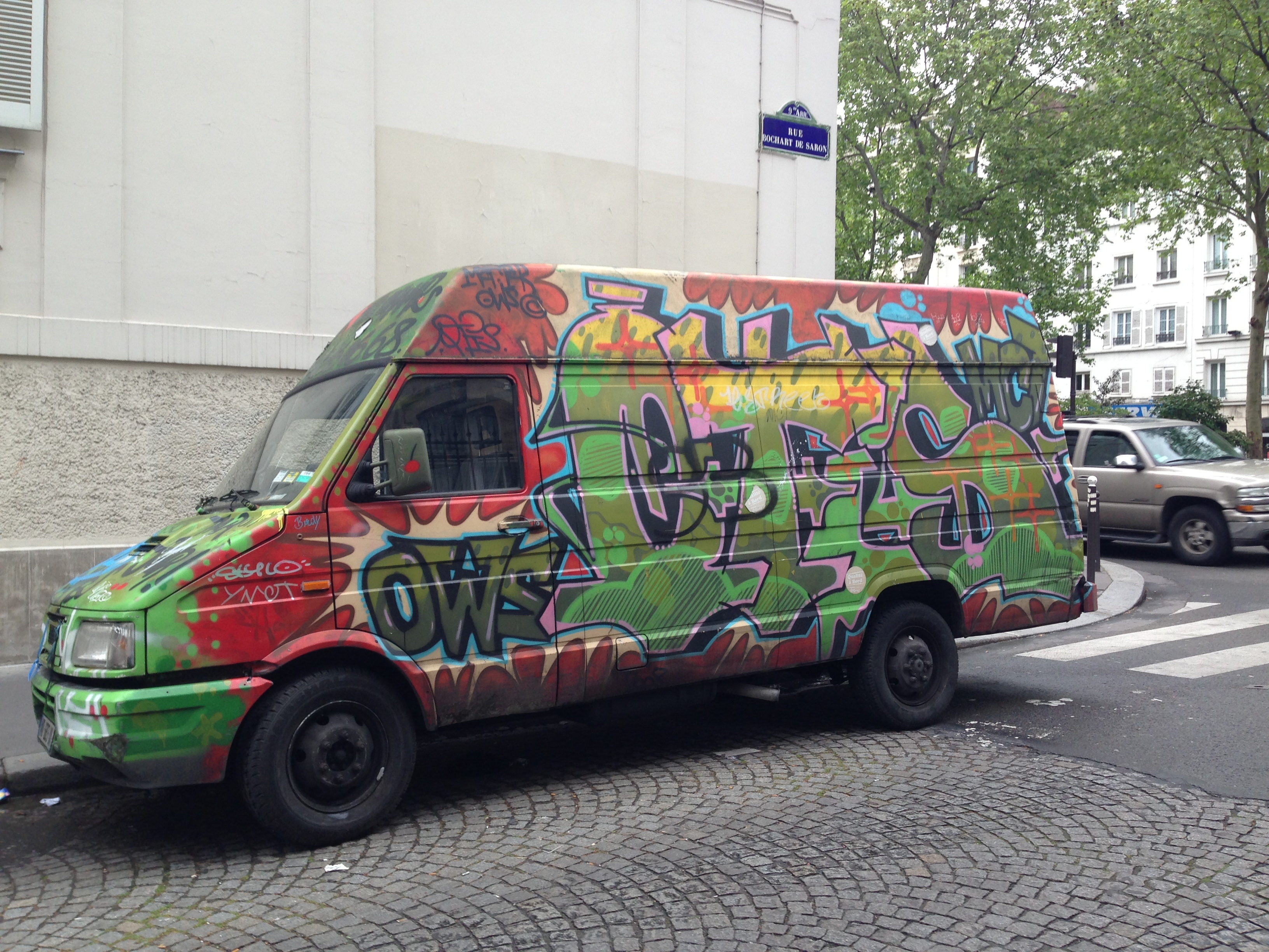 Philly dude (University of Pennsylvania grad) and reader of this blog, Zayne Savall, took up my offer to send me photos of street art Philadelphians spot on their travels around the world. And he’s sent just the above photos from Paris! Including, has he says, a ton of really interesting van graffiti, a building painted to appear as those it was bleeding in front of the Seine river close to Quai de la Gare, and a mysterious poster ‘advertizing’ a show at a venue that burnt down years ago with a particularly amazing lineup (too good to be true, as it were.)
