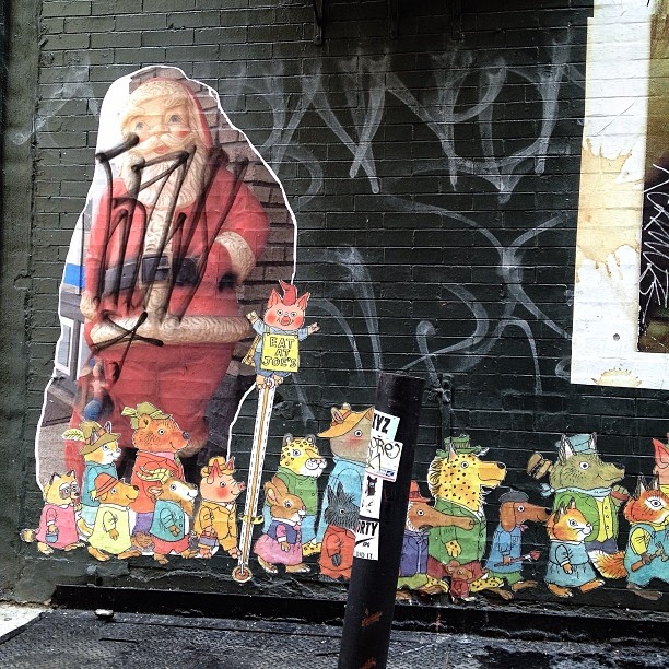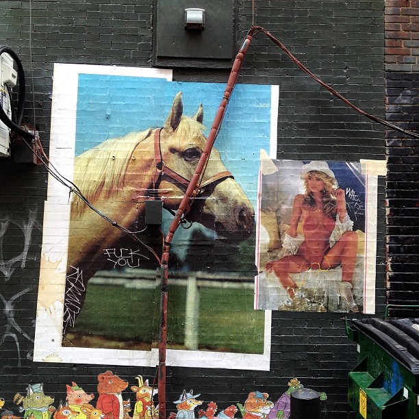 Side Note: While I do really love these pastes, they appear to have been put up over some graffiti. And, as you can see, a few graff writers let them know that they were not too happy about it.