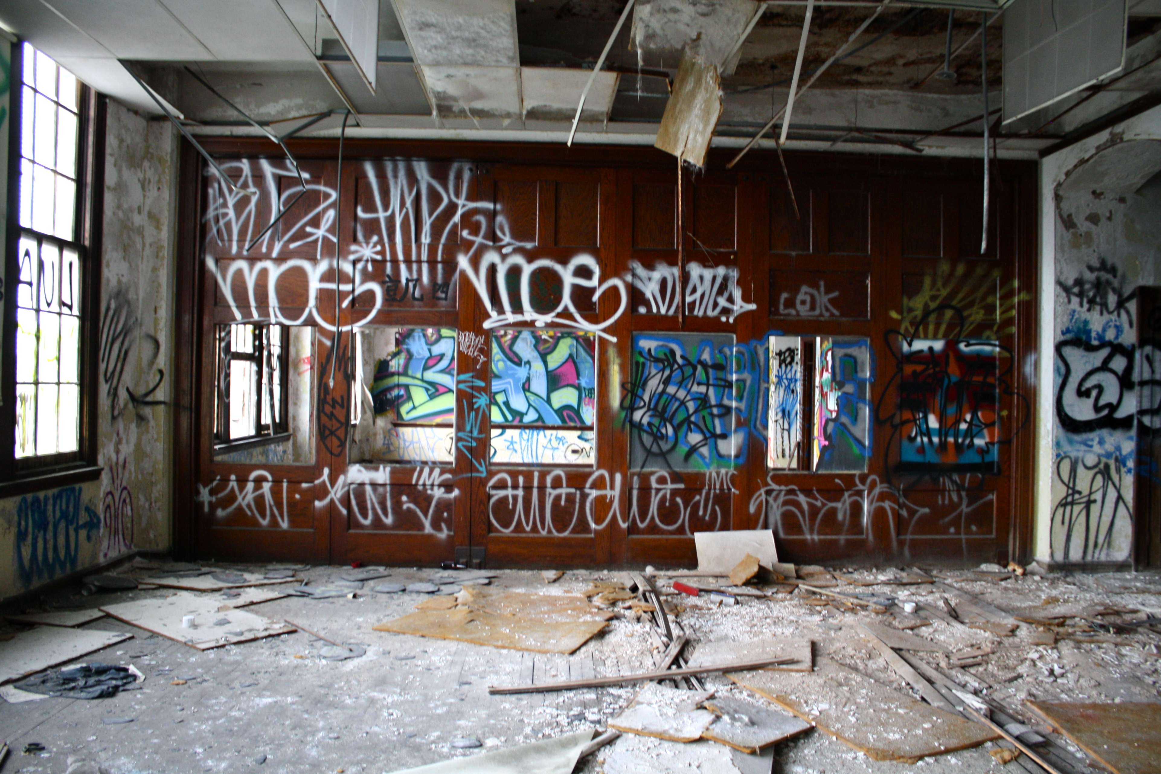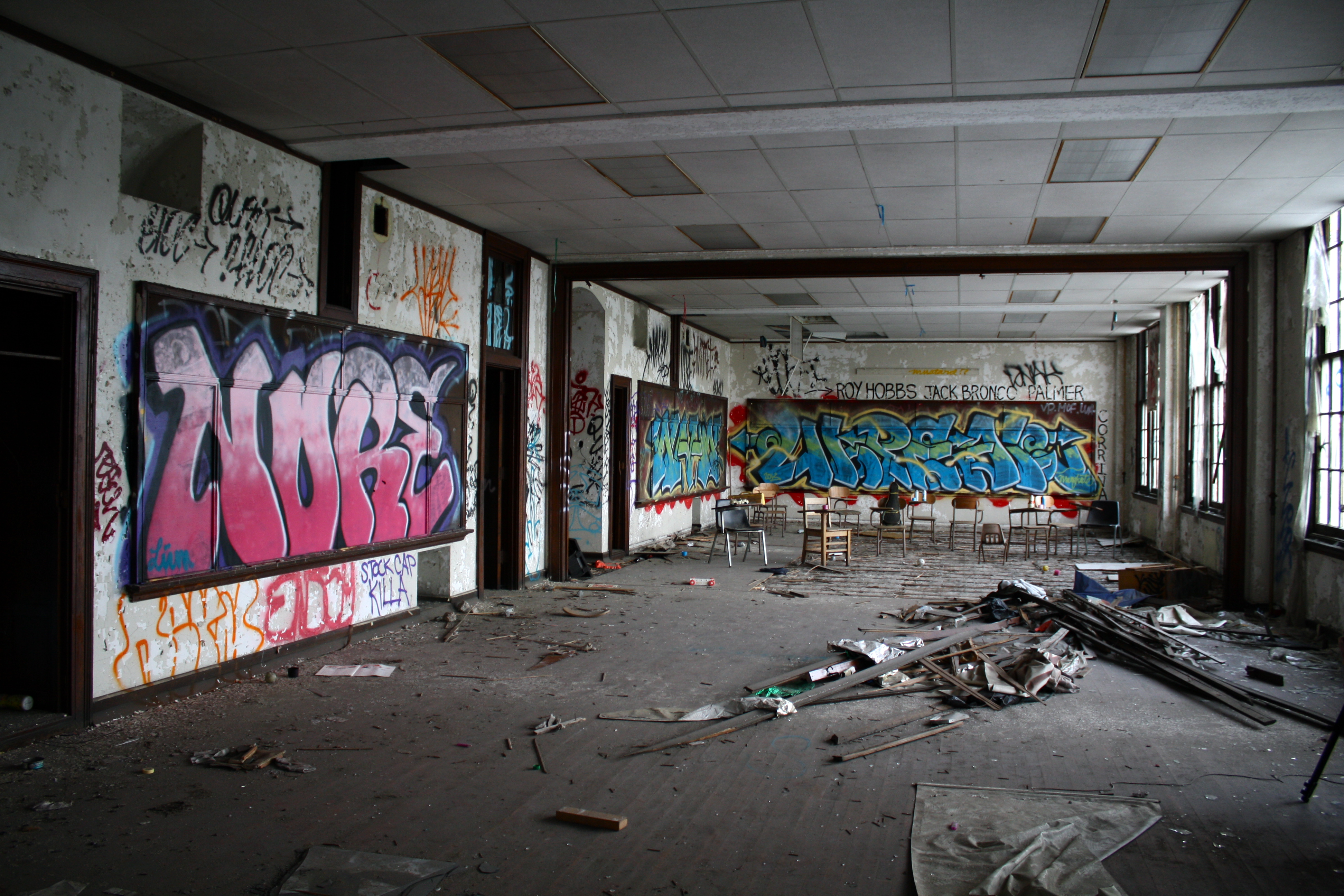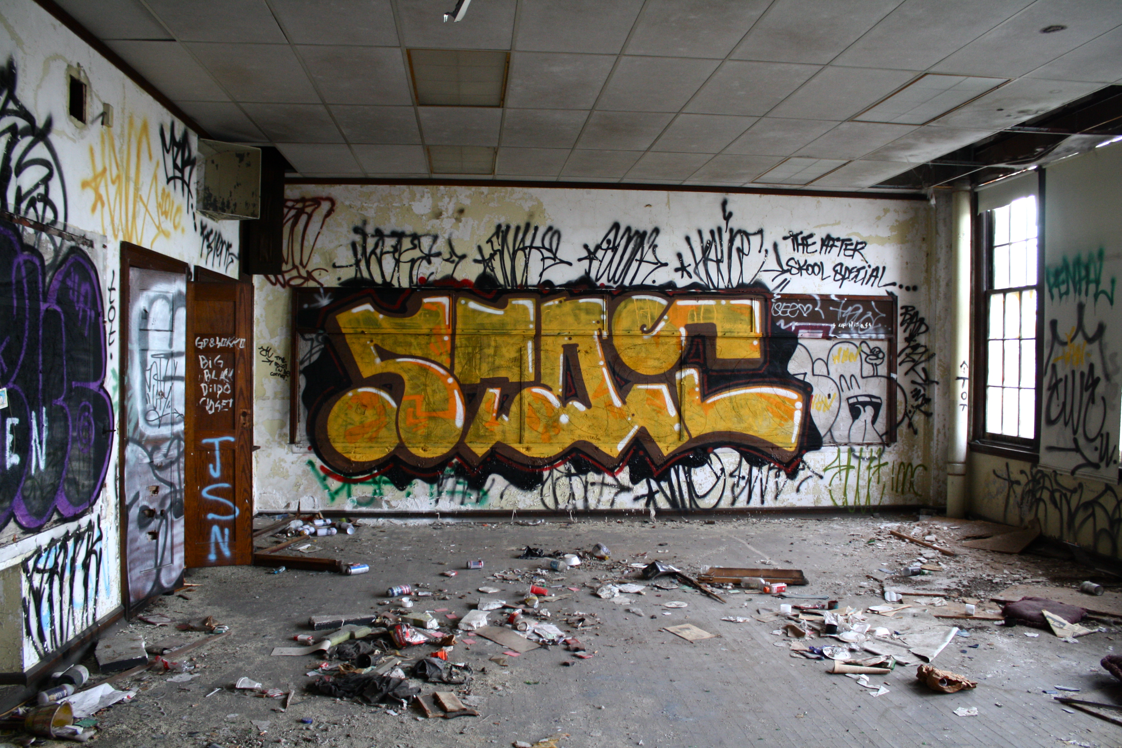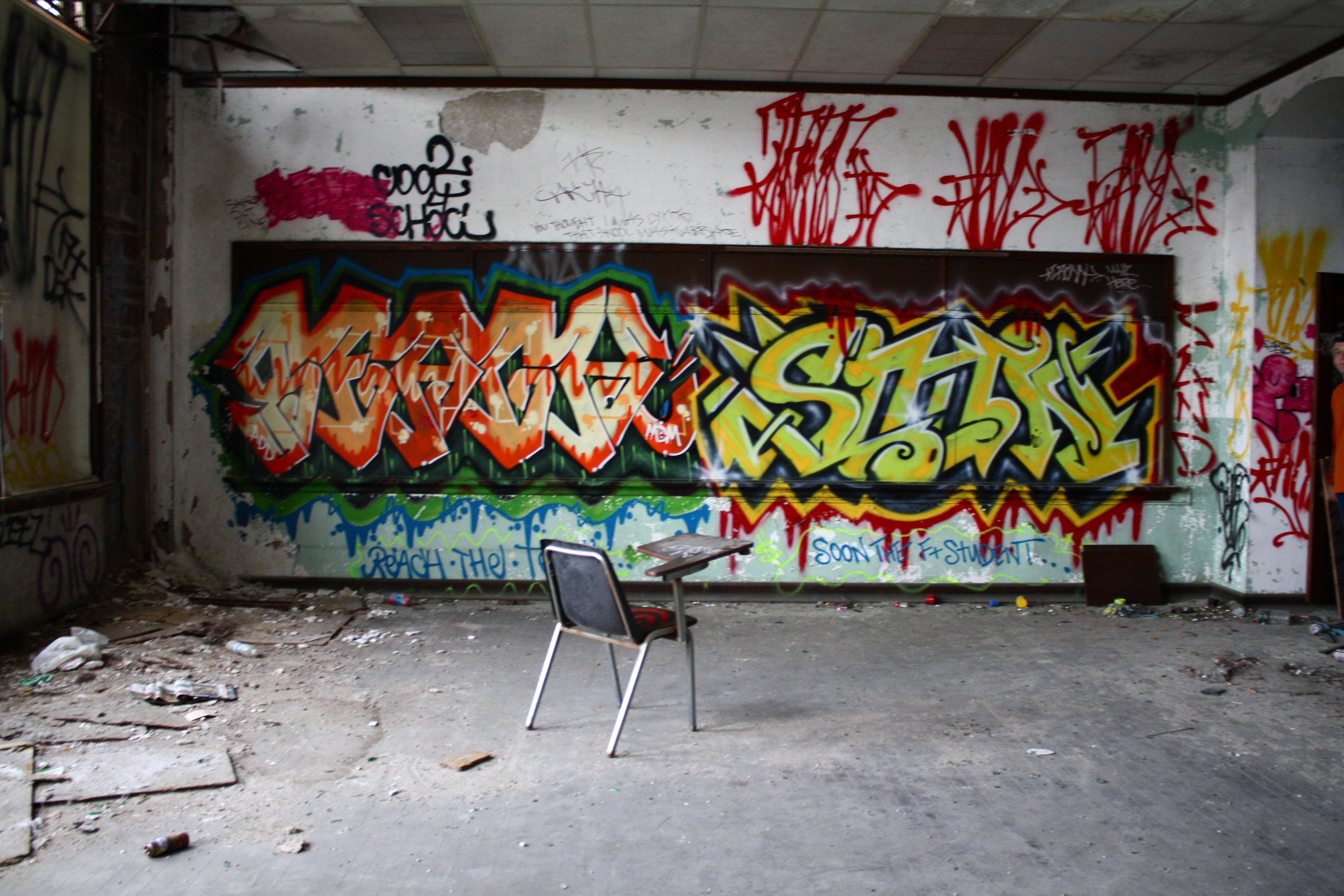 Located in North Philadelphia (don’t want to give too much away,) this school is sadly not the only one that’s been left abandoned by the city. Full of some amazing works of graffiti and stocked with a surprising amount of supplies (books, desks, an oven, etc.,) the space looks like it was closed one day without warning and left to rot.