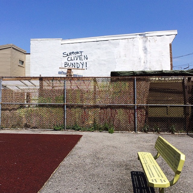 Spotted this freshly spray painted plea to ‘Support Cliven Bundy’ on a house in Port Richmond over the weekend…