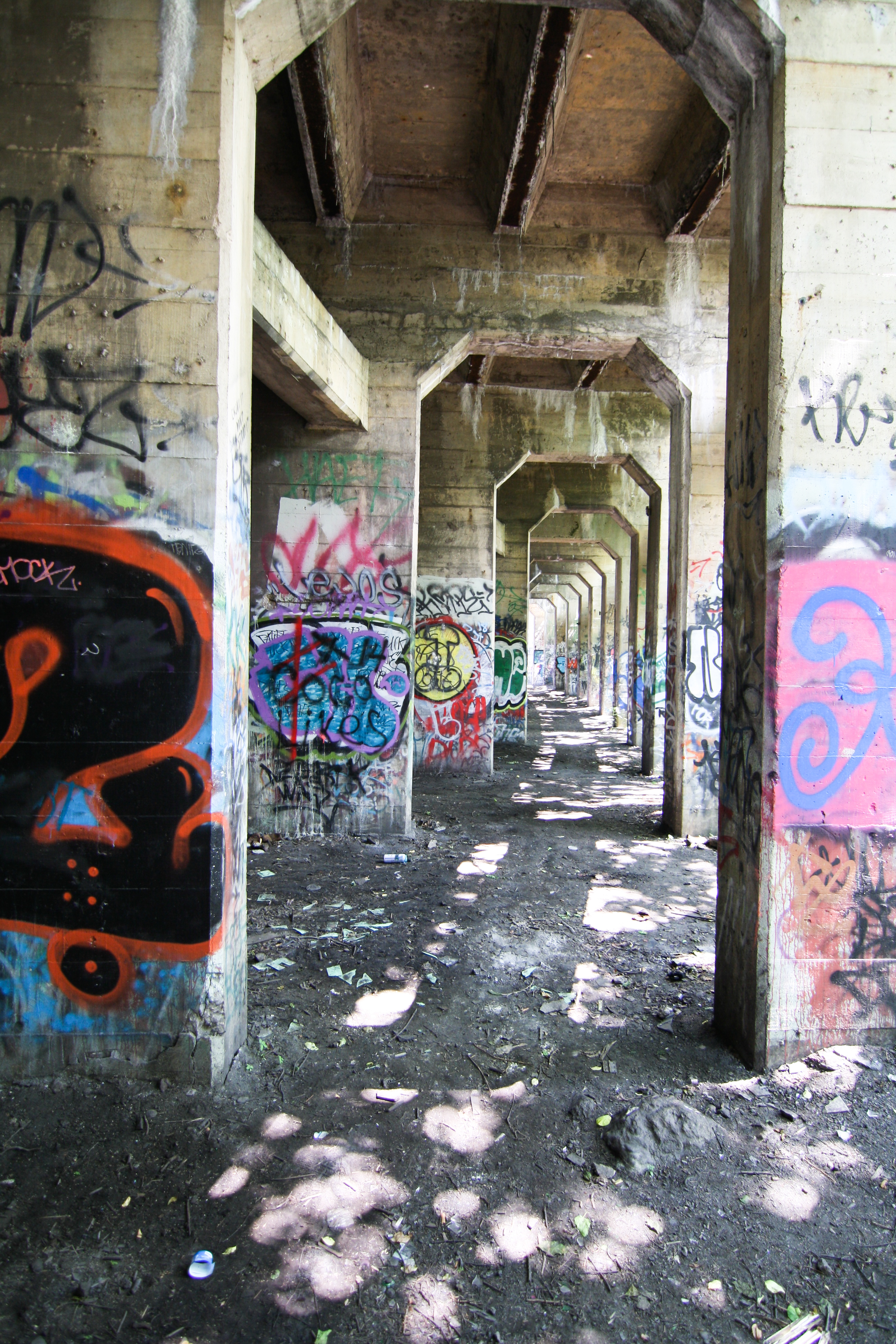 Not unlike most ‘abandoned’ places I’ve seen in Philly, Graffiti Pier has also become a bit of a mecca for graffiti artists and photographers alike. I use ‘abandoned’ in quotes only because it’s quite clear that people have not abandoned these spaces, but in fact people have found new uses for spaces abandoned by our city’s old industries.