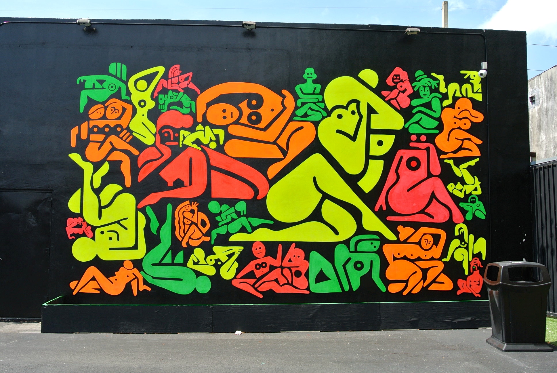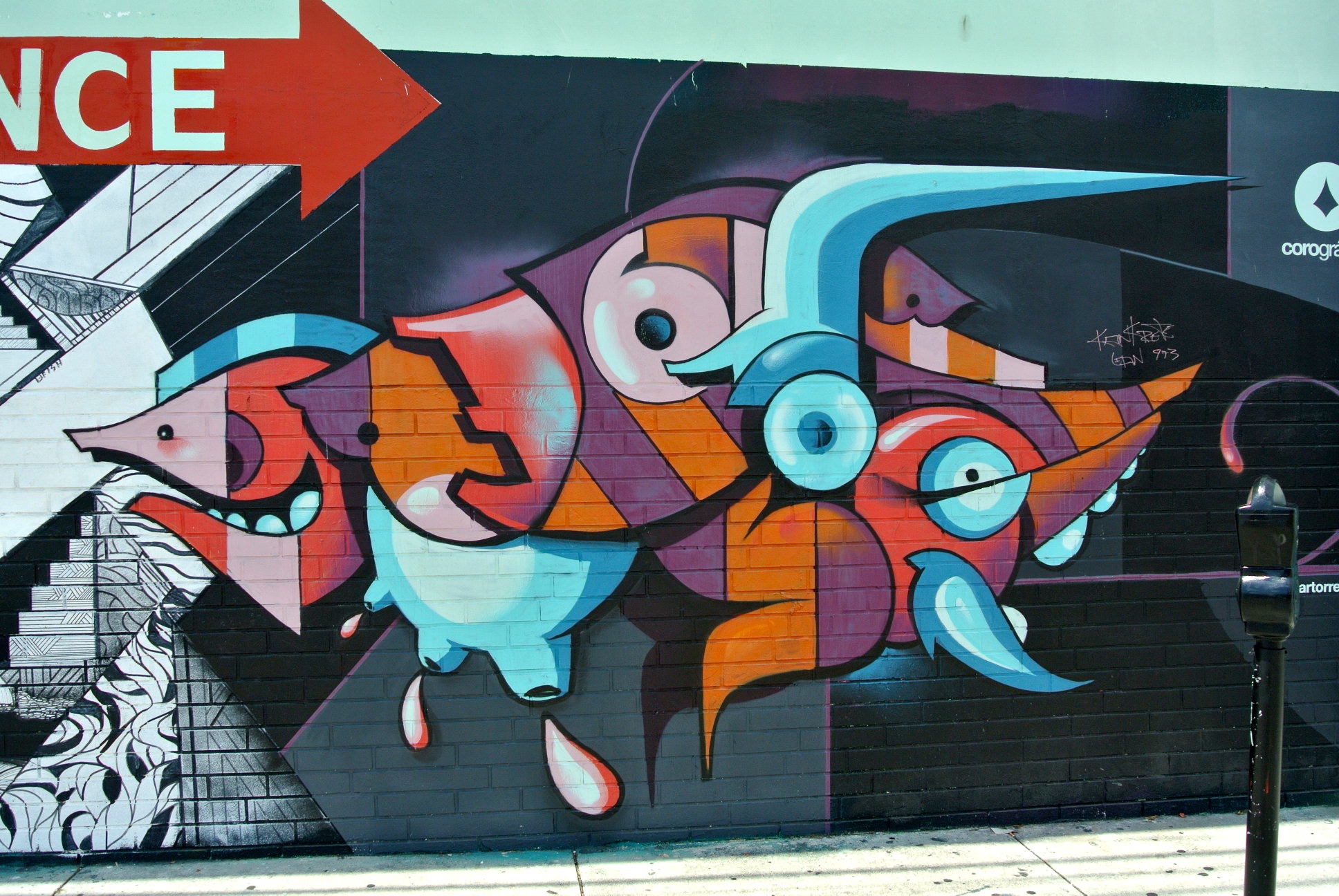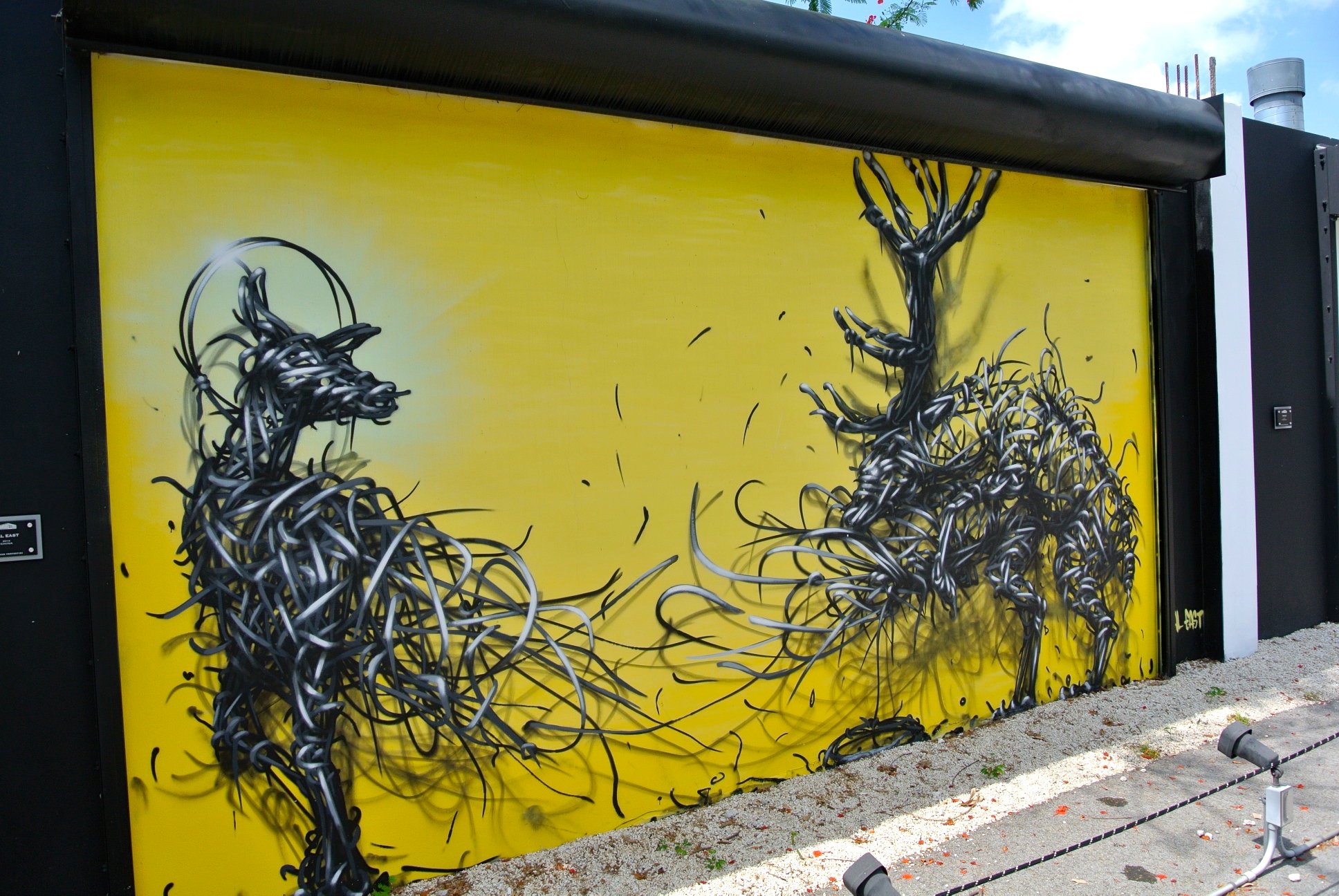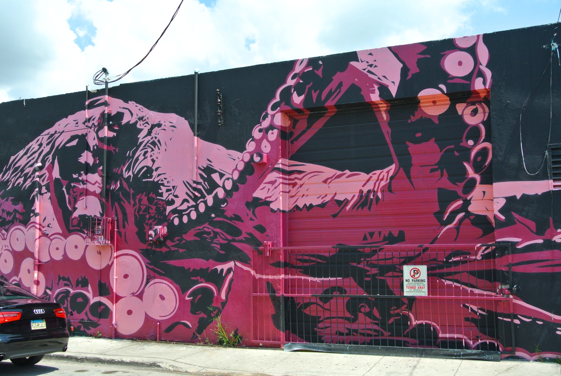 Originally conceived in 2009 by the late Tony Goldman, the project continues to curate some of the most talented graffiti and street artists from across the globe. The nature of the project encourages other artists to create pieces outside of the curated walls – allowing you to explore and see what surprise may lie around the next corner. In these photos you’ll see pieces created by Os Gemeos (São Paulo), Shepard Fairey (Los Angeles), Aiko (Tokyo), HOW & NOSM (NYC) , b. (Athens), Neuz (Mexico City), Vhils (Lisbon), Nunca (São Paulo), Pez (Barcelona), Cope 2 (NYC), Retna (Los Angeles), Ron English (Illinois), Ryan McGinness (Virginia Beach), Dal East (South Africa) and more.