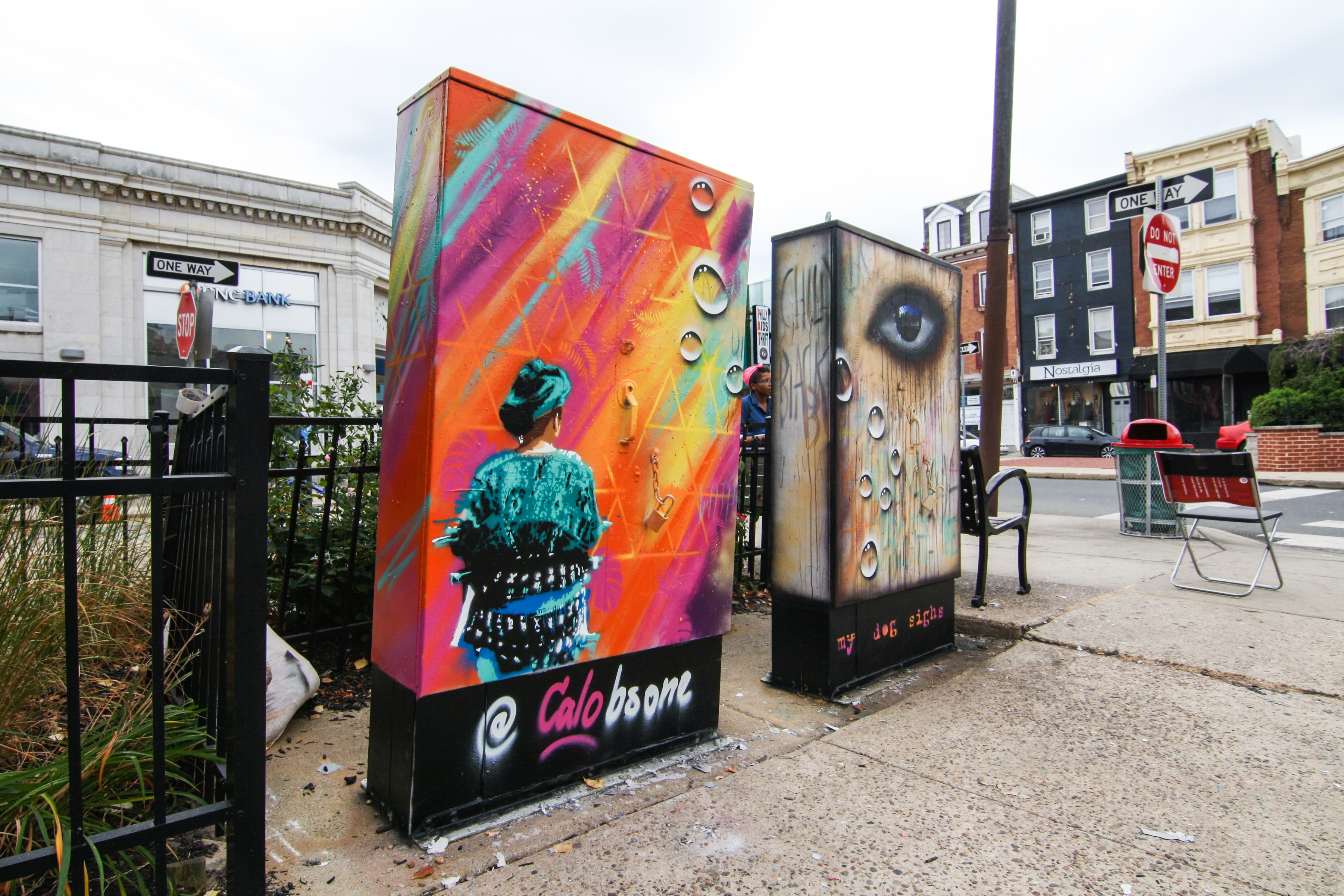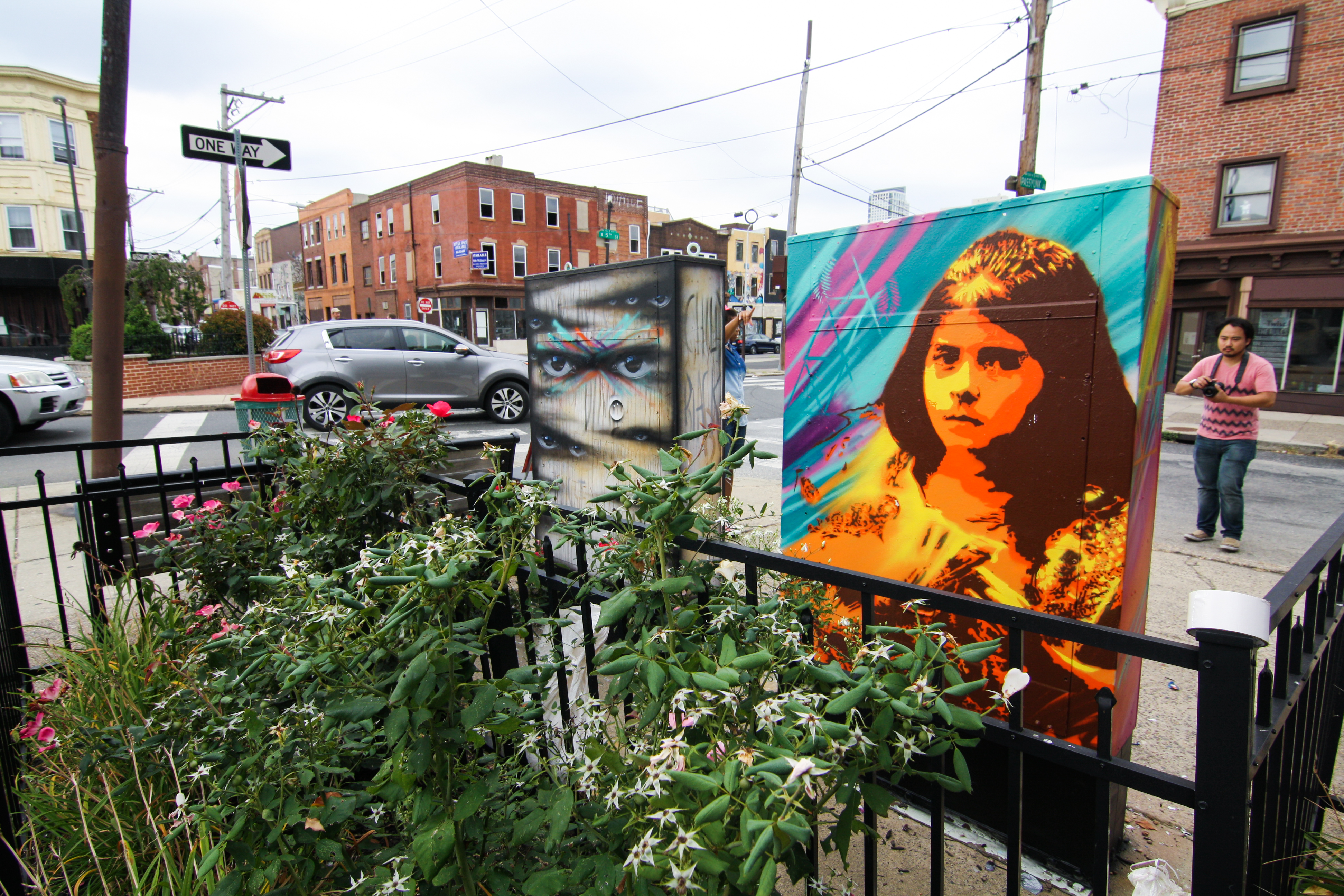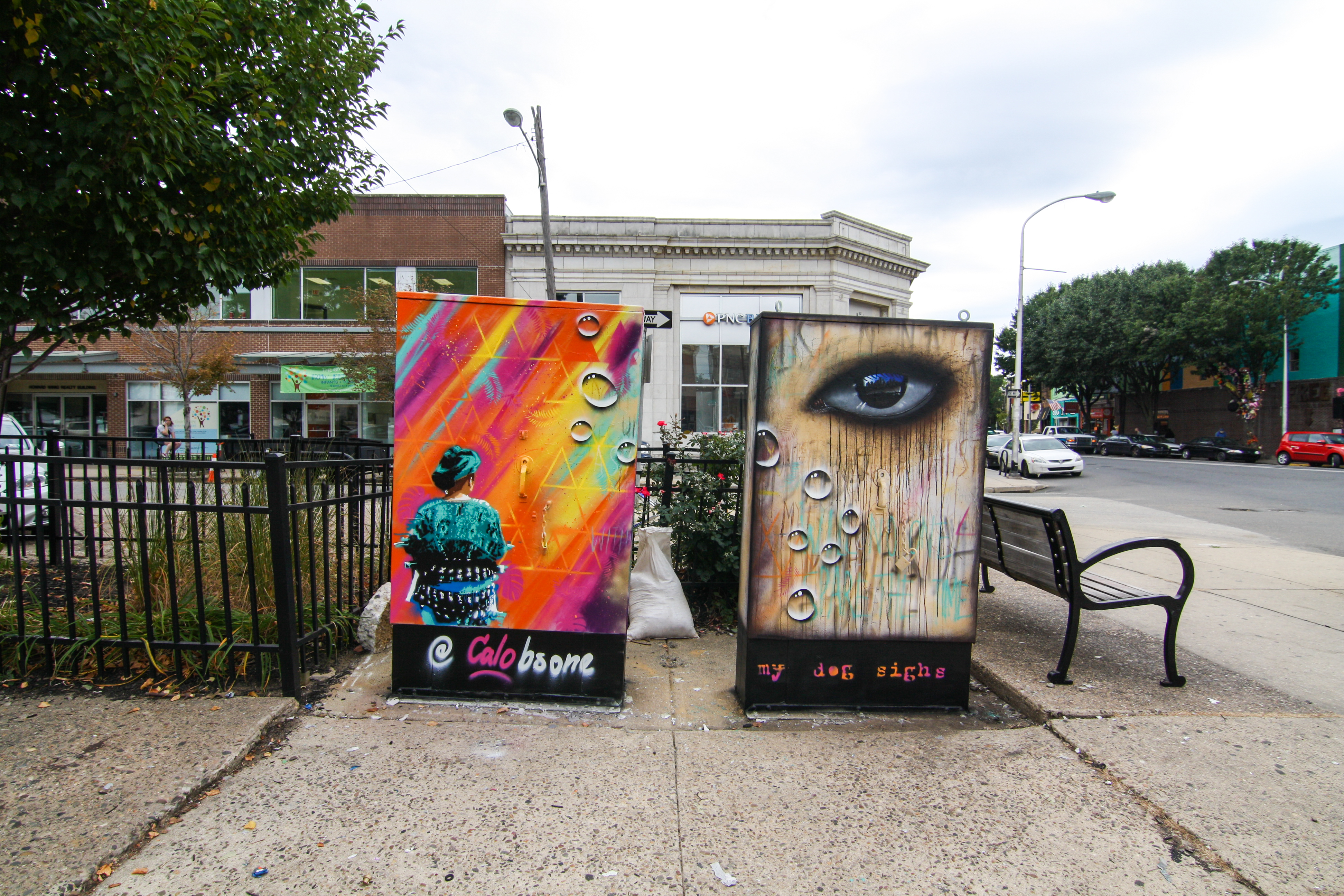 Three lovely new installations by three awesome artists along Bainbridge street this weekend (between 3rd and 5th in Queen Village) thanks to the HAHA x Paradigm Art Project!