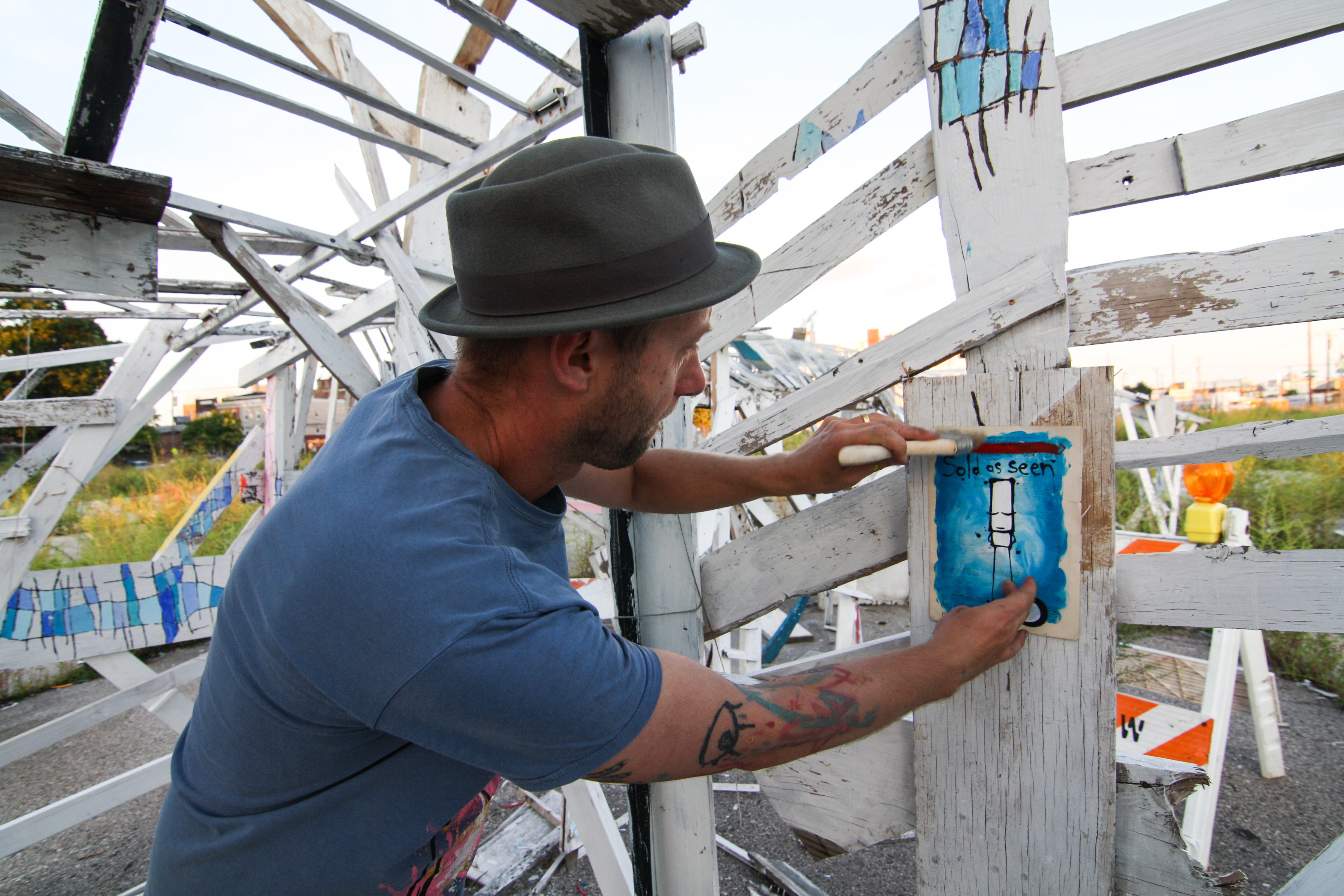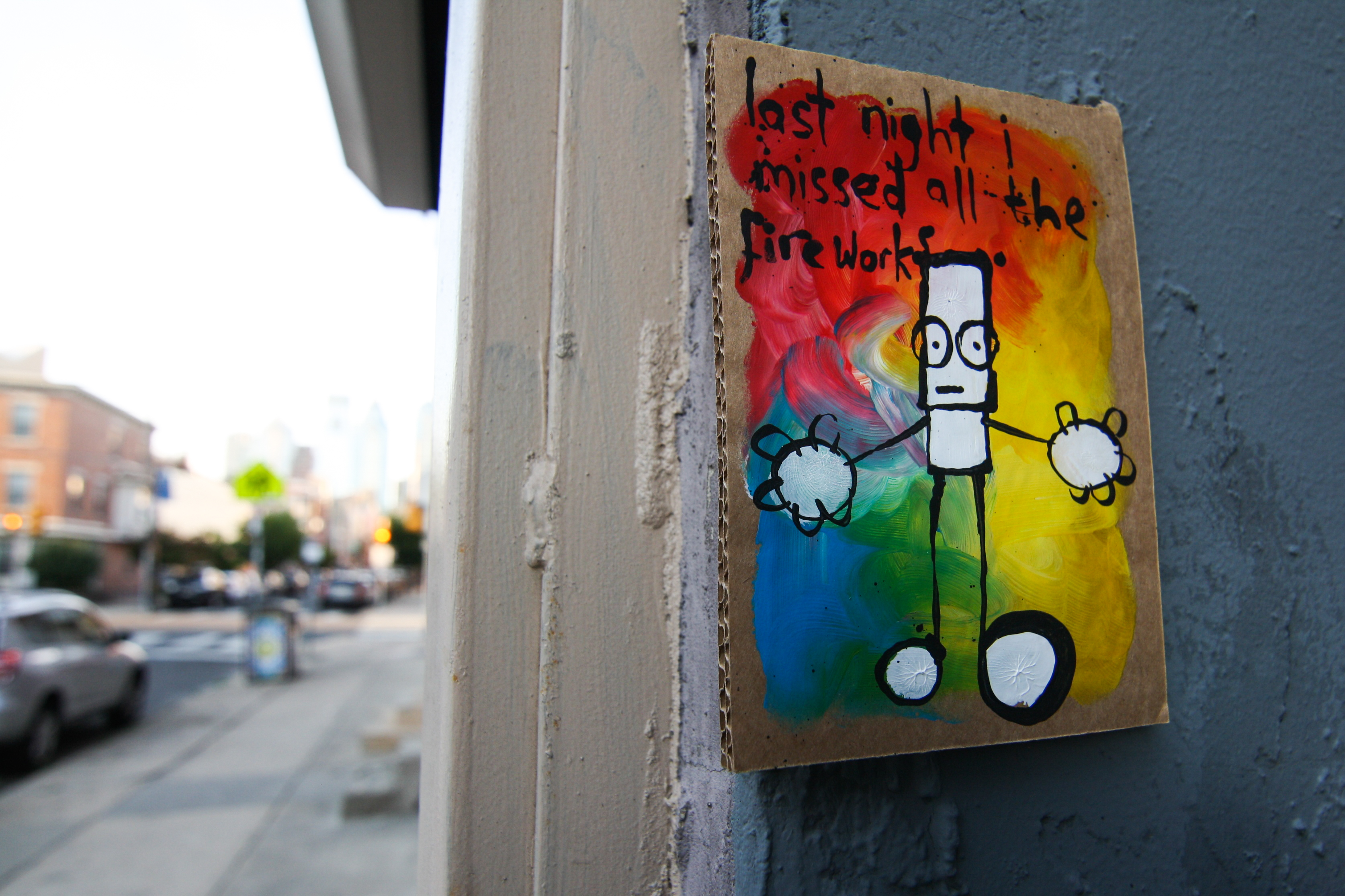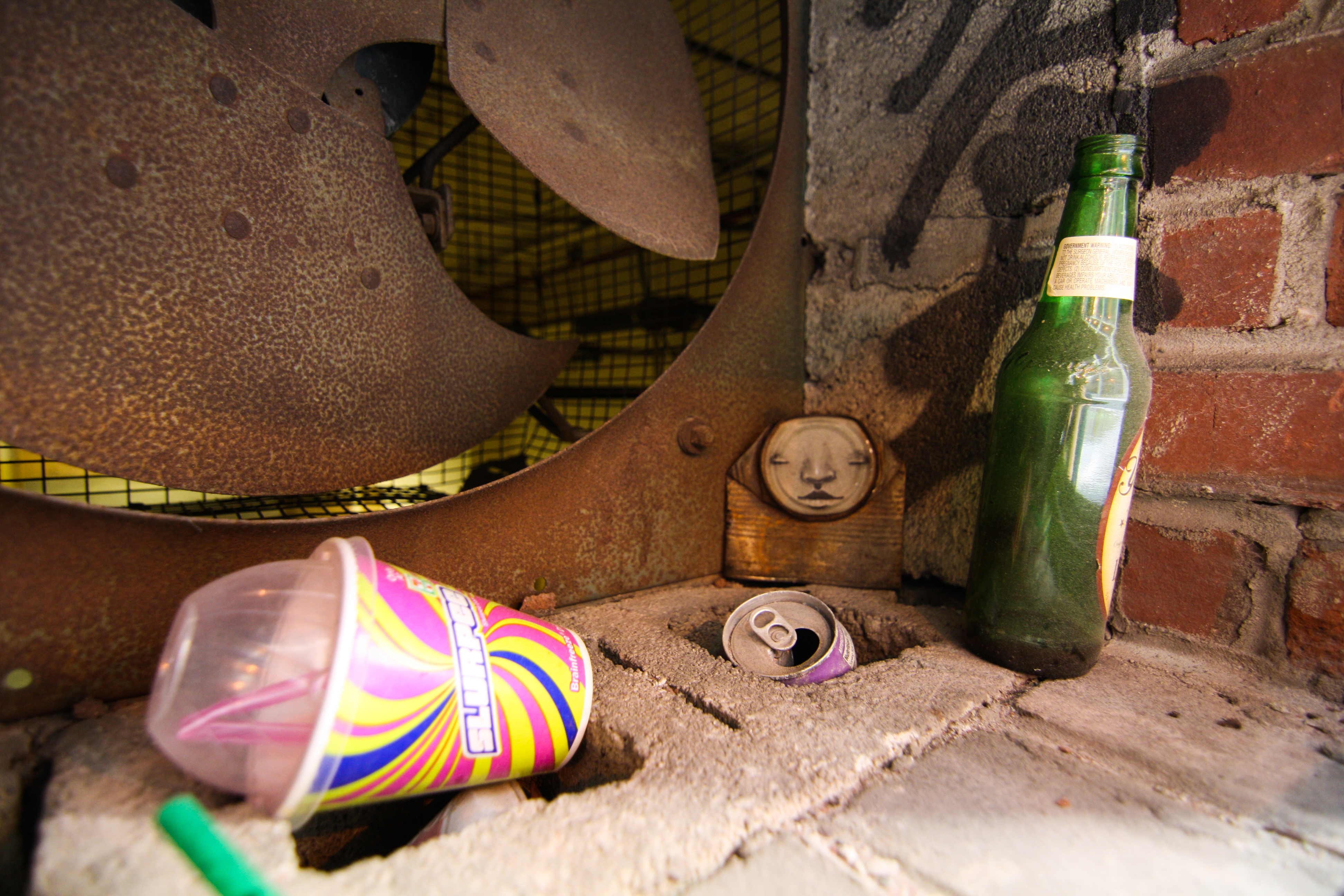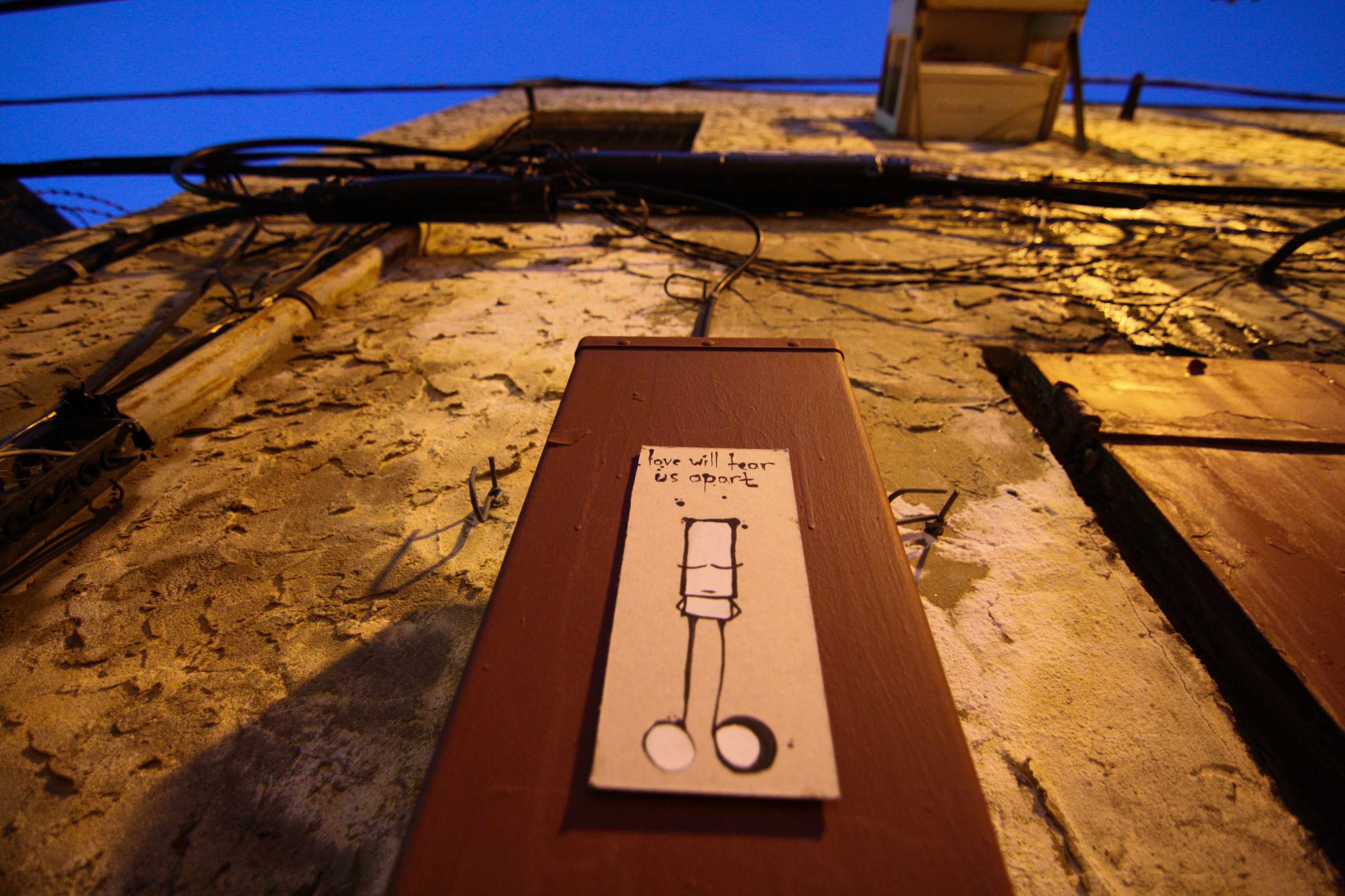 Naturally, however, My Dog Sighs found some time to install a number more pieces, including four of his famous tin cans, in different spots all around the city. (Not naming locations at the artists request.) And, to my delight, I got to follow him around and photograph the whole thing.