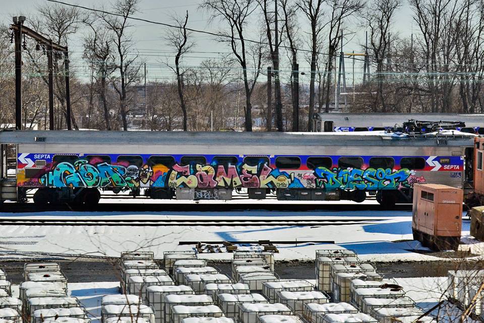A SUPER rare sight, Philly photographer Damon Landry spotted this SEPTA rail train car with an an end to end burner back in January. As Damon explains on his Tumblr, these are usually buffed before the paint even drys!