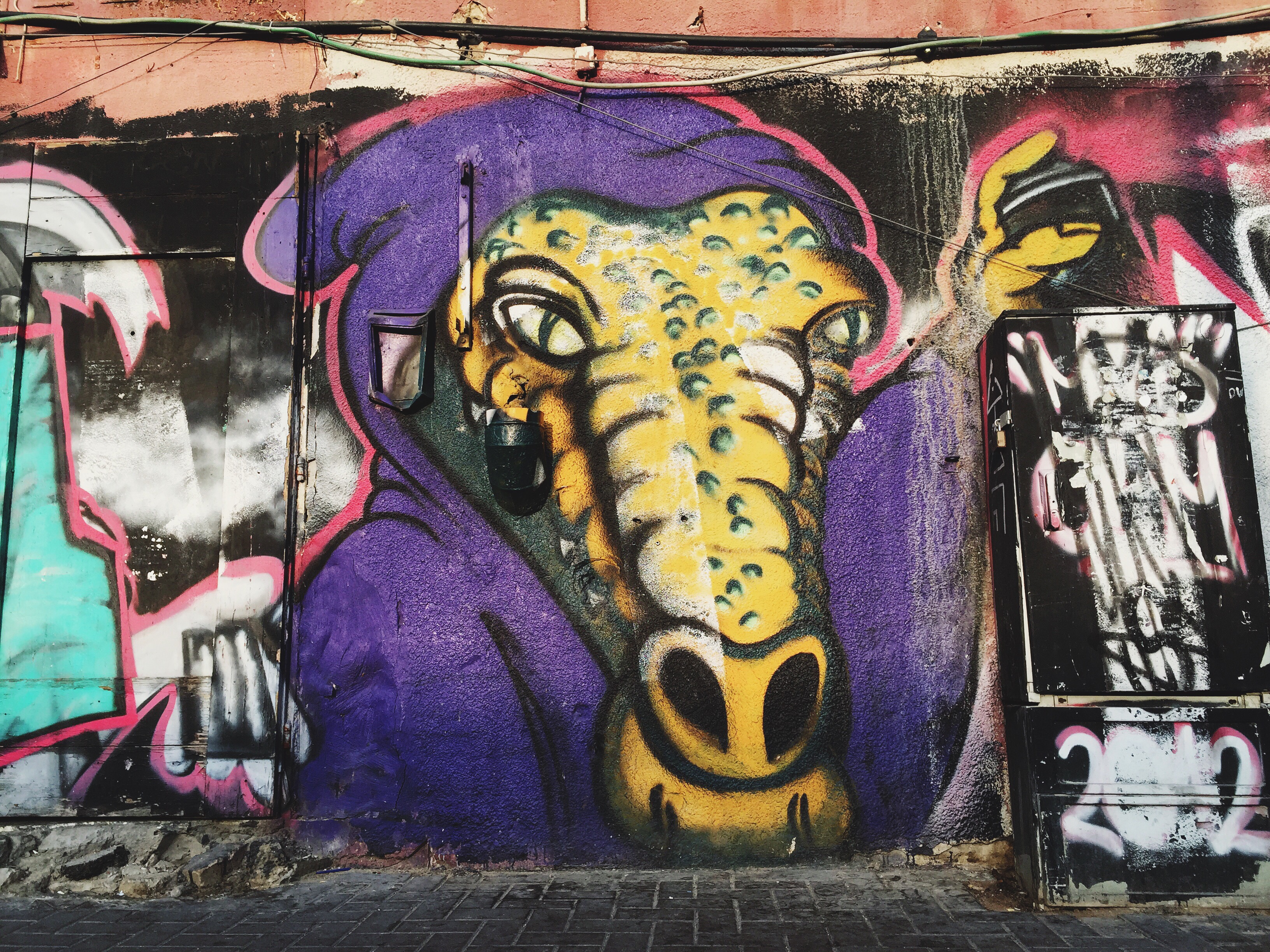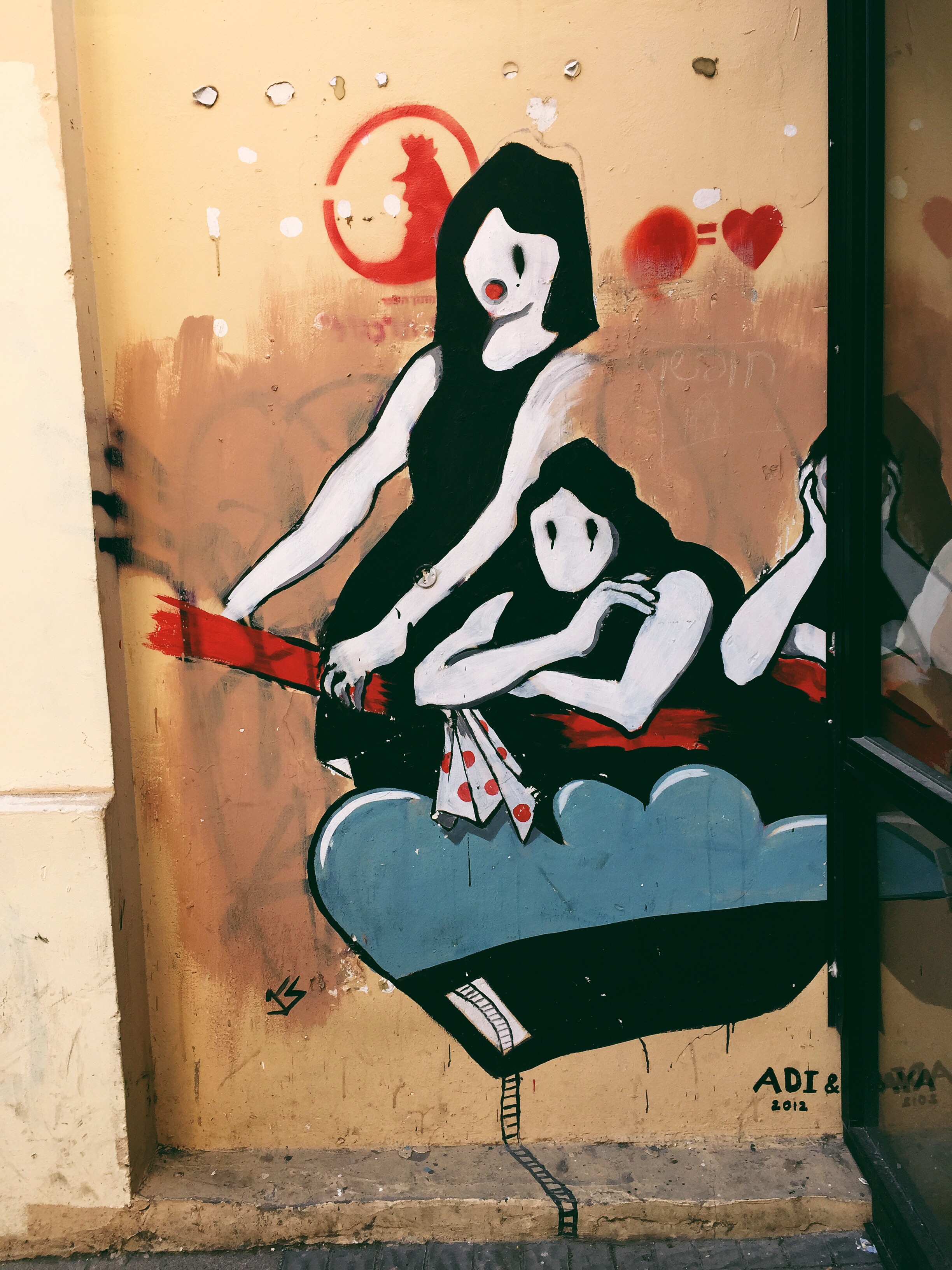 INCREDIBLE photos today of some Tel Aviv graffiti from Geoff Kees Thompson, of This Old City (undoubtedly one of my favorite local blogs. If you’re not regularly reading you crazy.) Geoff also happens to be one of the founders of the 5th Square!