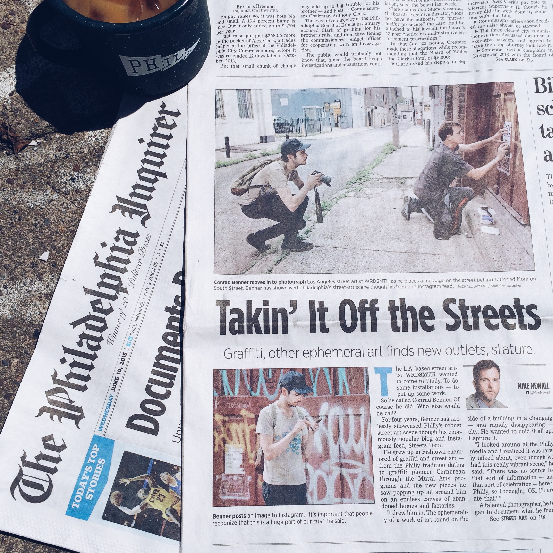 “For four years, Benner has tirelessly showcased Philly’s robust street art scene though his enormously popular blog and Instagram feed, Streets Dept… He has helped bring national respect to a Philadelphia art scene that deserves it.”