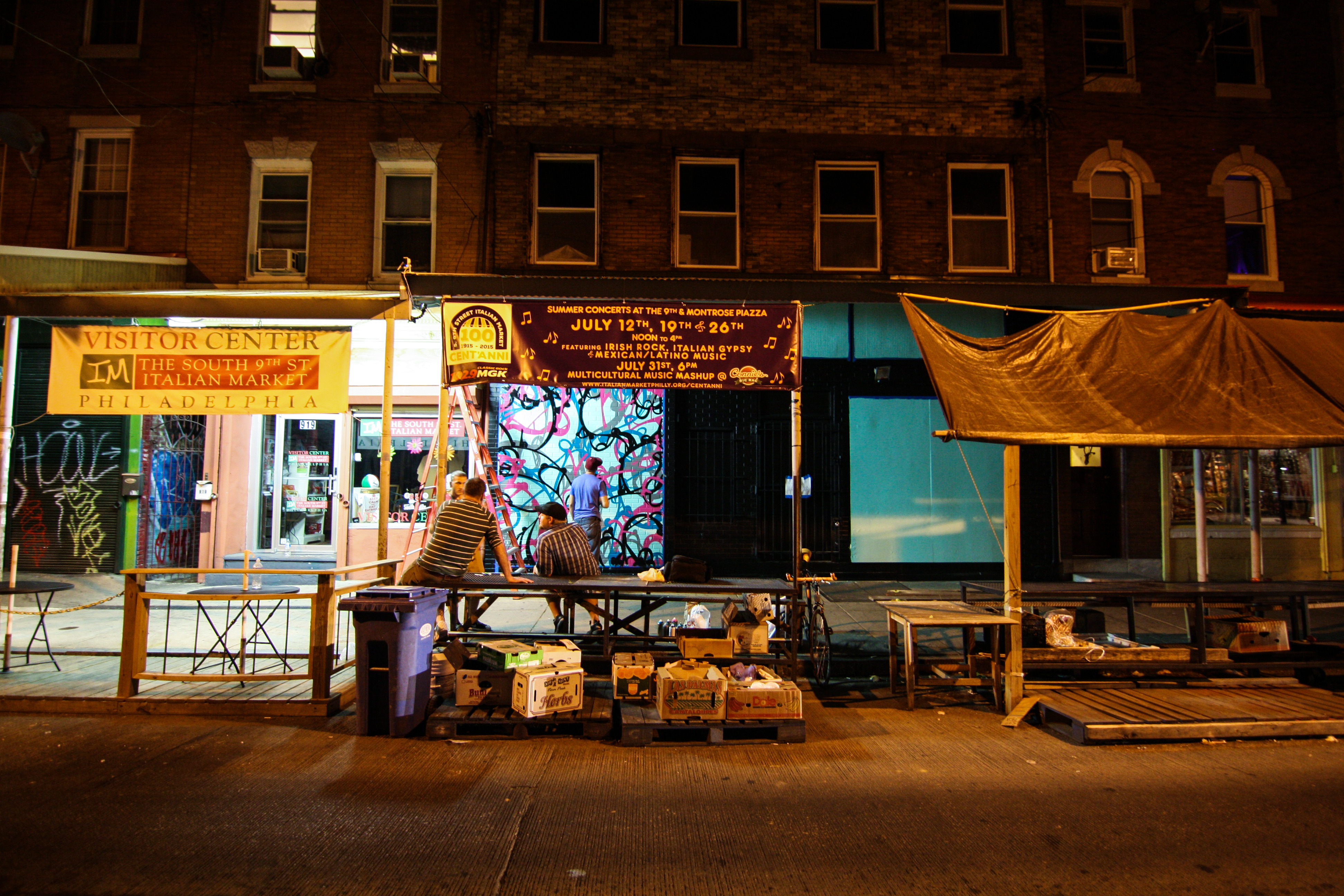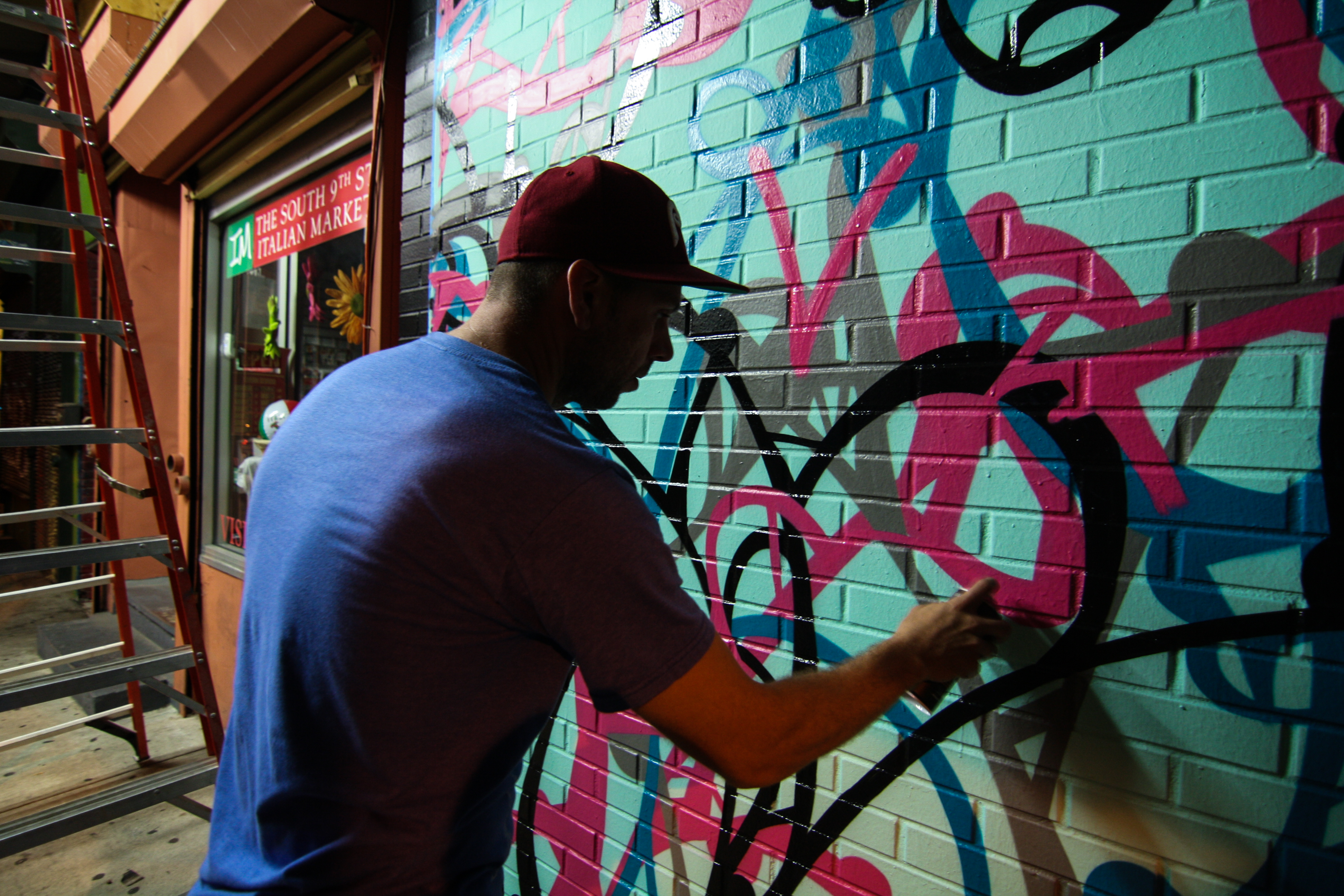 AWESOME new 5-panel mural by Seper going up last night on 9th street in the Italian Market!