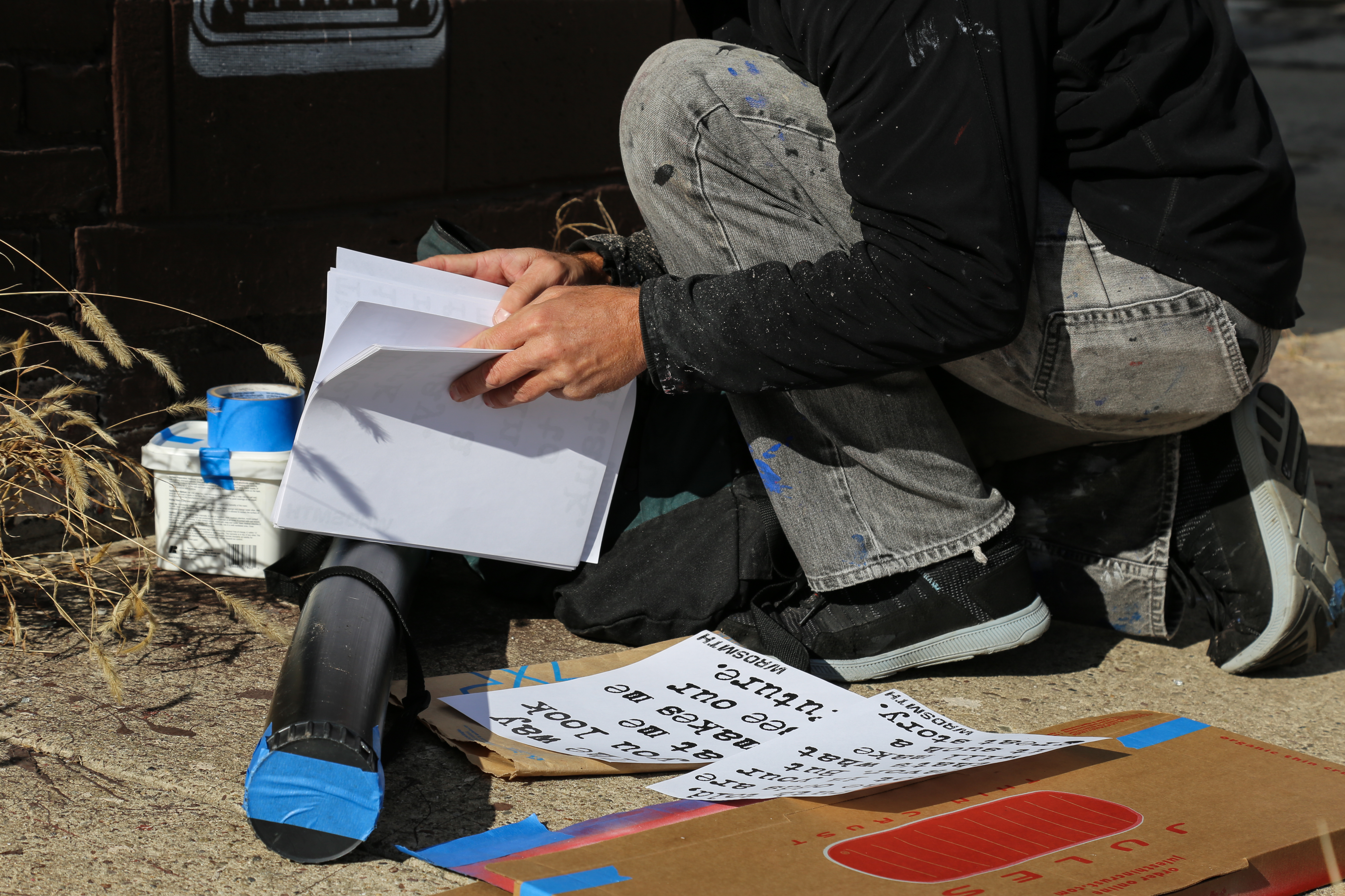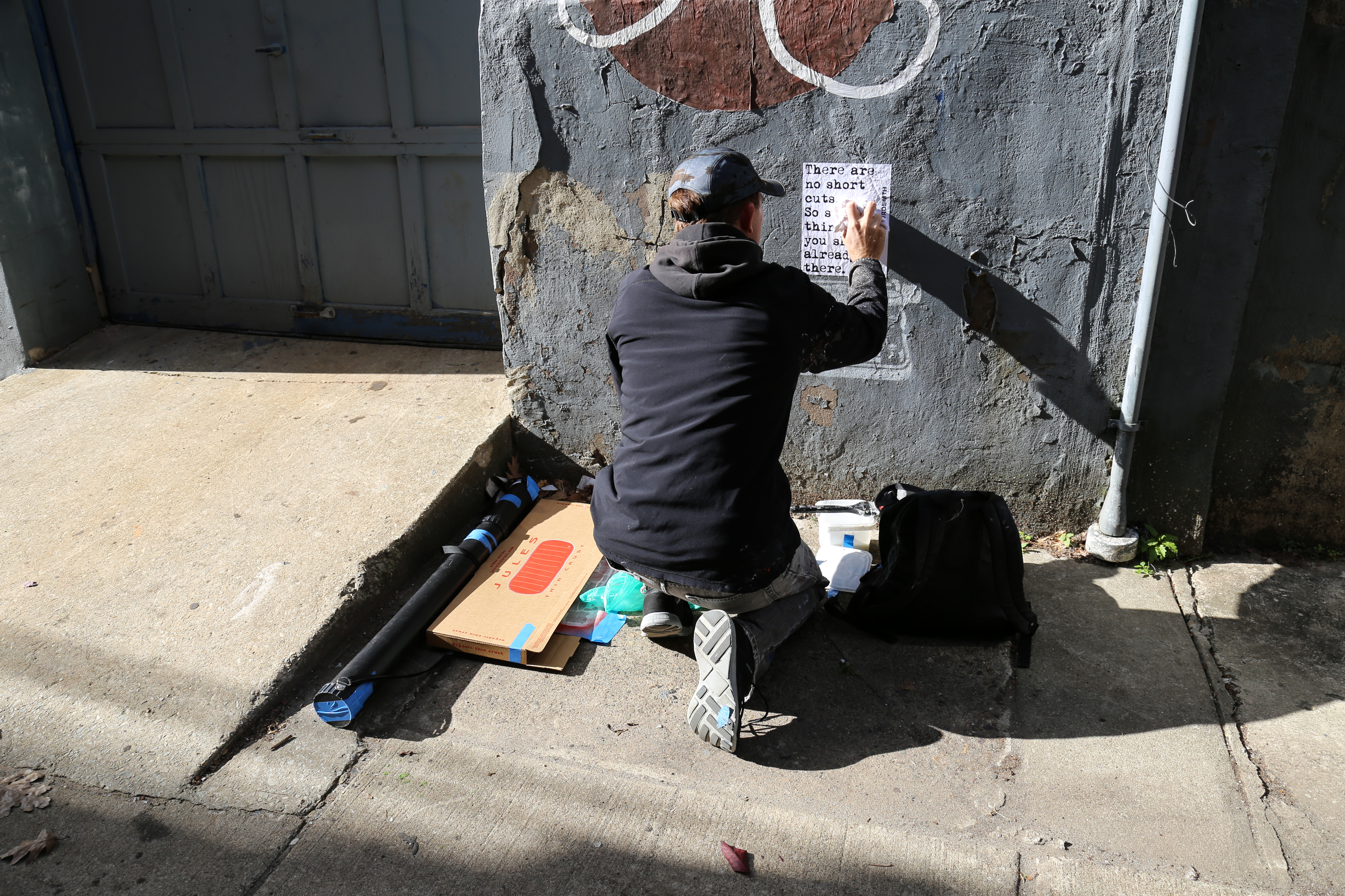 LA-based artist, WRDSMTH, was in town again today, installing more of his awesome/inspiring stencil/wheatpaste work in Fishtown and Kensington!