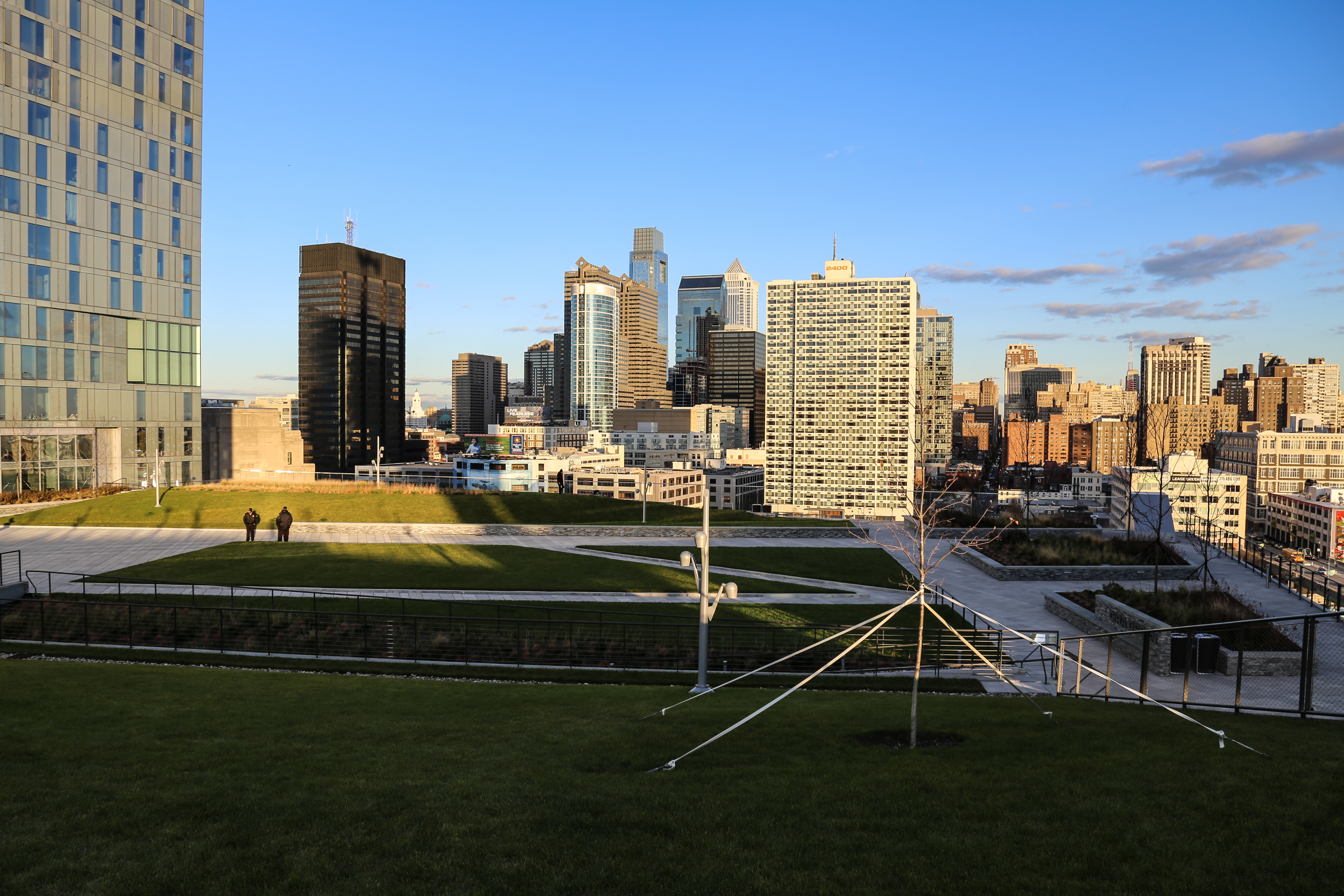 The brainchild of Developer Brandywine Realty Trust and Design Firms Erdy McHenry Architecture, Roofmeadow, and AKF Engineers, Cira Green is 1.25 acres of green-roof amazingness, offering quite possibly one of the BEST views of the Center City skyline. Perched 11-stories above the Schuylkill river in University City atop a parking garage, Cira Green is free and open to all from 7am-8pm now and through the winter, then 6am-10pm (possibly later, they’re playing it by ear) in the summer months.