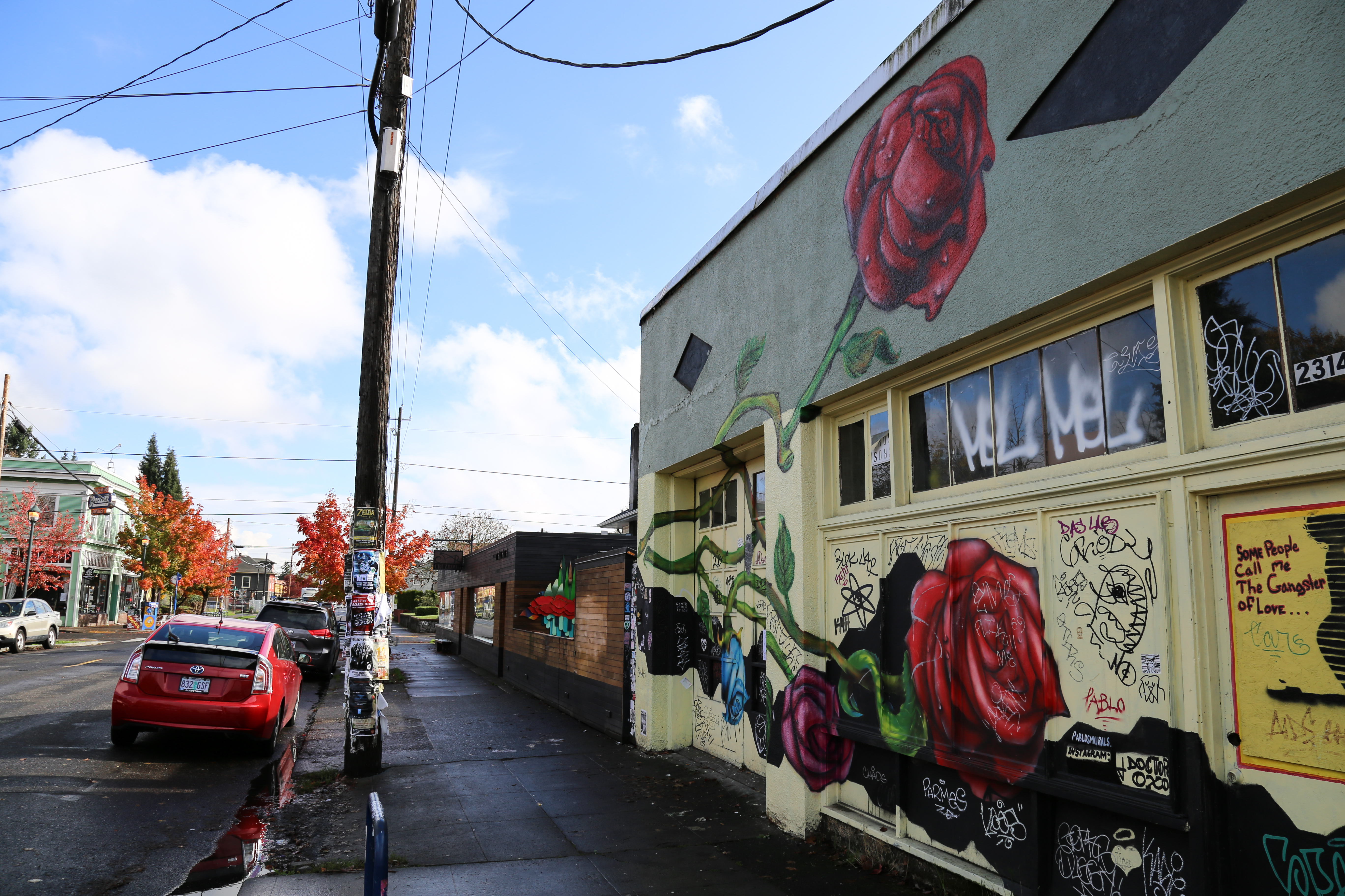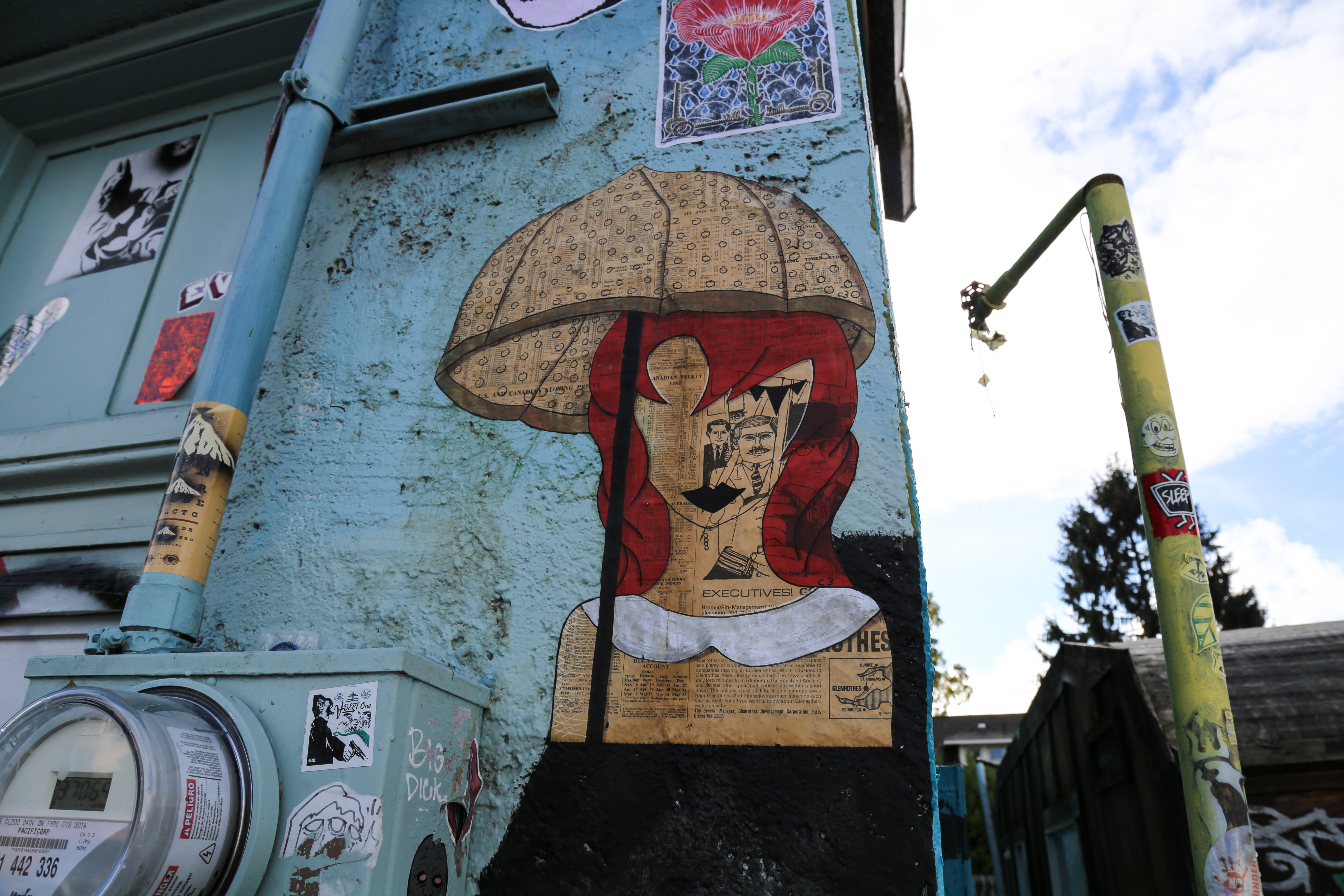 A street full of coffee shops, restaurants, food trucks, art galleries – and murals on nearly every available wall – I spent a few good hours walking up and down this stretch, rightfully called the Alberta Arts District. Side Note: While Portland, in general, doesn’t have nearly as much non-commissioned (aka illegal) street art/graffiti as many East Coast cities, including Philadelphia, this area is where I found the most stickers, wheatpastes, etc., most of which on one of the few remaining abandoned structures.