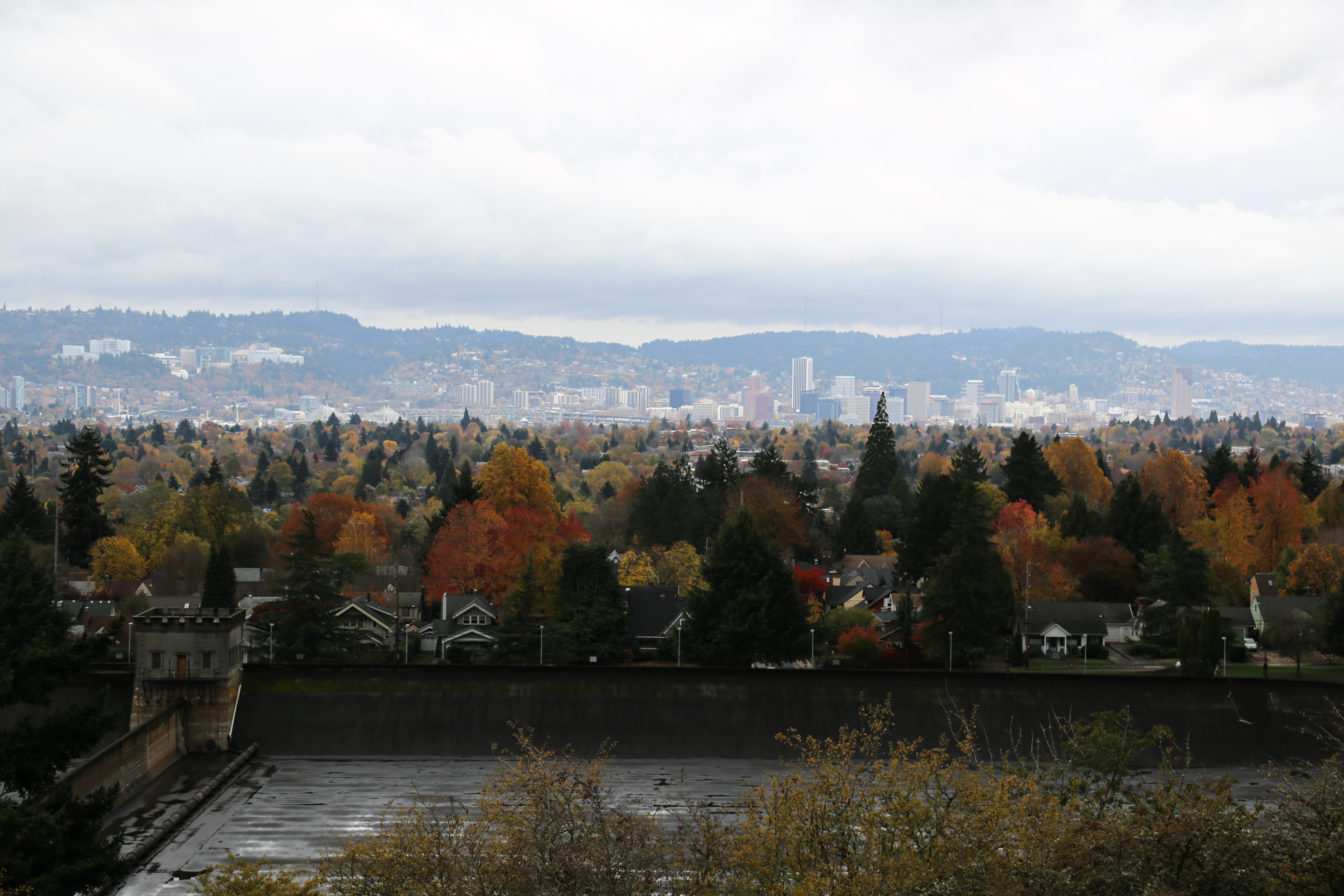 This may be one of my favorite views of the city, as the view from this particular road between the two reservoirs frames the city with all the lush greenery and trees I’ve always imaged when thinking of Portland.