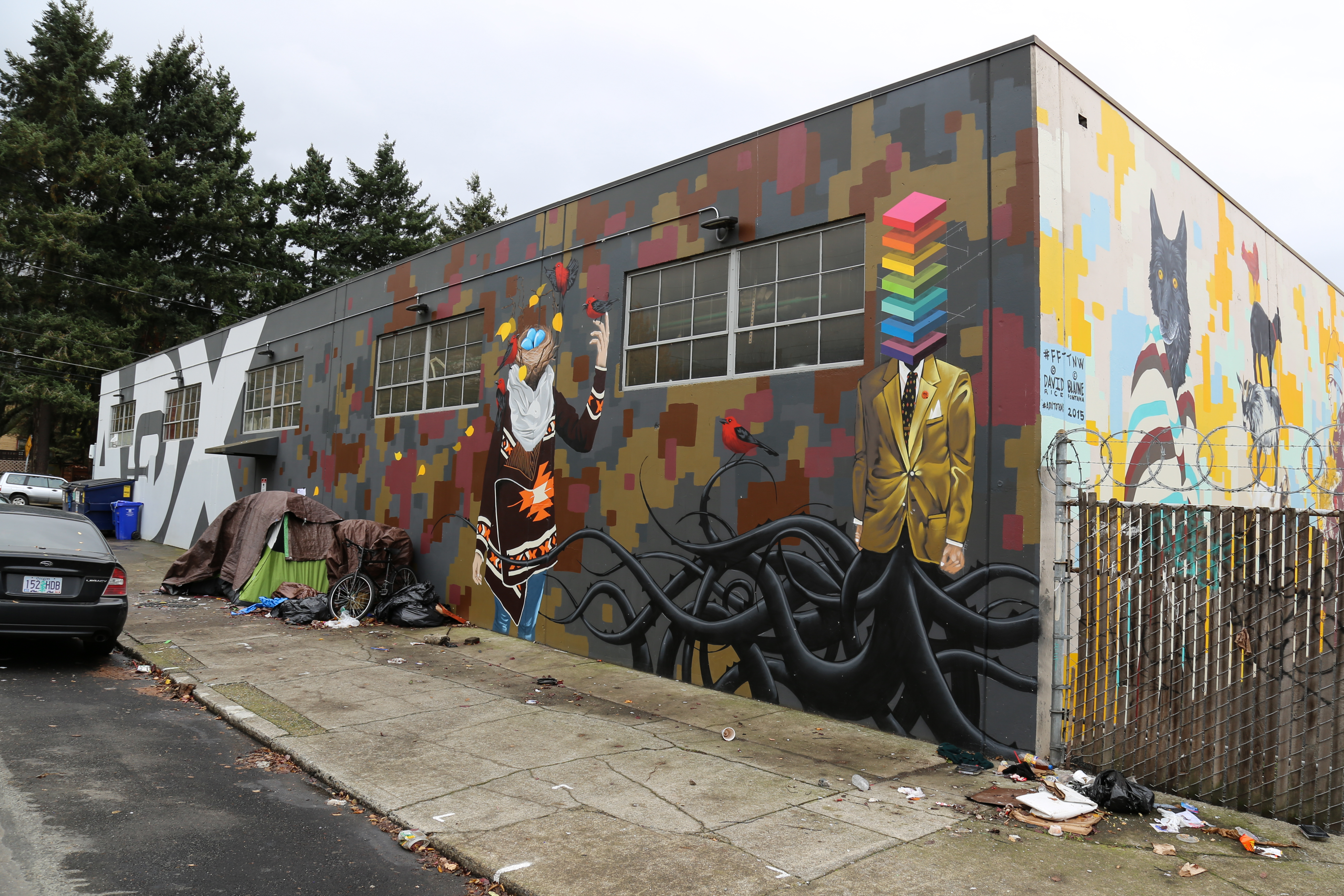 As I mentioned above, Portland’s must less of an illegal/non-commissioned “street art” town, than it is a commissioned/curated mural town. (Whereas Philly has a strong mix of both.) Nevertheless, the murals and commissioned work in Portland are, in my opinion, attracting a lot of good work from some very inspired artists! Most of that is due to the Forest For The Trees mural project established in 2013, which describes itself as “a non-profit project dedicated to the creation of contemporary public art in Portland.” And here are a few of my favorites…