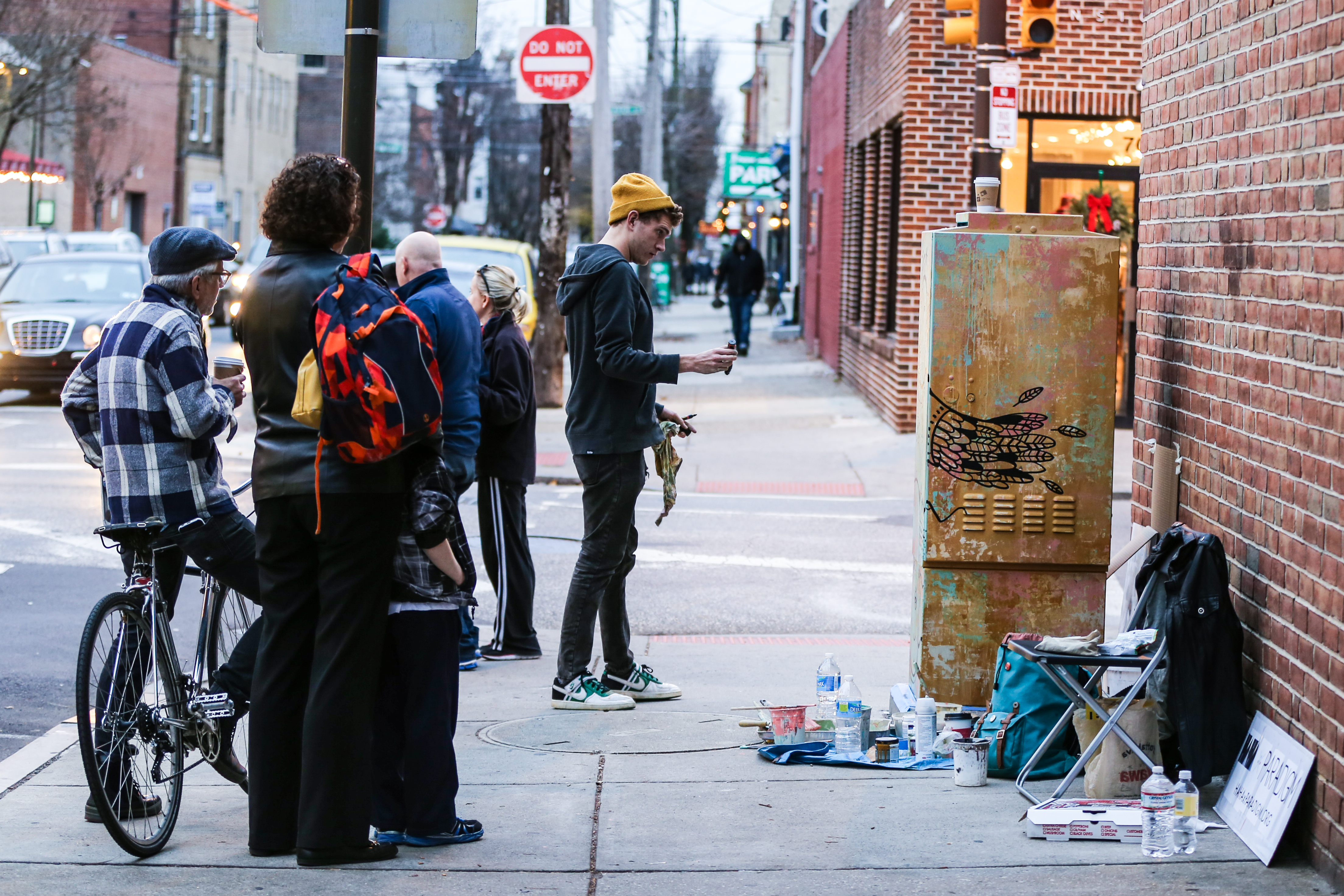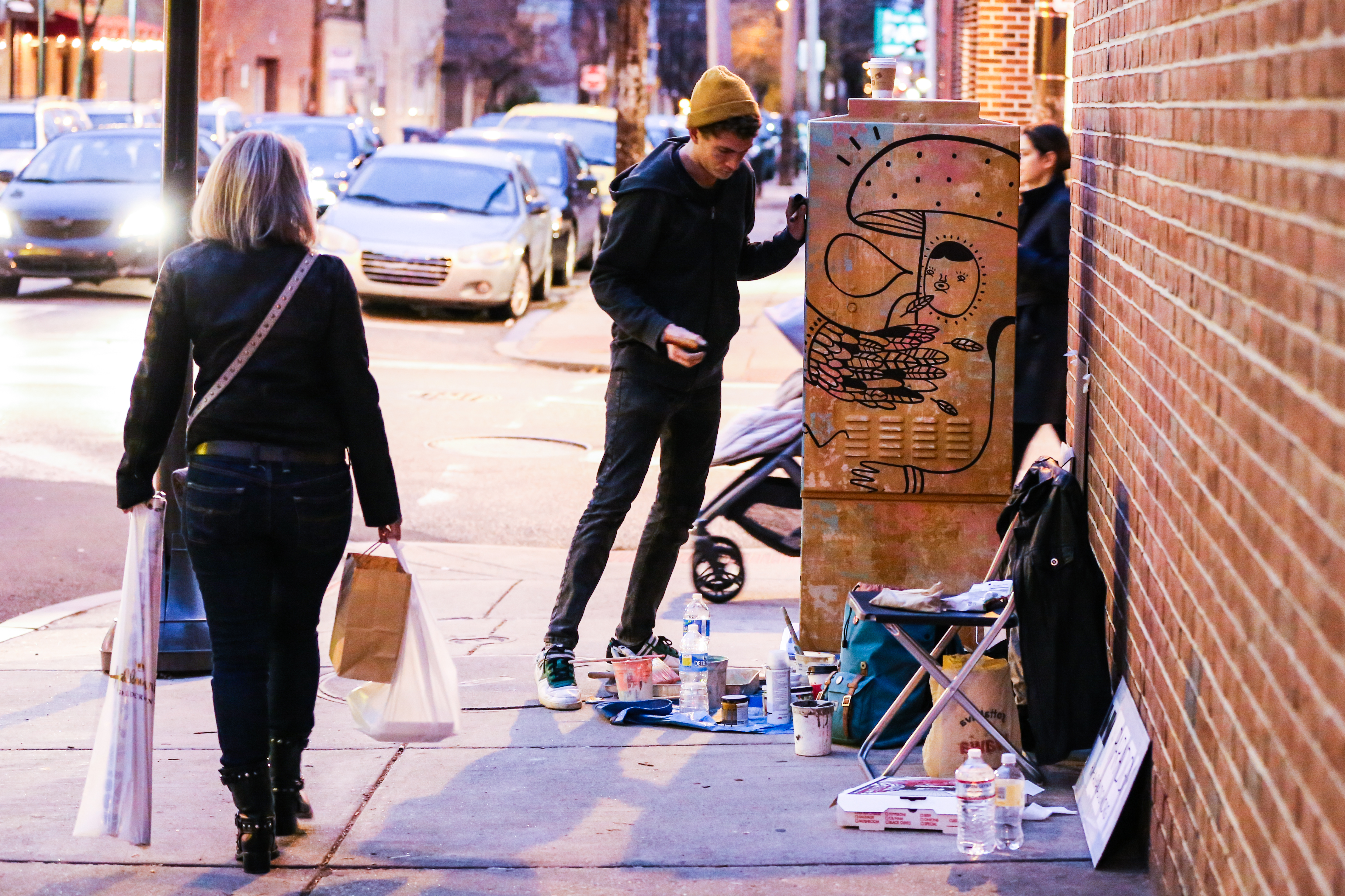In case you forgot: #HahaxPara is a home-grown, community arts program built by HAHA Magazine and Paradigm Gallery + Studio that hires the talents of artists from Philadelphia and around the world to create art for the public space right here in Philly! To-date, those artists include the likes of: Summayya Jillani, My Dog Sighs, Sophie Roach, Kelly Kozma, Calo Buscanigua, Paige Smith, and Kid Hazo, to name a few. And yesterday, Ryan Psota was added to this list!