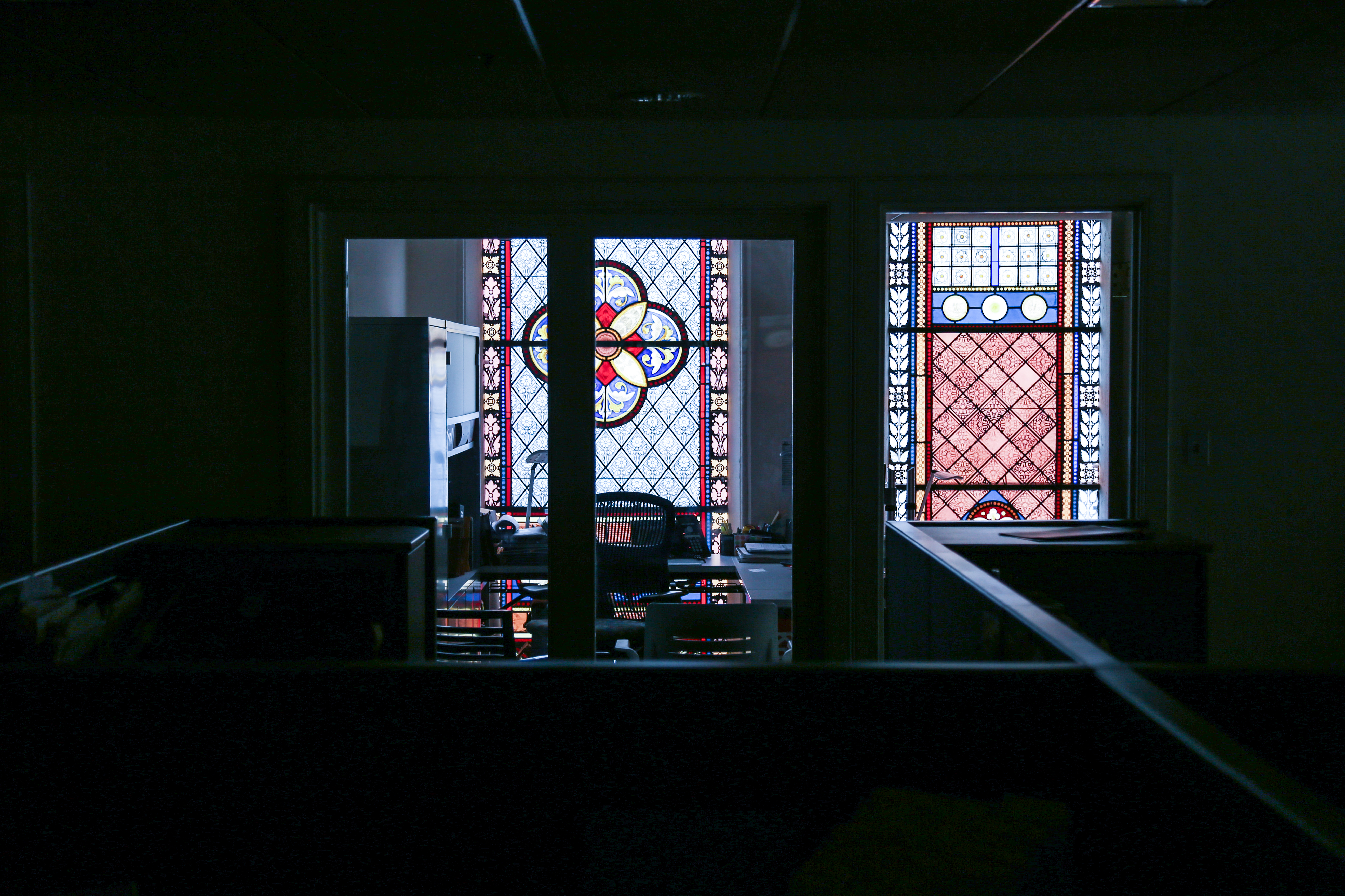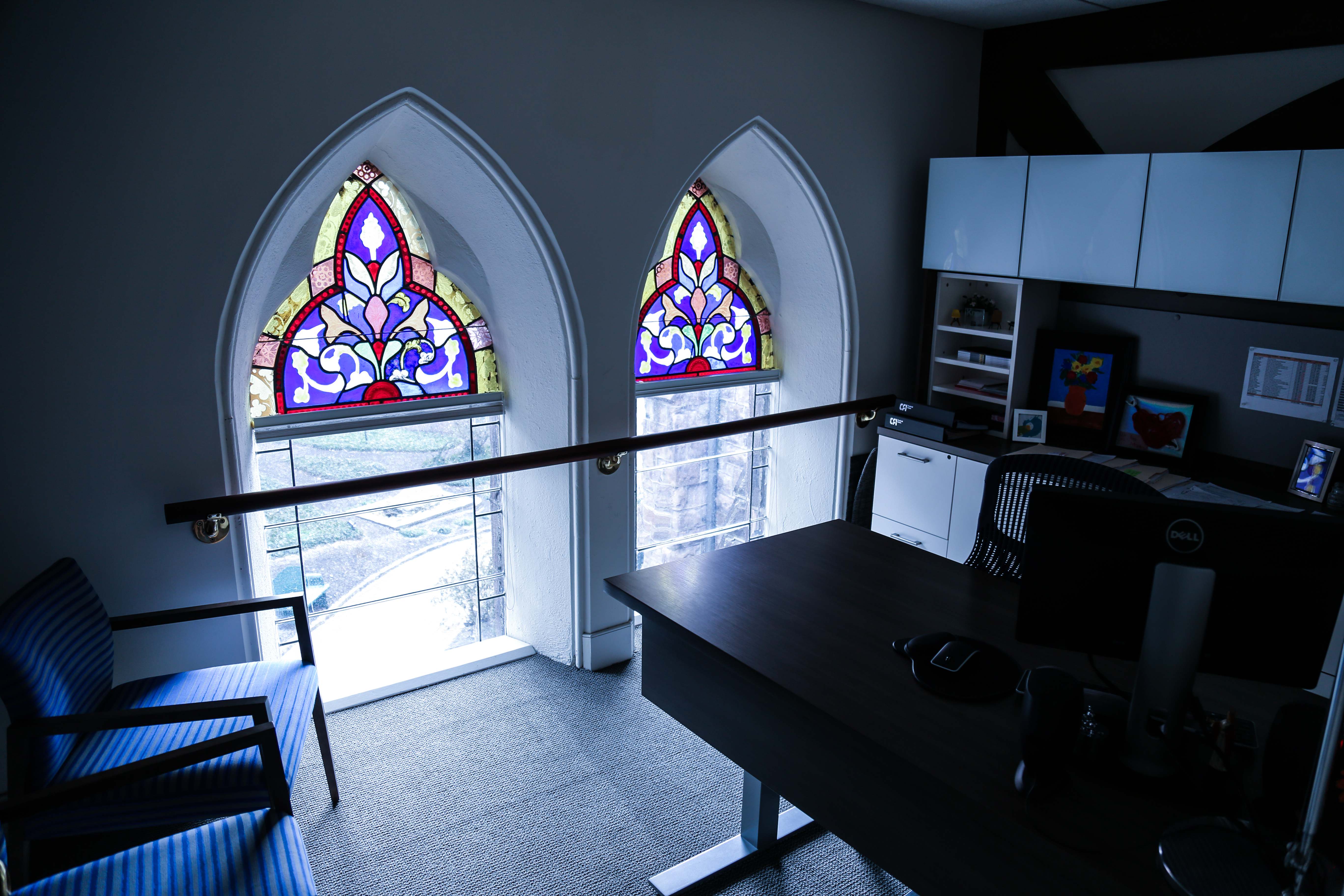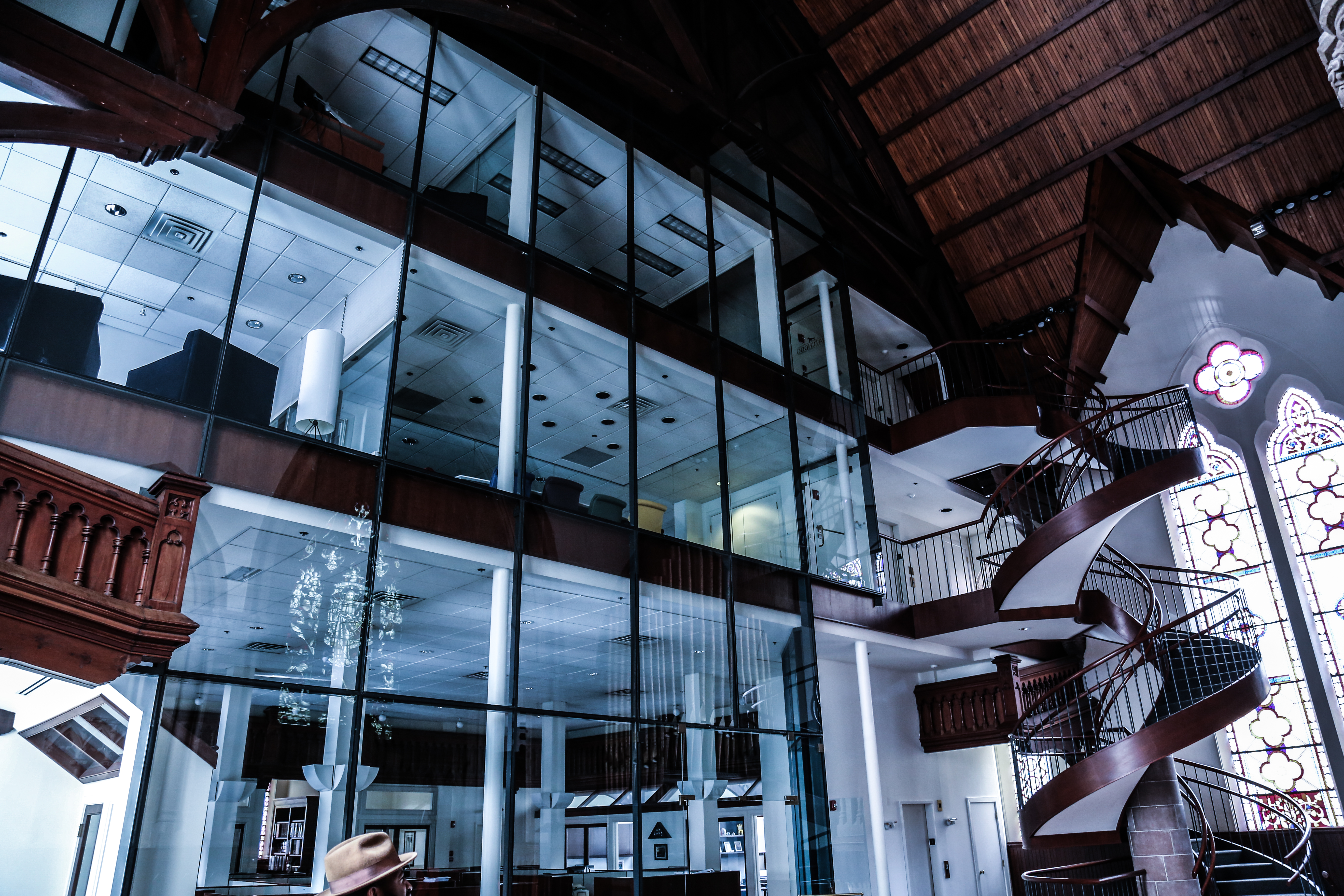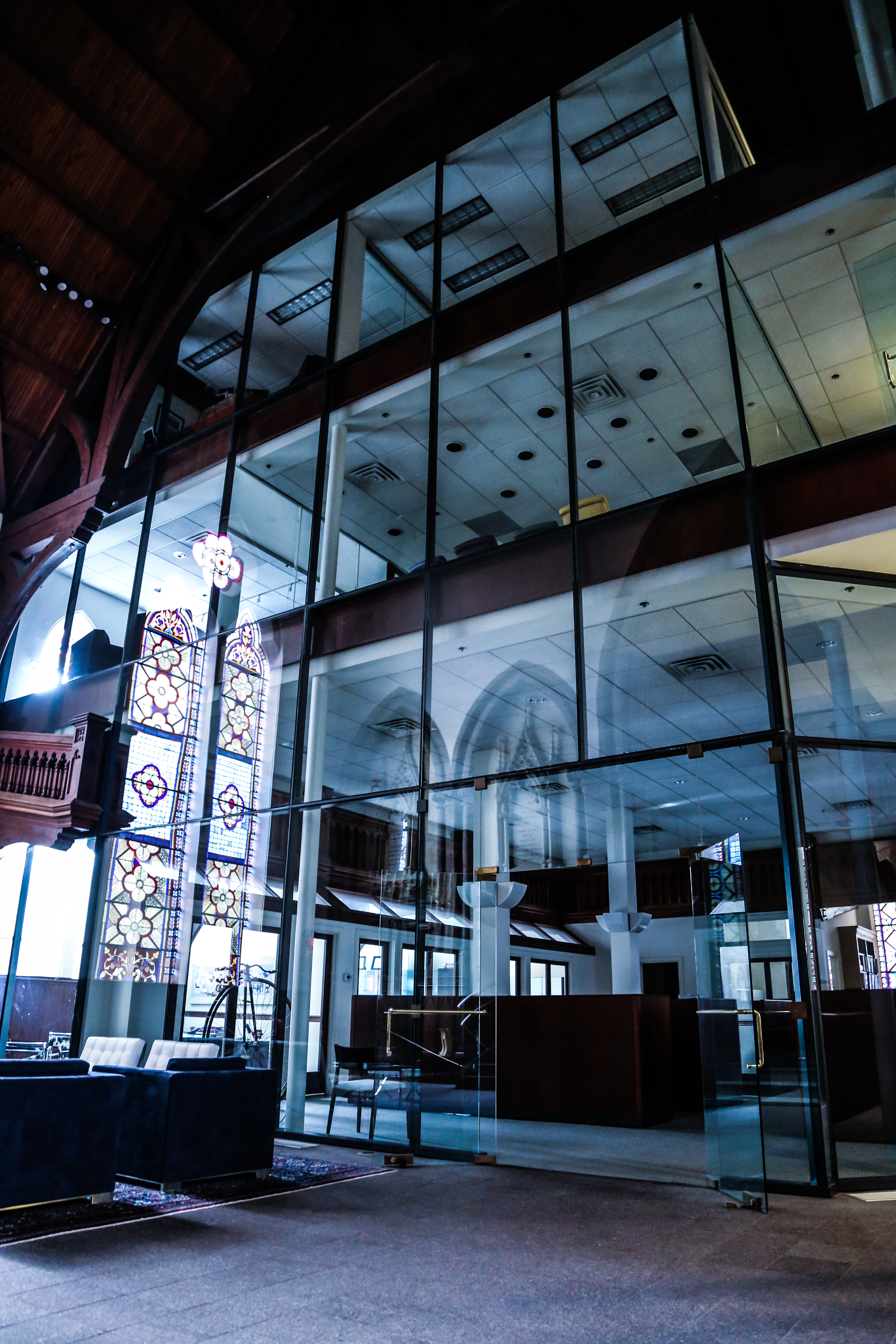However, after recording an interview with Na’eem Douglas for his new Brookladelphian podcast series (more on that when it’s out!) inside a very stylish store called Stars & Stripes, we were invited to explore the building and its adjacent structure – the church – which is now a beautiful little office building.
