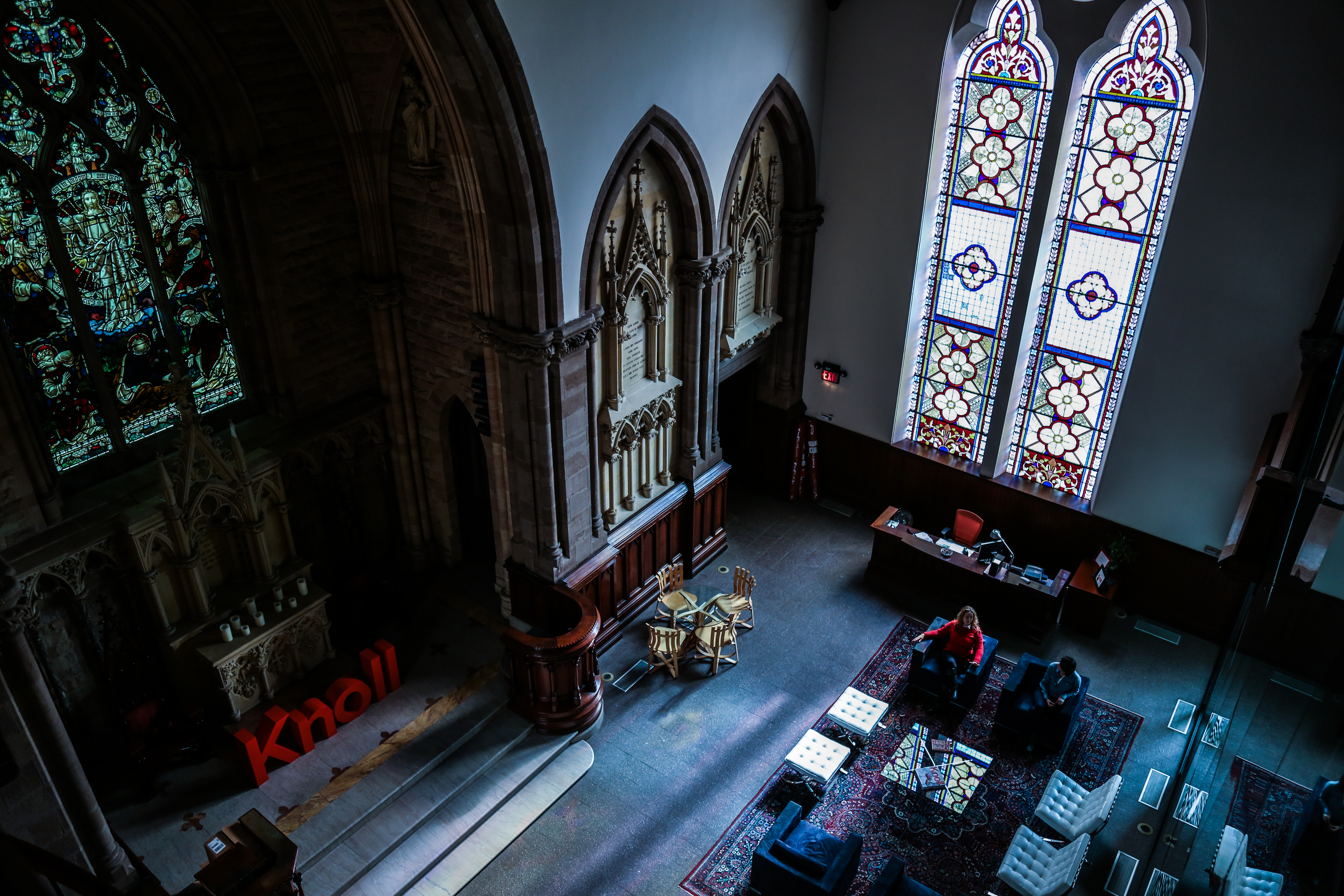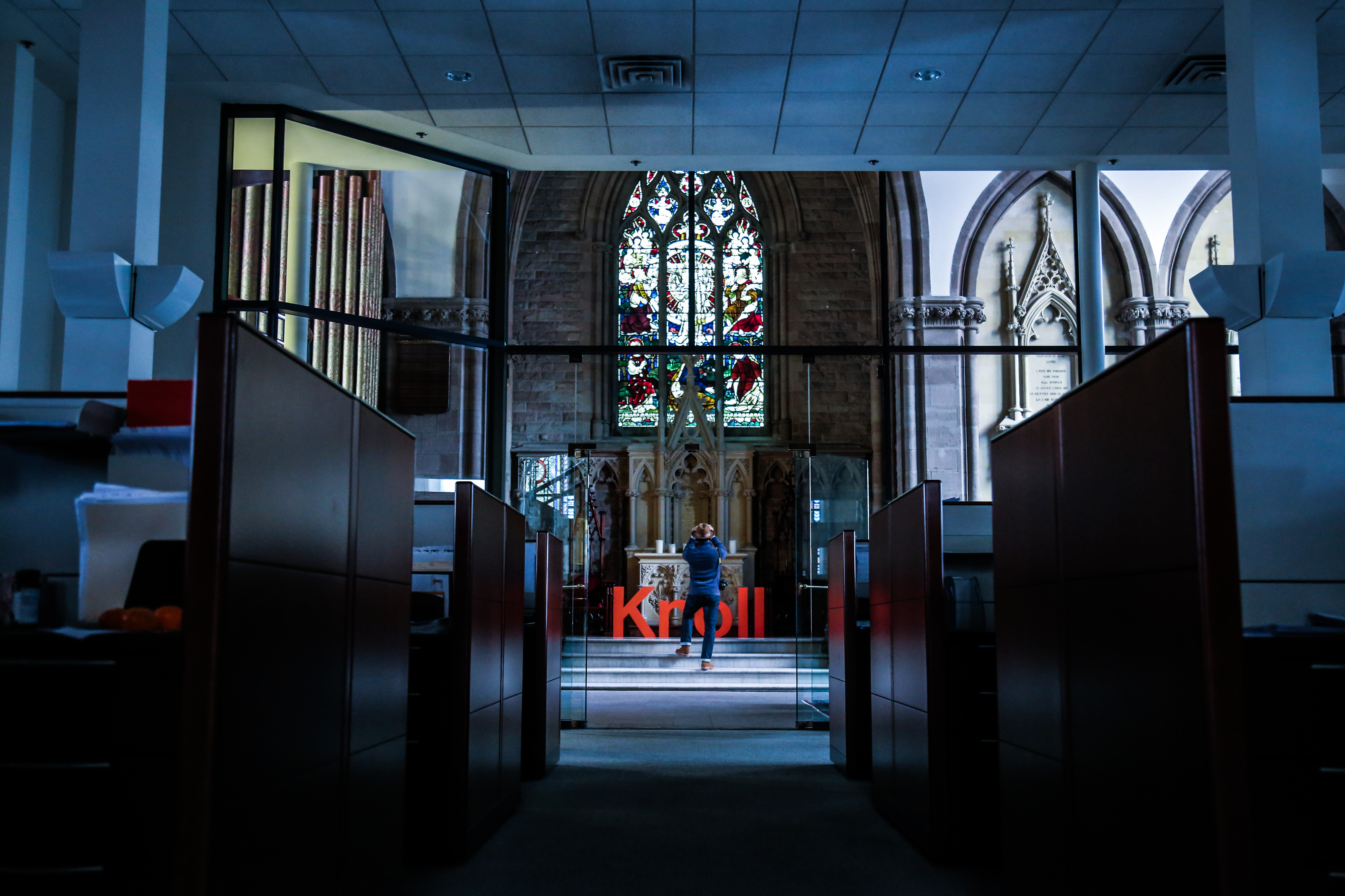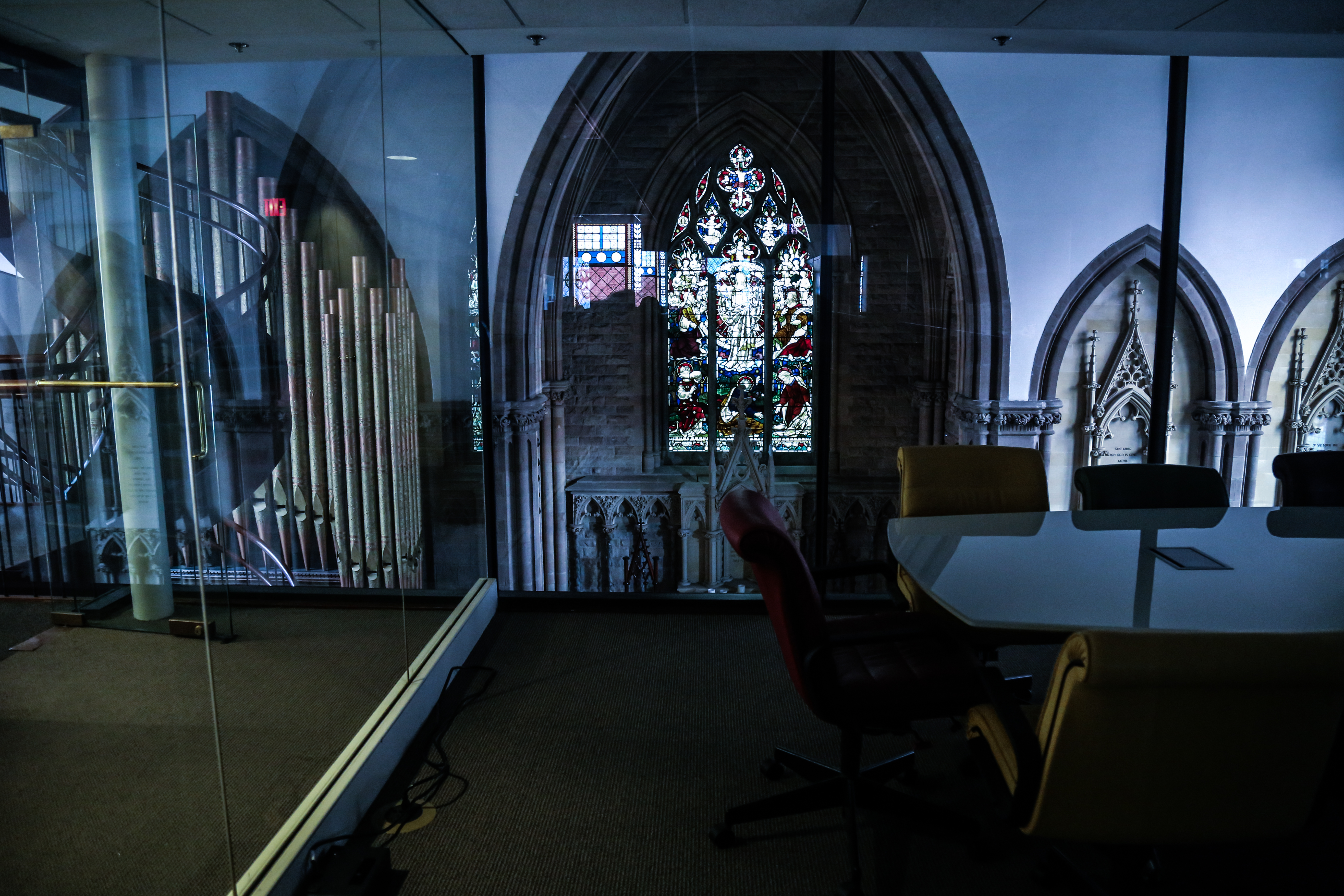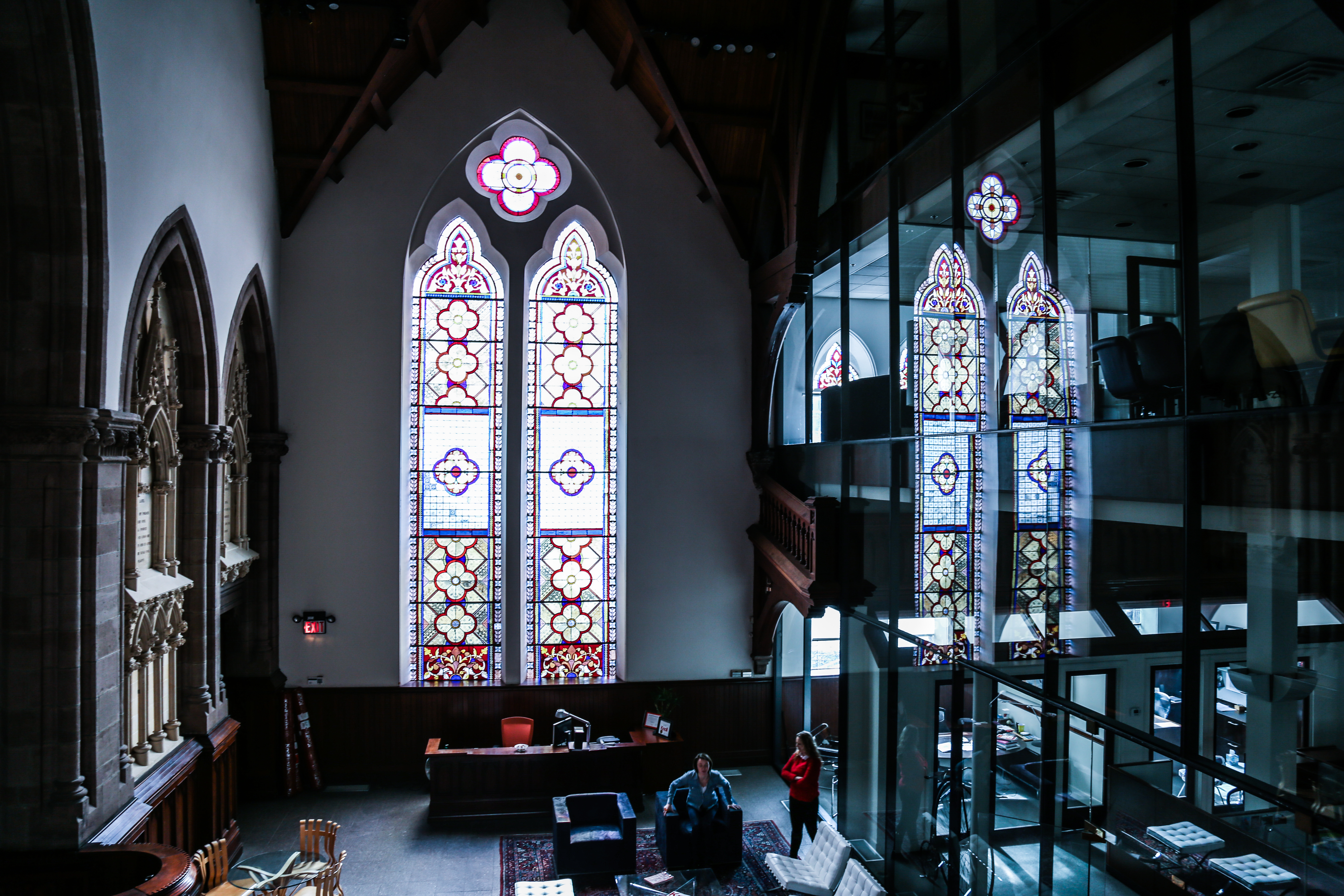 However, after recording an interview with Na’eem Douglas for his new Brookladelphian podcast series (more on that when it’s out!) inside a very stylish store called Stars & Stripes, we were invited to explore the building and its adjacent structure – the church – which is now a beautiful little office building.
