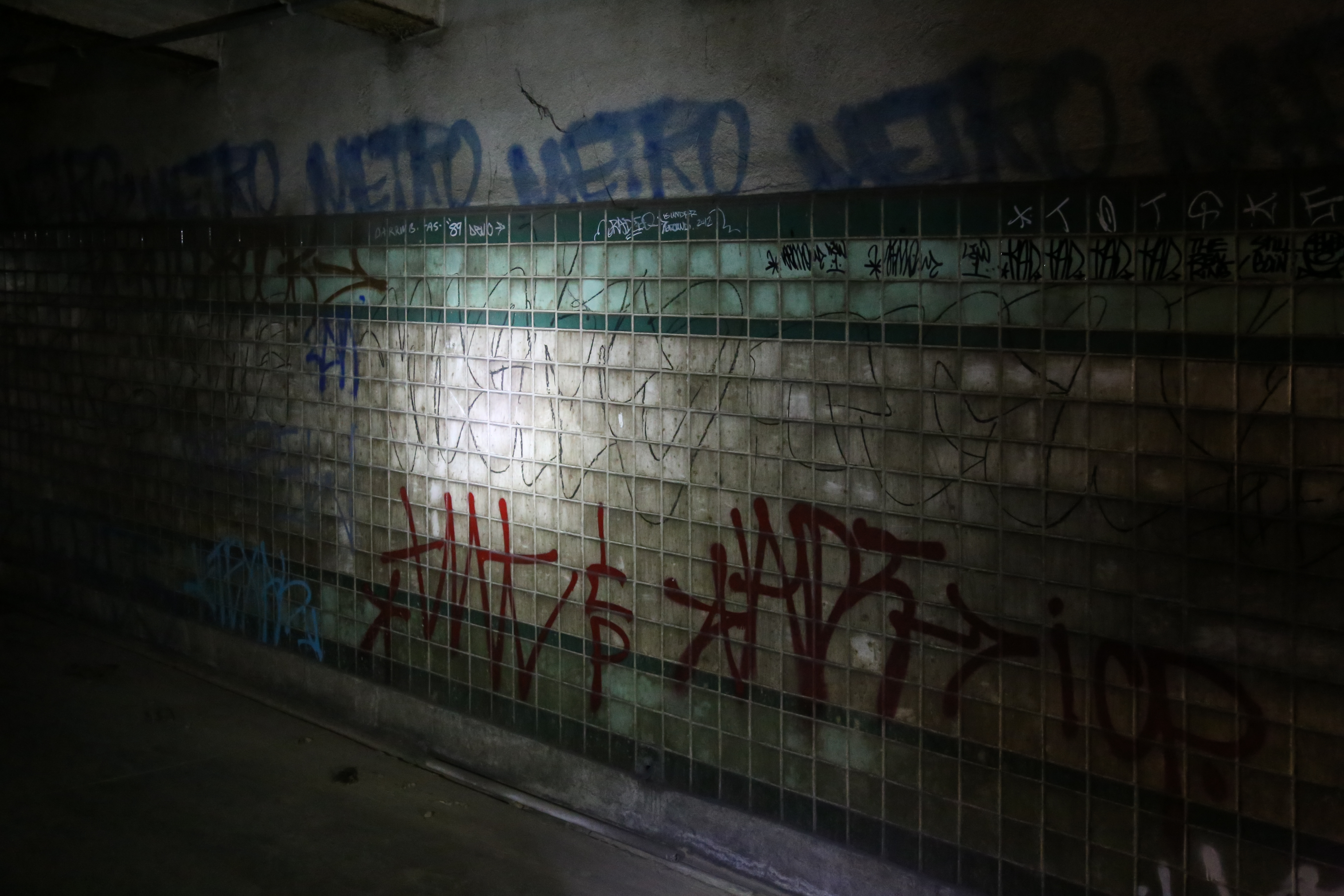 Reminds me of the closed off parts of the City Hall PATCO stop, though this place has way more graffiti. https://southjerseyist.wordpress.com/2016/01/12/ghosts-of-city-hall-the-patco-station-youve-never-seen/