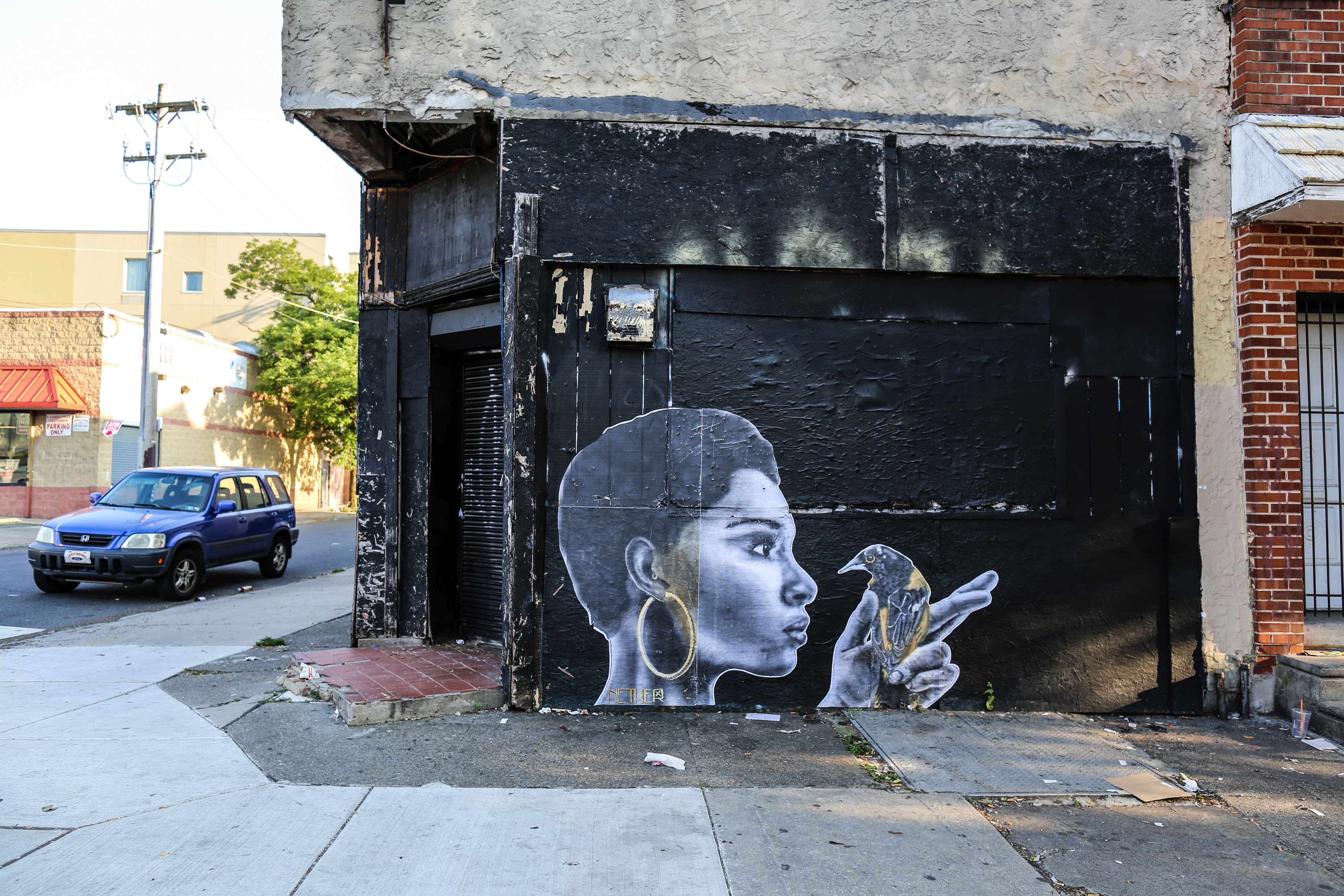 “Nether is a Baltimore born/based street artist driven by vacant beautification, civil disobedience & tactical activism aimed at sparking dialogue on disdained urban issues. In a broken city radical actions are needed to bring attention to ignored issues and tell forgotten histories. The pieces that you find around the city dignify and bring attention to ignored citizens and the forces that have brought the city to its shameful state. Nether sees his work as a force that solidifies people’s connections to locations in the city that define Baltimore. The quest is merely an attempt to reclaim and recycle the tragic landscape, bring out our city’s pride, and capture the beautiful chaos that is Baltimore.”