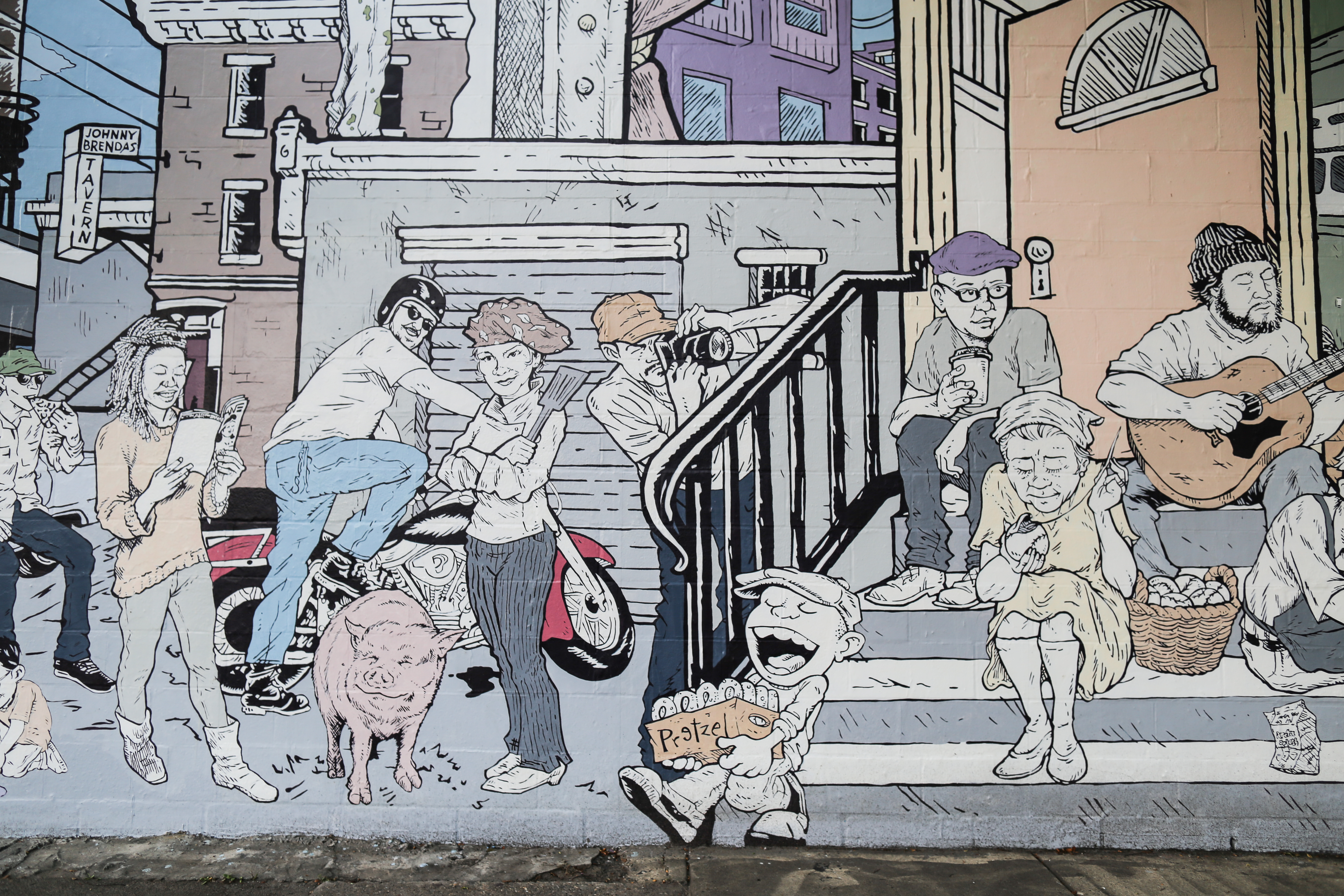 The mural, titled “Welcome to the Neighborhood,” can be found on Dauphin street at Frankford avenue, right across the street from Pizza Brain.