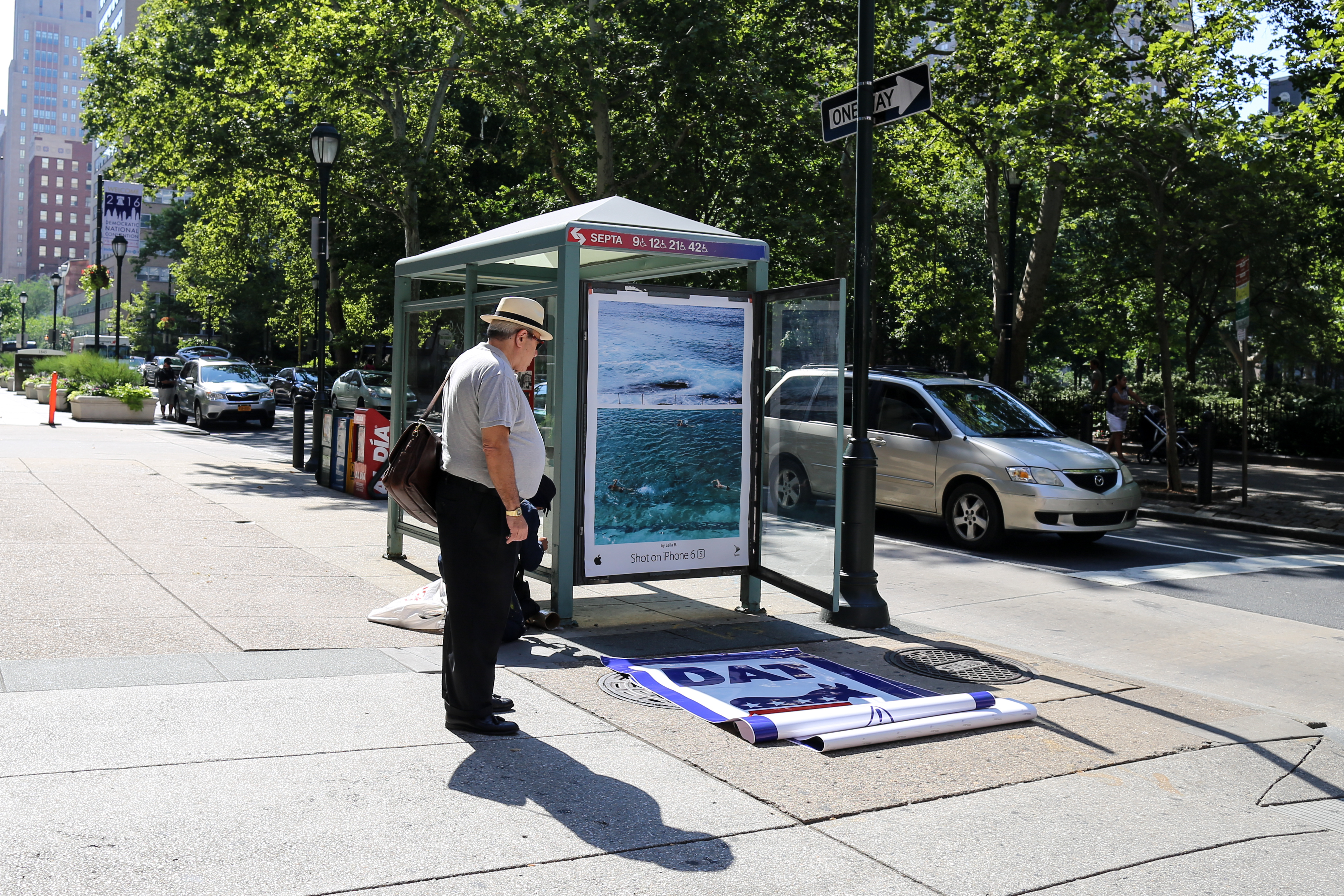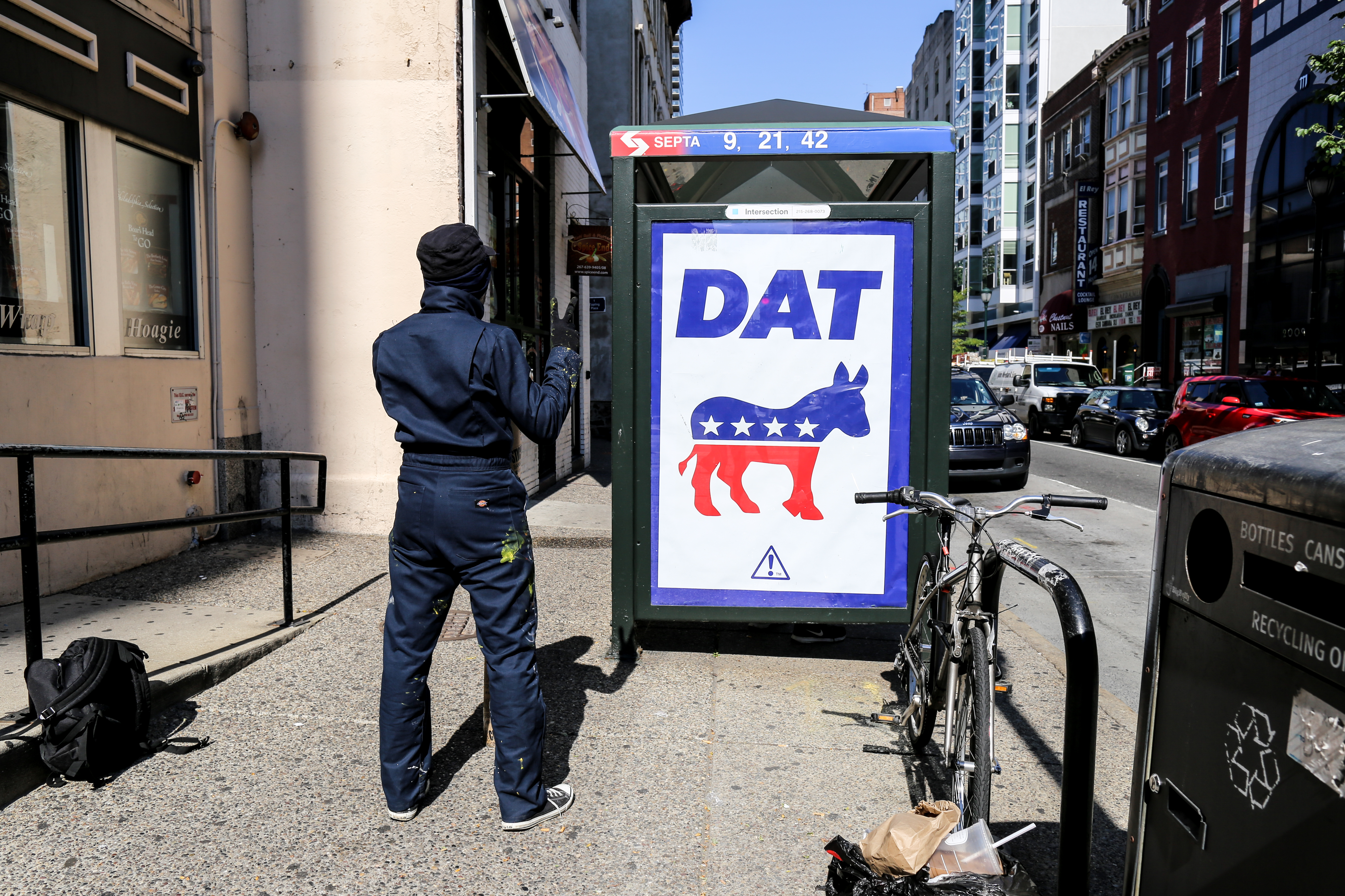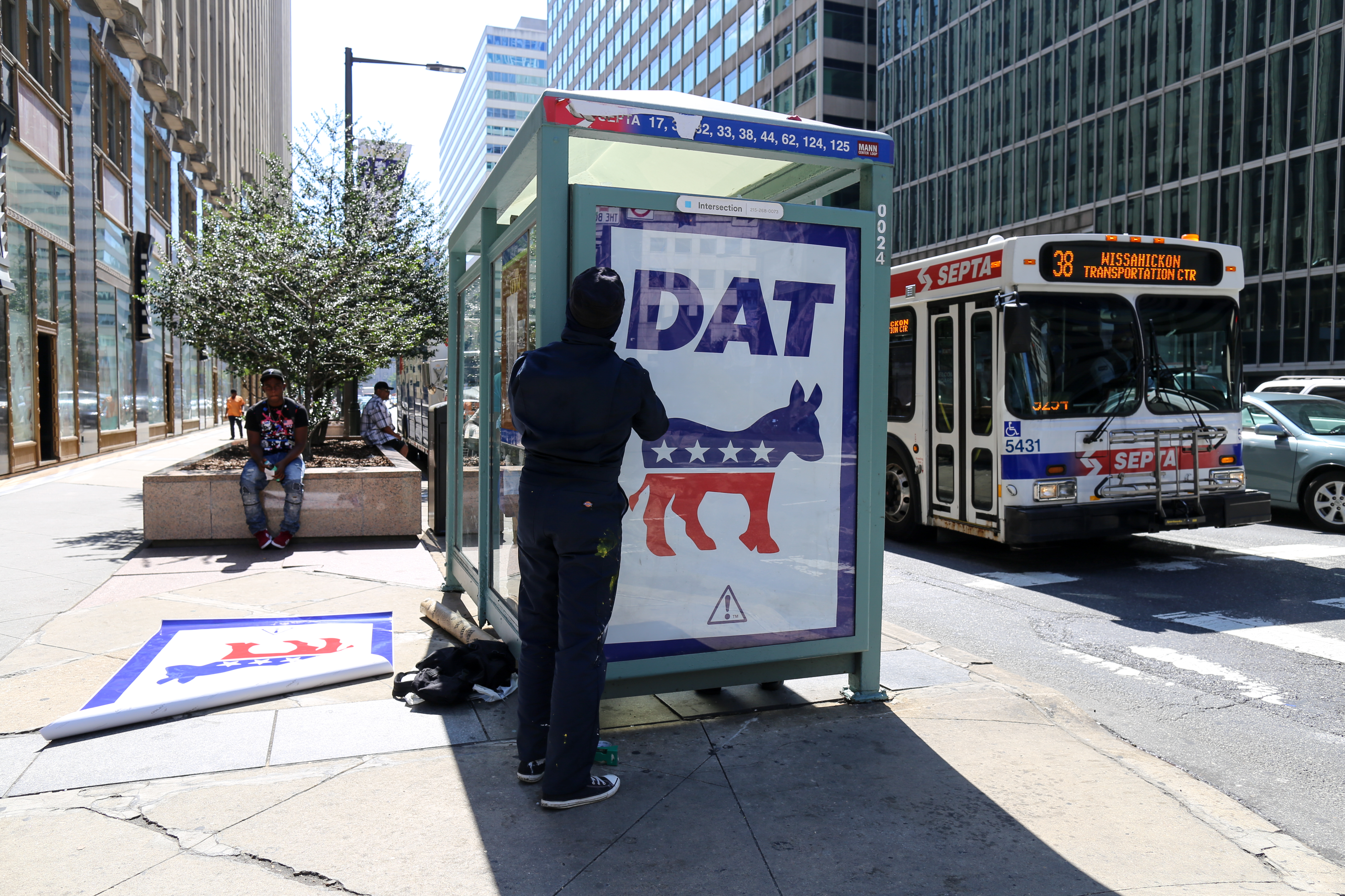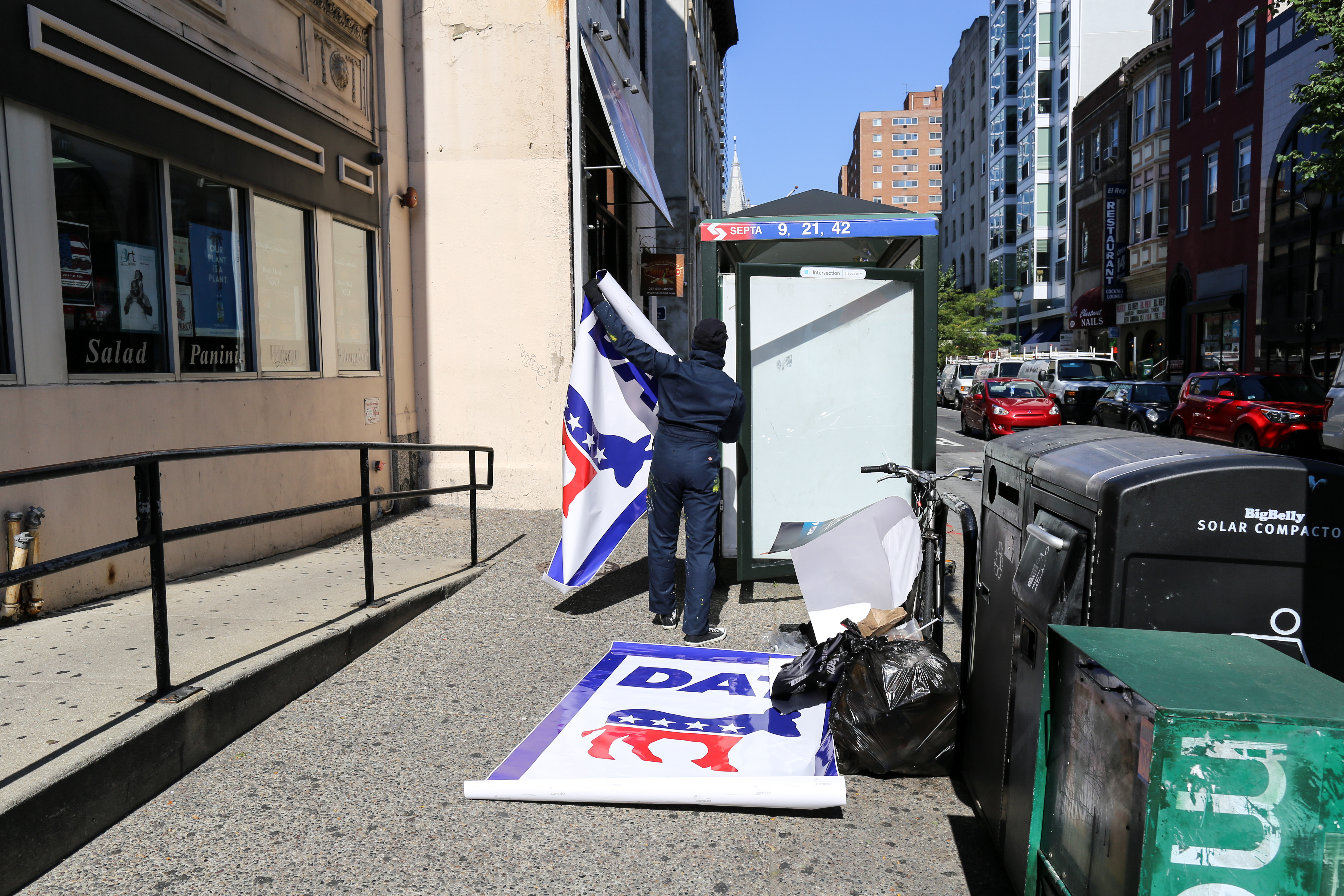 In a (likely impossible) effort to keep these bus shelter Ad Takeovers up through the DNC next week, I will not say where these installations took place, and if you know please feel free not to comment or put it on blast.