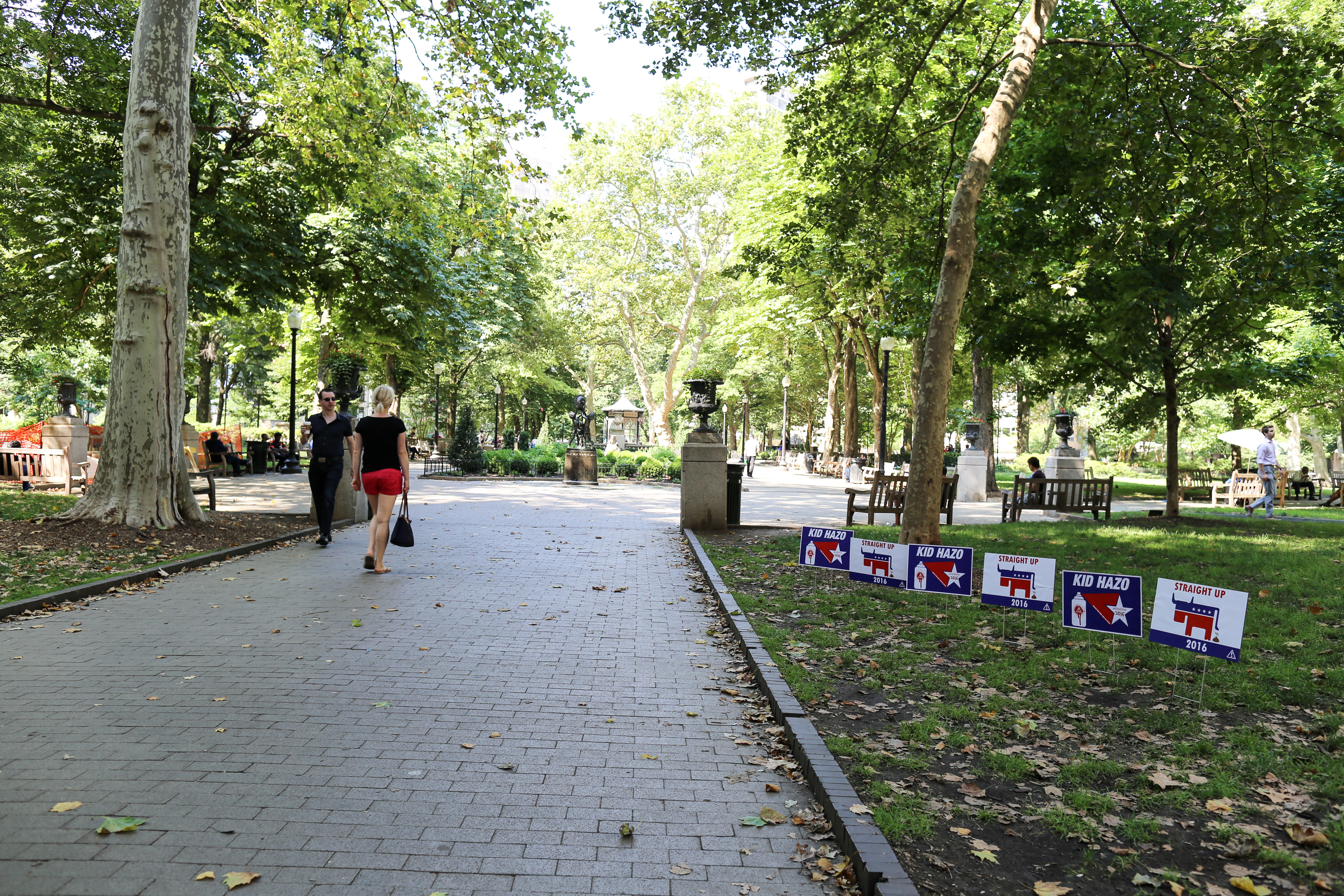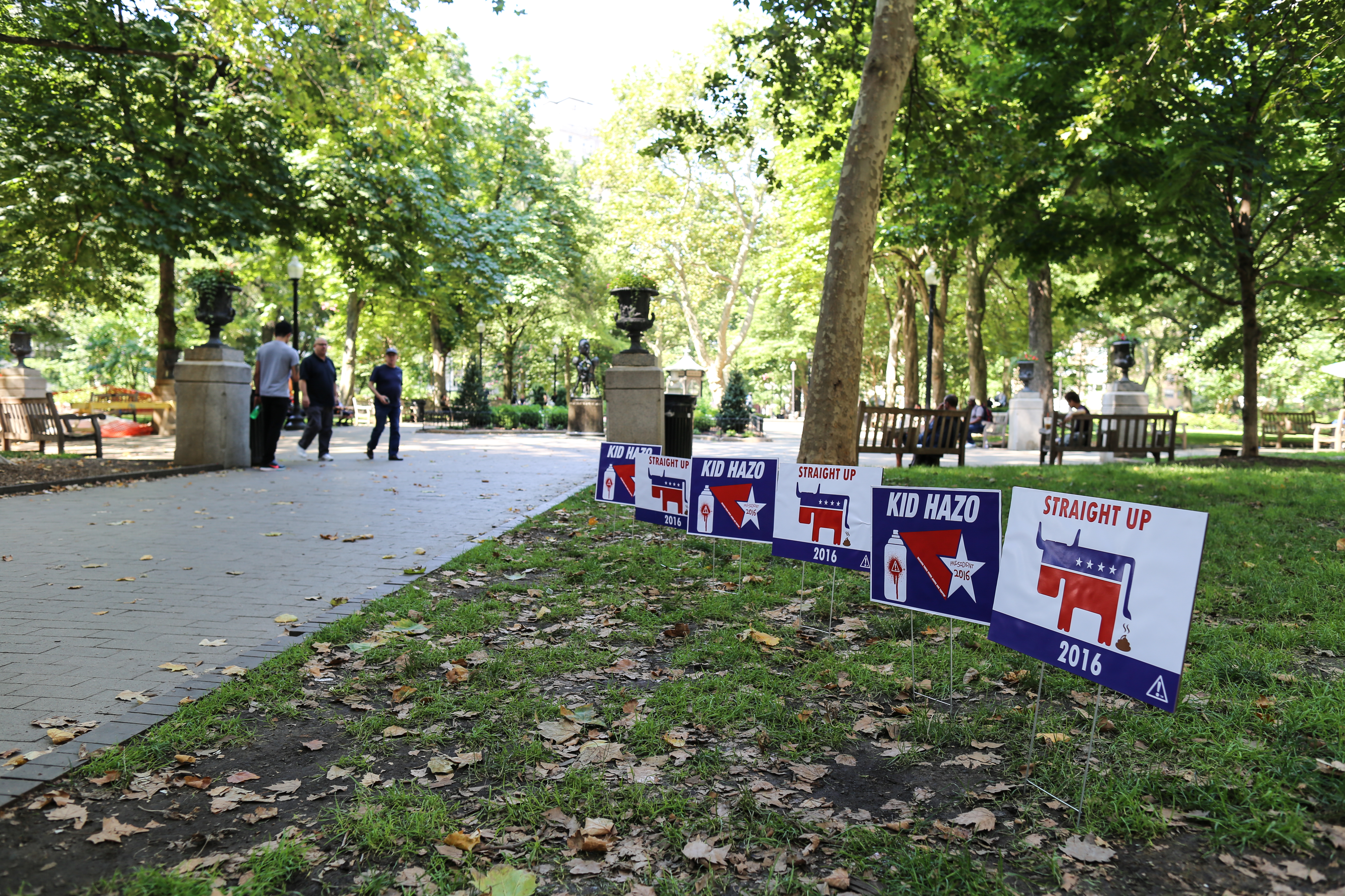 So yes, not only is local street art king Kid Hazo running for President, but he’s having a little fun with the Democratic Delegates who should be streaming into town any day now for the Democratic National Convention, which kicks off Monday.