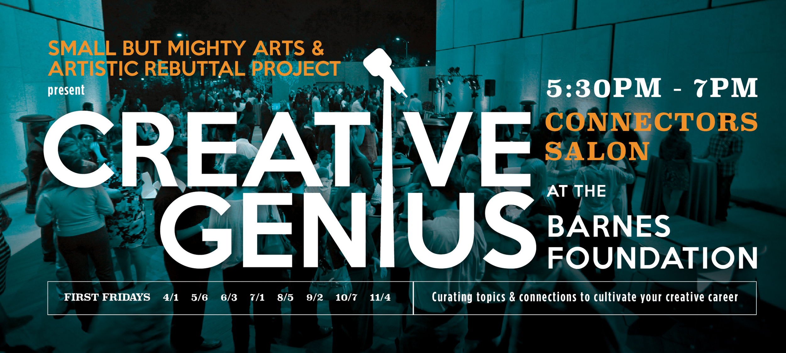So excited to announce that I’ll be a featured speaker at the Creative Genius Connectors Salon at The Barnes Foundation this coming First Friday, hosted by Small But Mighty Arts and Artistic Rebuttal Book Project…