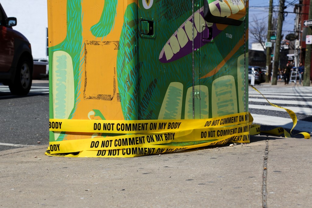 Starting this past Sunday evening (April 2), Pussy Division began putting up their anti-street harassment caution tape at various locations around South Philly, Fishtown, Northern Liberties, and West Philly. And they’ve told me they plan to continue to put the tape up around Center City, Old City, and other high-traffic areas across Philly throughout this week!