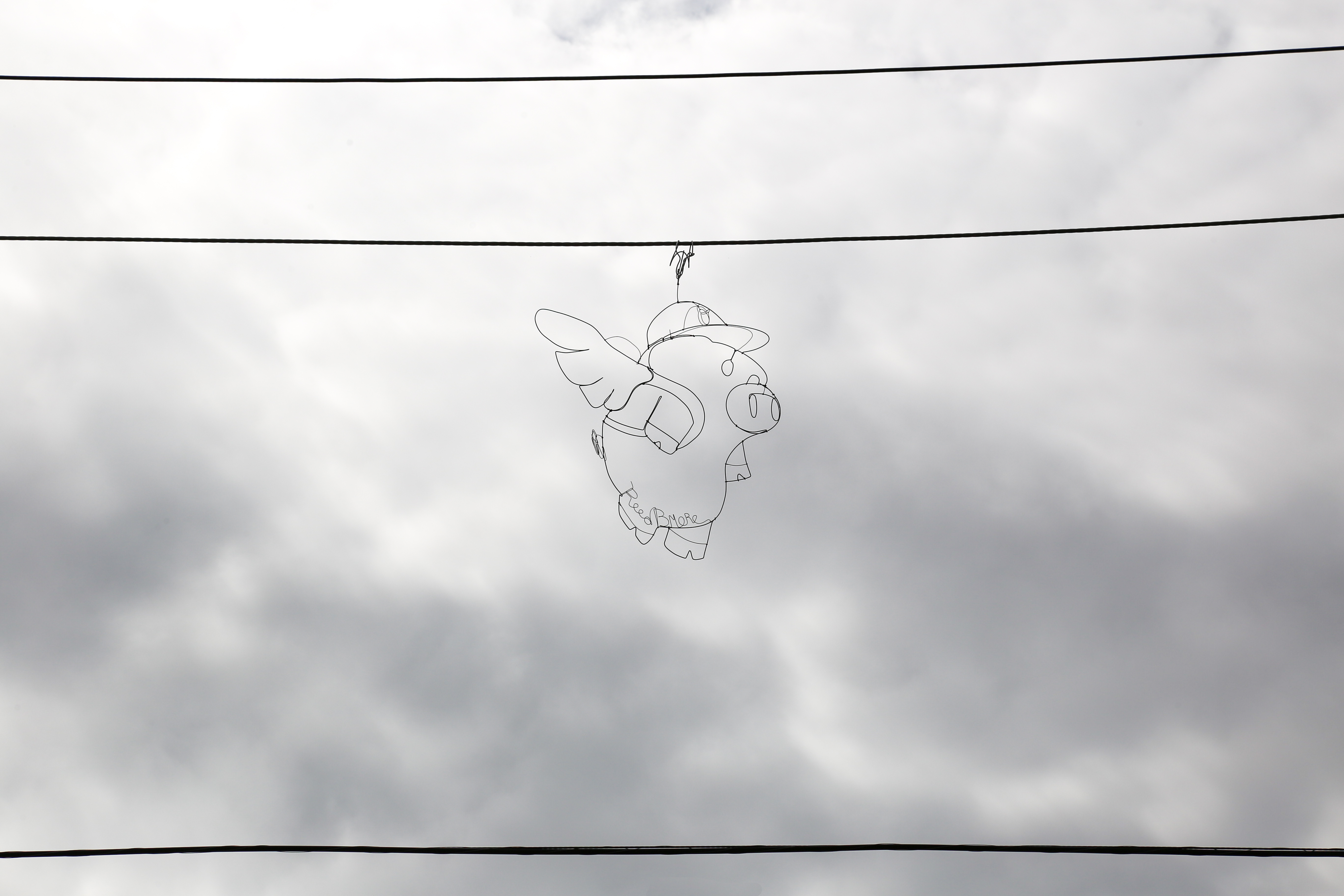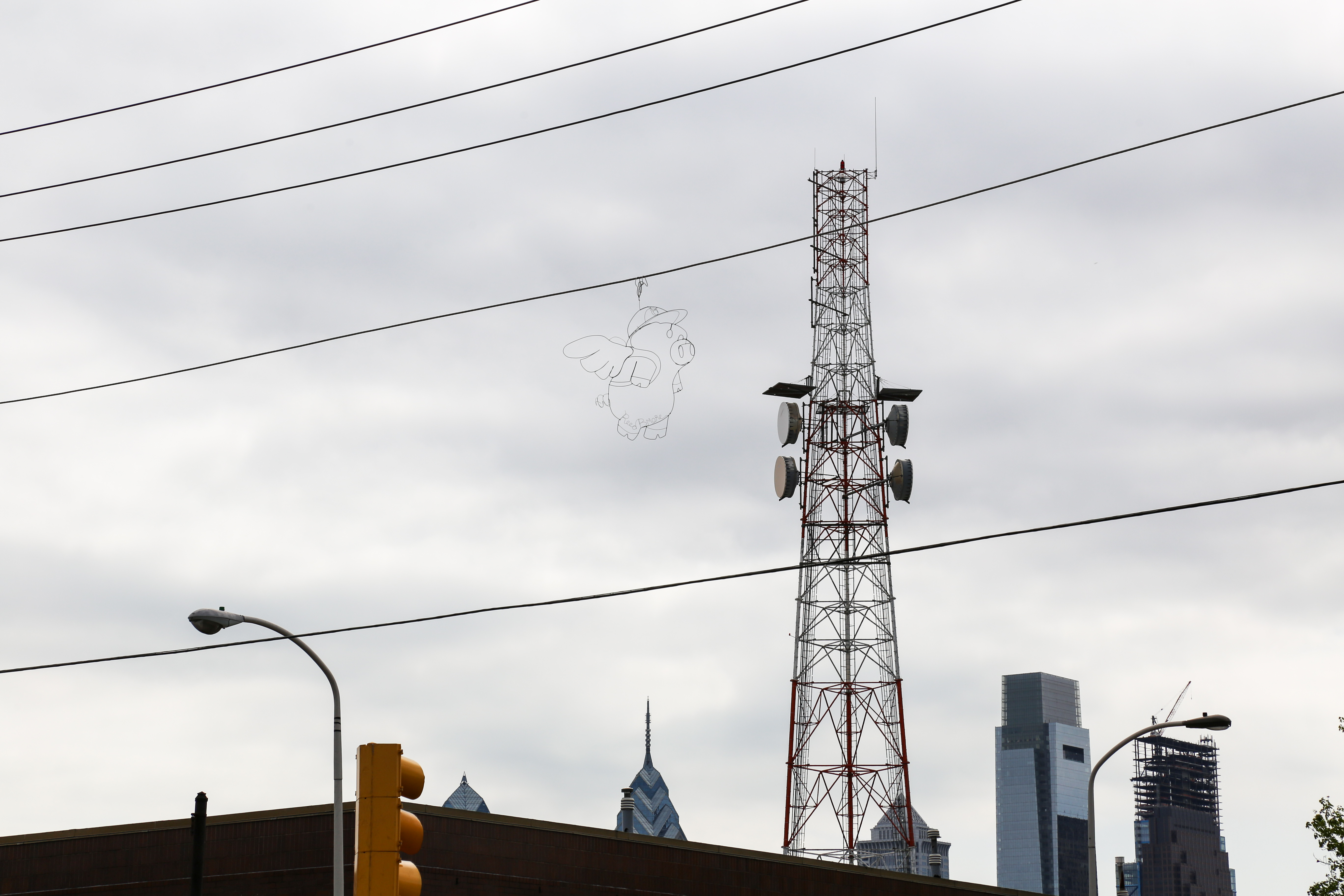 Baltimore-based street artist Reed, who creates beautiful wire art, just came through Philly to install three new pieces. The flying pig in the photographs of this post can be found at 5th and Spring Garden streets in Northern Liberties, and the two other installations can be found at 2nd and Market streets in Old City, and Oxford and Broad streets in North Philly.