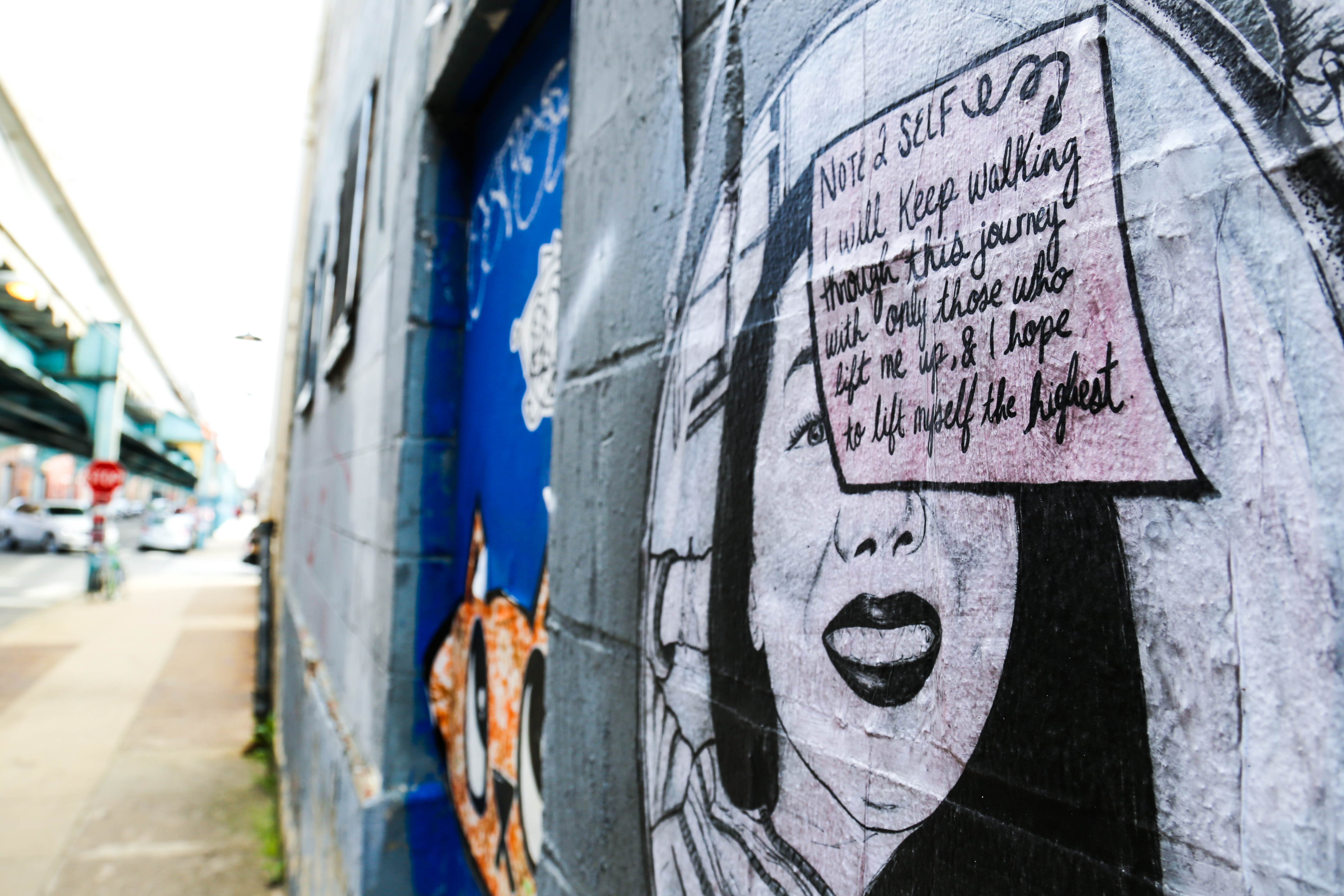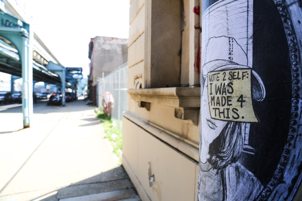 Of the five Note To Self wheatpastes that are currently installed around Philly (including the three in this post), all are women. To-date, there have been 41 submissions total for the project – all women. Nevertheless, Blur is interested in having men participate: “It’s all women right now, but I would like men to submit to it too. I didn’t start this project thinking about gender. But I know I connect mostly with women, so as of right now only women have submitted.”