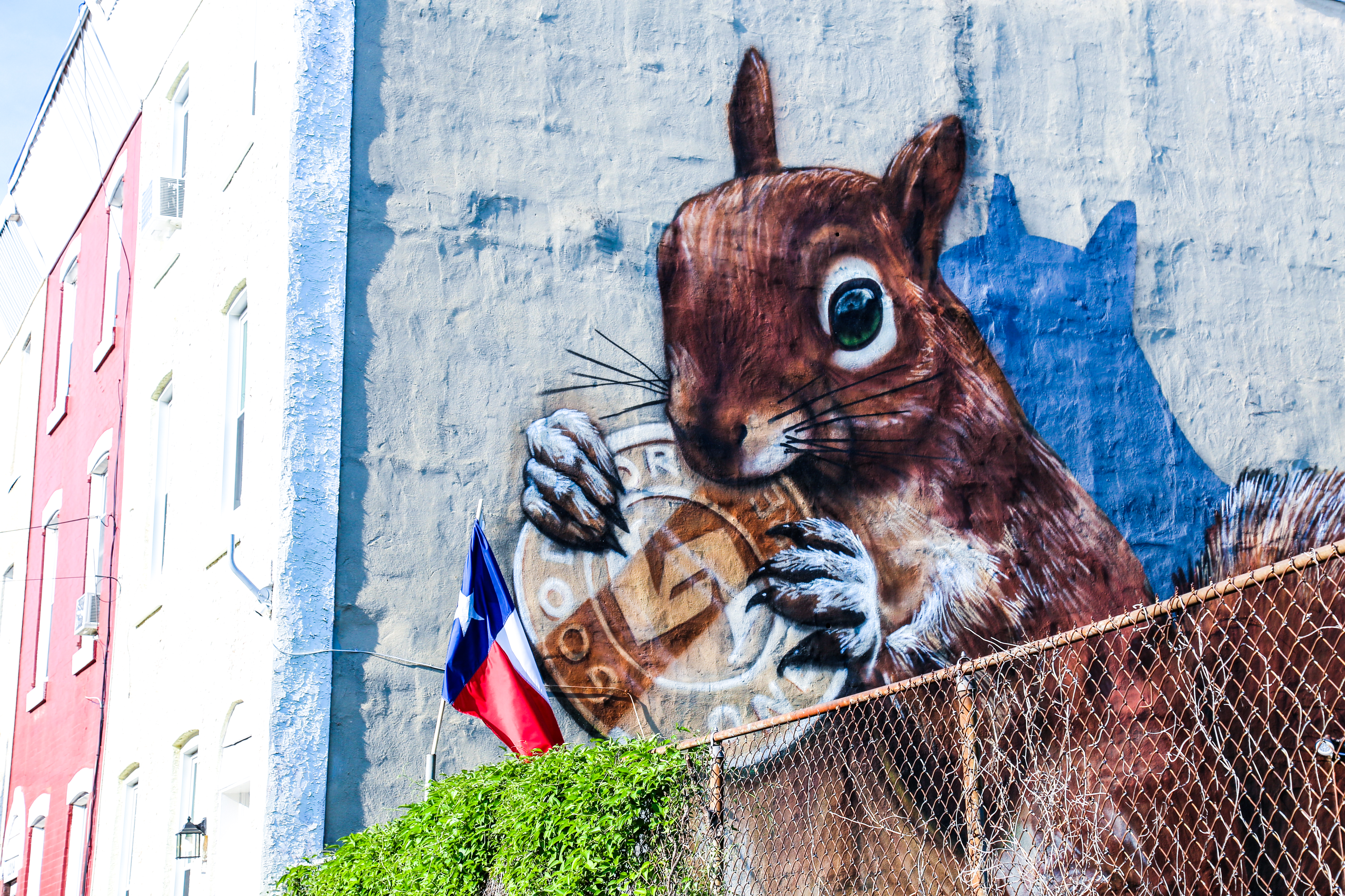 Paid for by donations with the wall volunteered by its owner, the mural is the second installment of V.U.R.T.’s Local Critters project, the first being that famous pigeon mural.