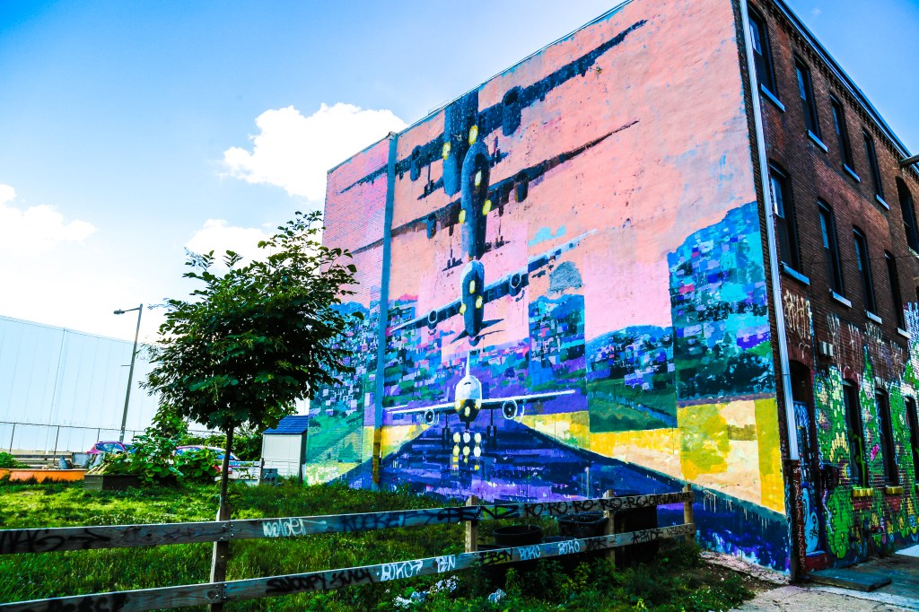 Ru8icon1 is a brilliant street artist/muralist from Barcelona, Spain. He arrived in Philly a few weeks ago, and in just that amount of time he coordinated and created these two incredible murals at Kensington avenue and Atlantic street in the Harrowgate neighborhood (photographed above) and at 5th and Cecil B. Moore streets in North Philadelphia/Kensington (photographed below.)