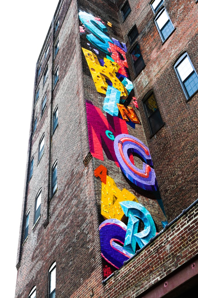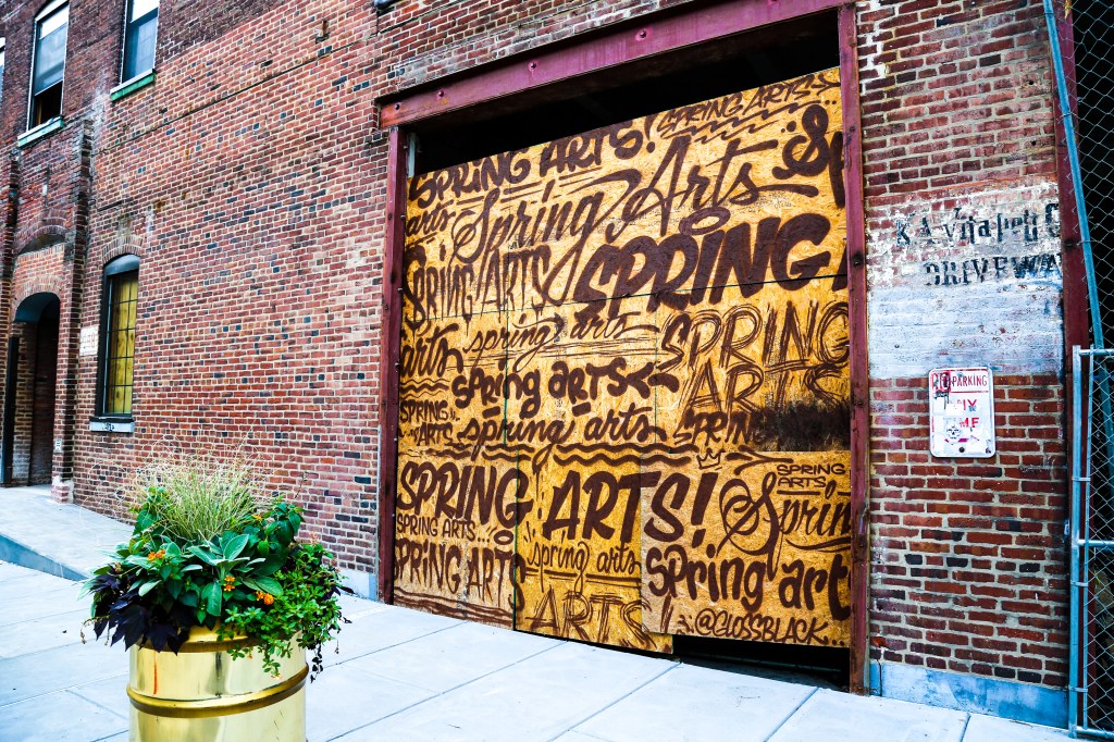 Located at 10th and Buttonwood streets, Philly-based muralist/graffiti writer Glossblack has just finished his latest neighborhood mural in Spring Art (aka the Eraserhood, aka Callowhill, aka the Loft District,) commissioned by Mural Arts Philadelphia and Spring Arts PHL.