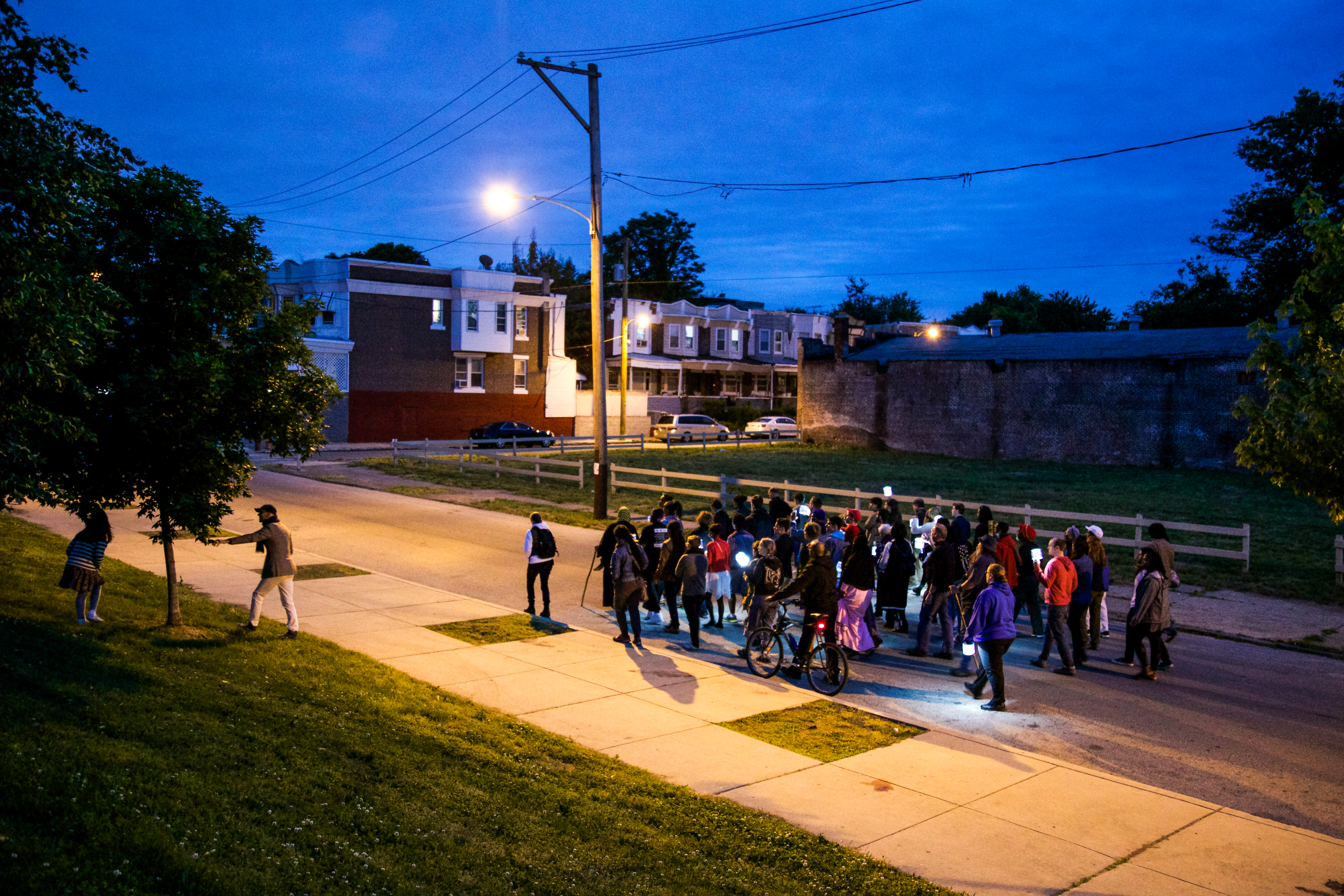 The photos in this post are from a Philadelphia Assembled procession from May in North Philadelphia’s Tioga neighborhood that was led by community members advocating for the permanent lighting of the community’s many, currently unlit train underpasses. It is one of dozens of projects created with hundreds of collaborators from across the city.