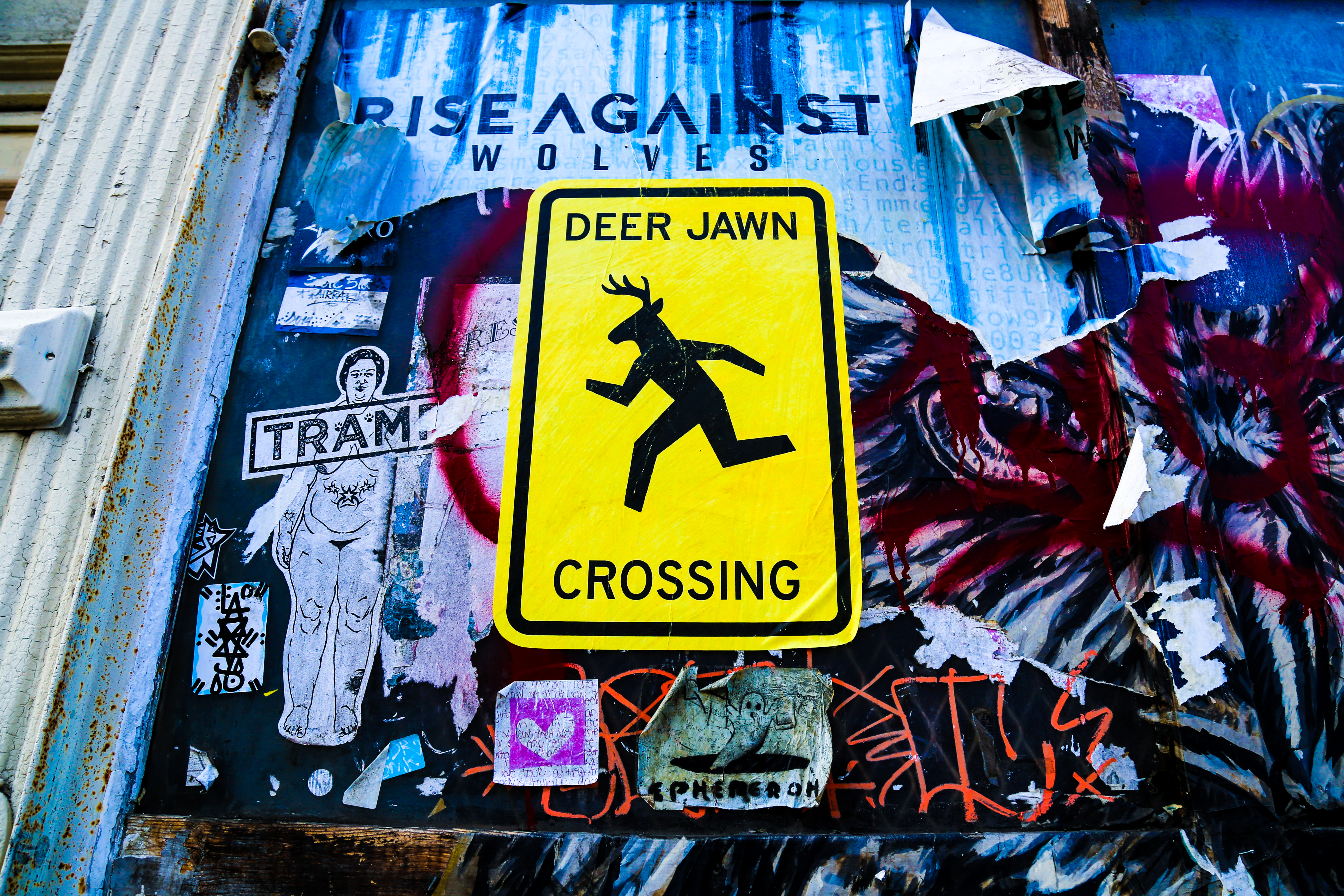 Over the last month (since late-July to be precise), mysterious “Deer Jawn” street signs have started popping up around Philly. The signs, which are installed as wheatpastes, stickers, and even a few realistic street signs, read either “Deer Jawn Crossing” or “Slow: Deer Jawn.” Some have even reported sightings of, well, a deer jawn walking the streets of Philadelphia. So, what is this all about?