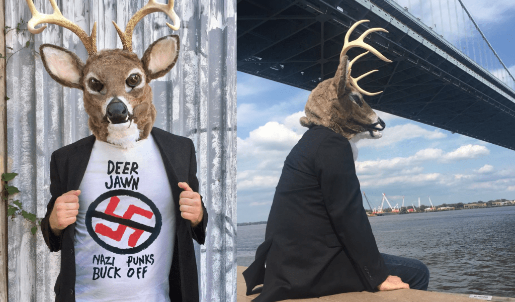 “I want to create art that people can find fun and entertaining, but if I can use it to help propel a message and touch people in a deep and meaningful way, then I think that’s cooler still. Whether Deer Jawn accomplishes that remains to be seen,” Deer Jawn responded when I asked about his “Nazi Punk Buck Off” tee shirt Instagram post and whether he saw himself as an activist as well as an artist.
