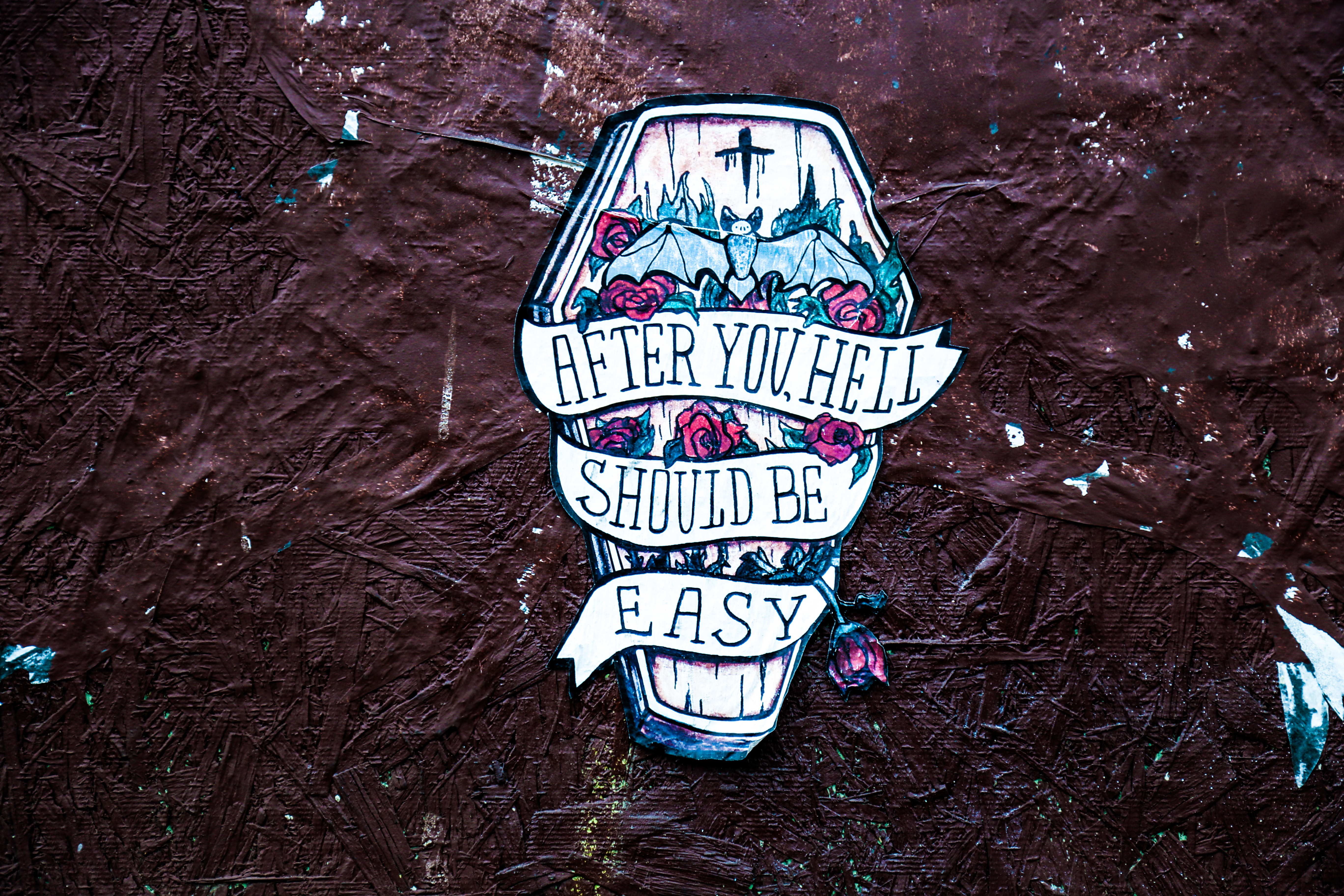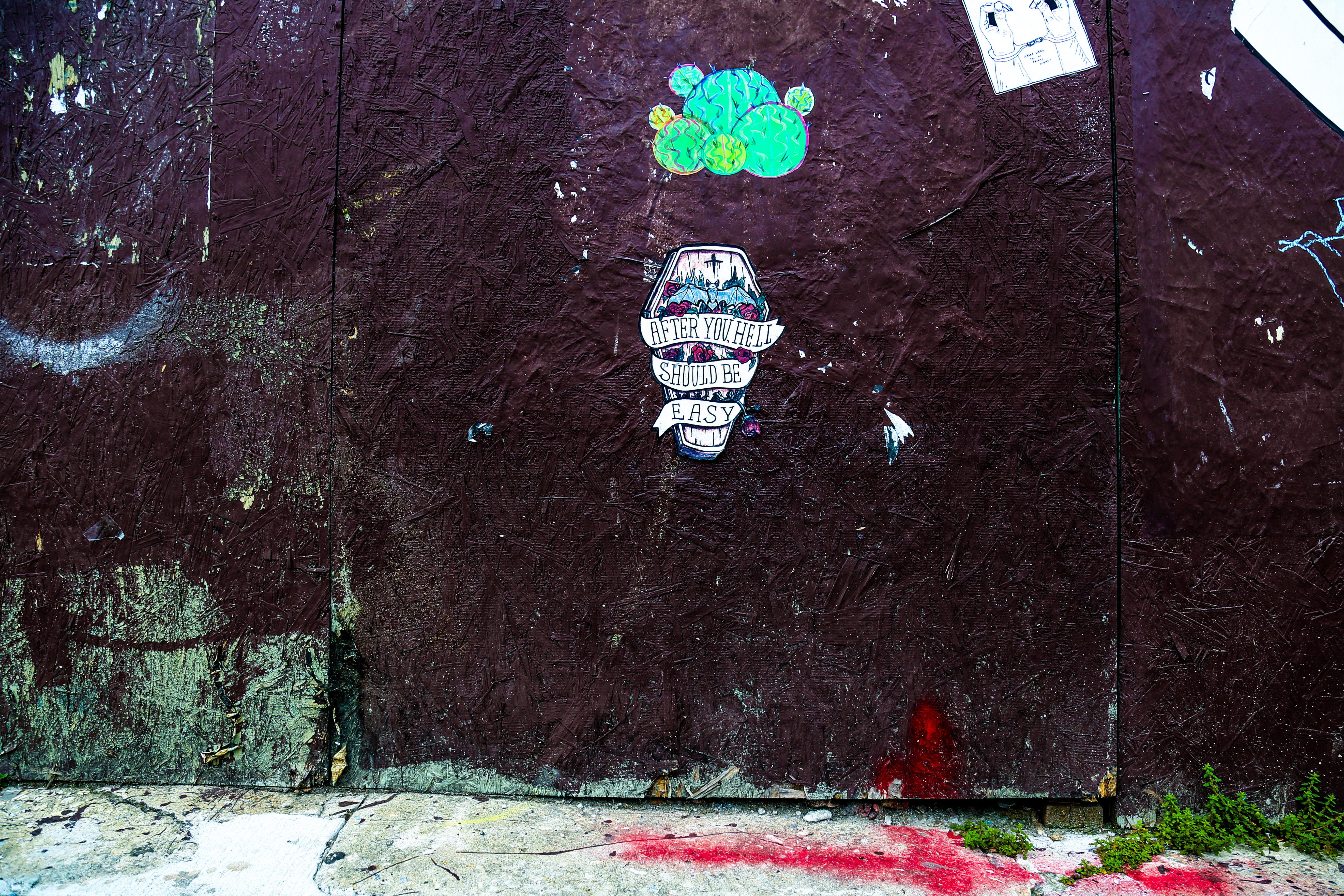 I: The inspiration behind the coffins is very personal. It came at a time in my life where things took a 180 and crashed. It was an overall eruption of emotions that inspired me to paste my thoughts to the streets, even if what I had to say was not so nice. (Sorry not sorry) These coffins have allowed me to vent and bitch my heart out. I like to think of them as my triumph over the pain I once willingly felt. These coffins were only meant to be a four part series, however I’m beginning to rethink that due to the positive feedback and love I’ve received about them. I wanted to paste not only something for me, but something that anyone could relate to…something unexpected that you could randomly spot on a street corner and it would make you feel as strong as it has made me.
