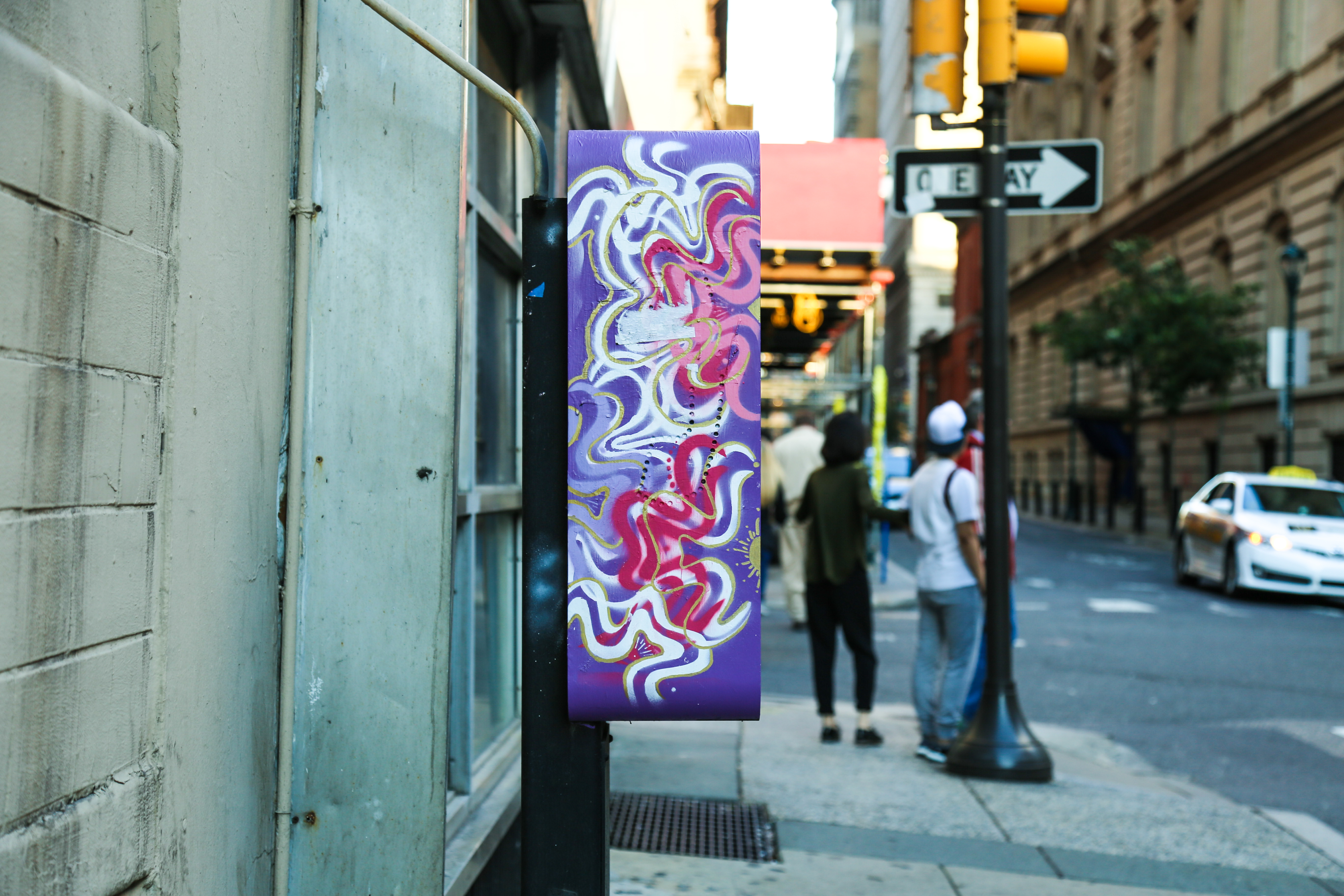 The artist who painted these little murals did so while she was visiting Philly from Chicago a couple of months ago, so it’s unlikely we’ll see any more pop up anytime soon from her. Nevertheless, you can check out her Instagram here to see the handful of locations she put these up in Philly, including 9th and Locust streets (photographed above) and 15th and Sansom streets (photographed below!)