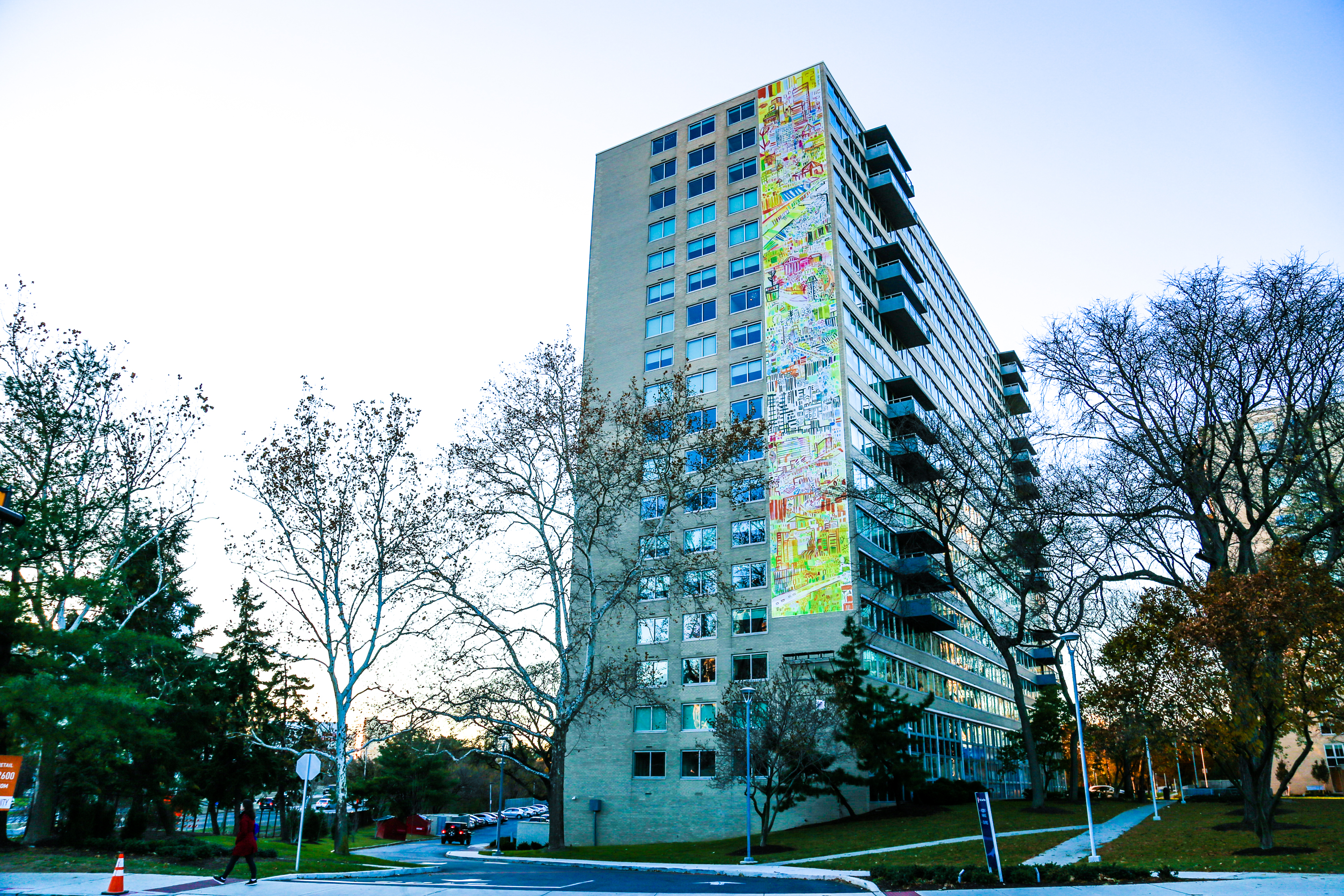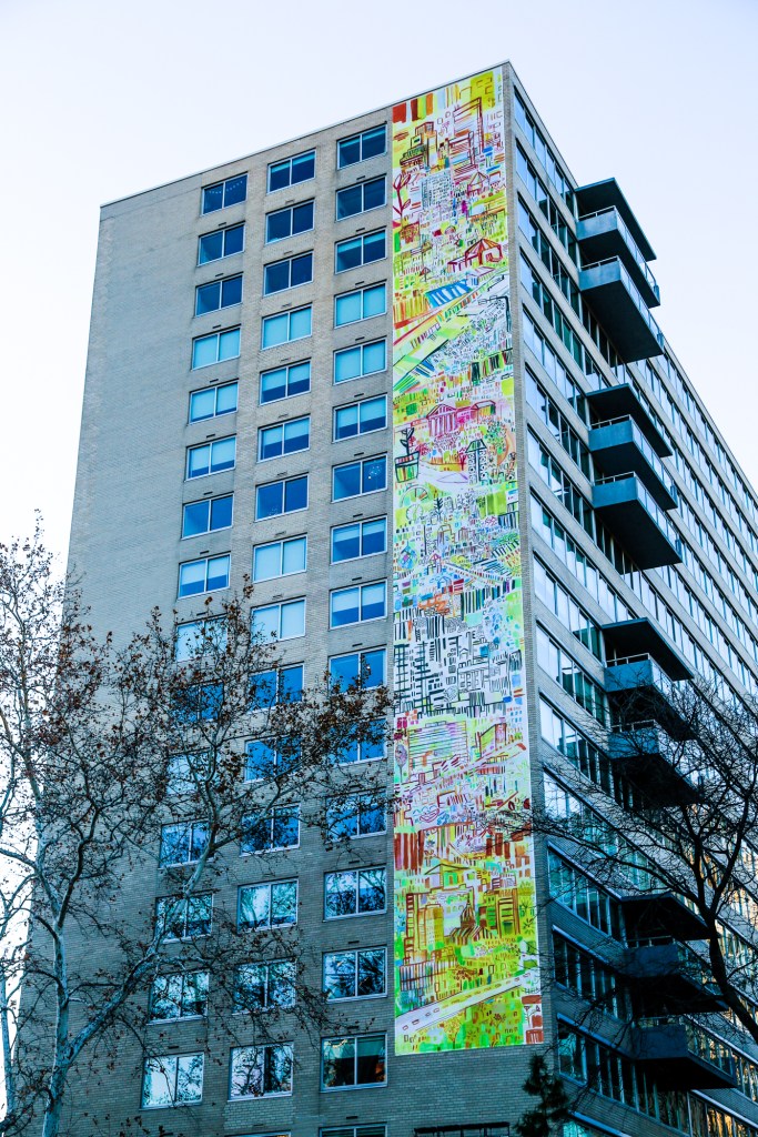 Absolutely love this 15-story banner mural by artist Miriam Singer on the Benjamin Franklin Parkway in Center City! (Exact location here.) Installed this past September, last week was the first time I got to see it in person and it is exactly the kind of scale and ambition of mural I personally wanna see more of in Philly… Shout out to Mural Arts Philadelphia for pulling this off!