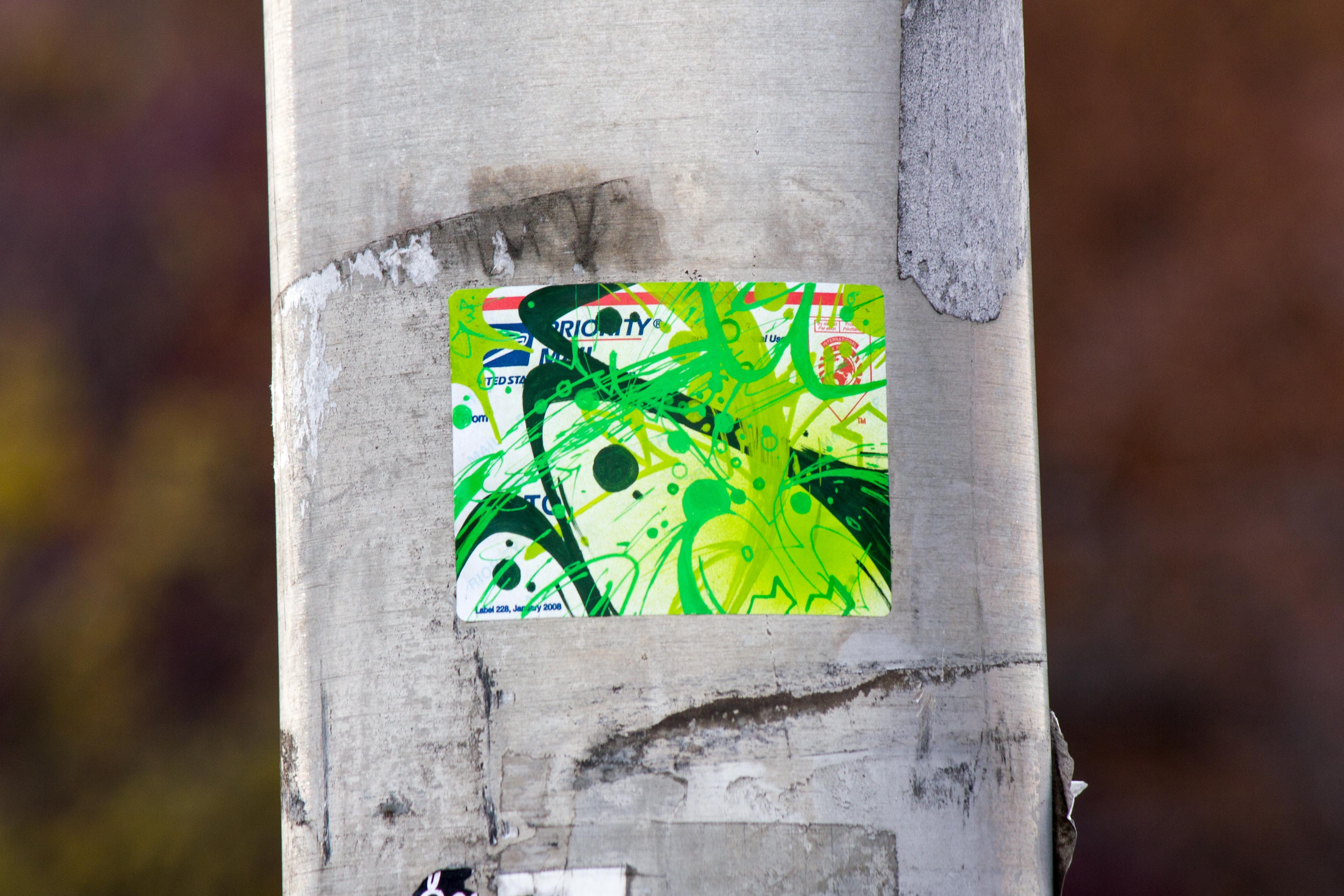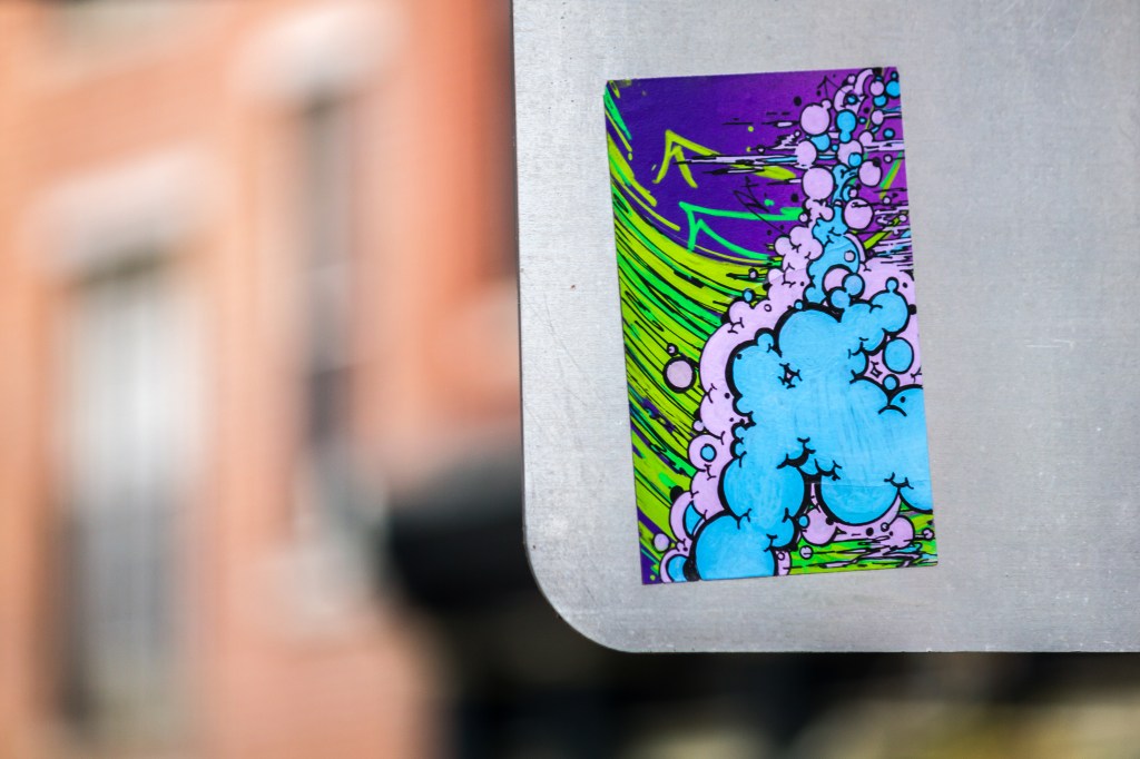 Darkmeal: Probably as abstract graffiti – I incorporate Philly handstyles into what I do. Primarily it’s sticker art, but I’ve got some stuff on canvas and other materials that doesn’t go out into the public.