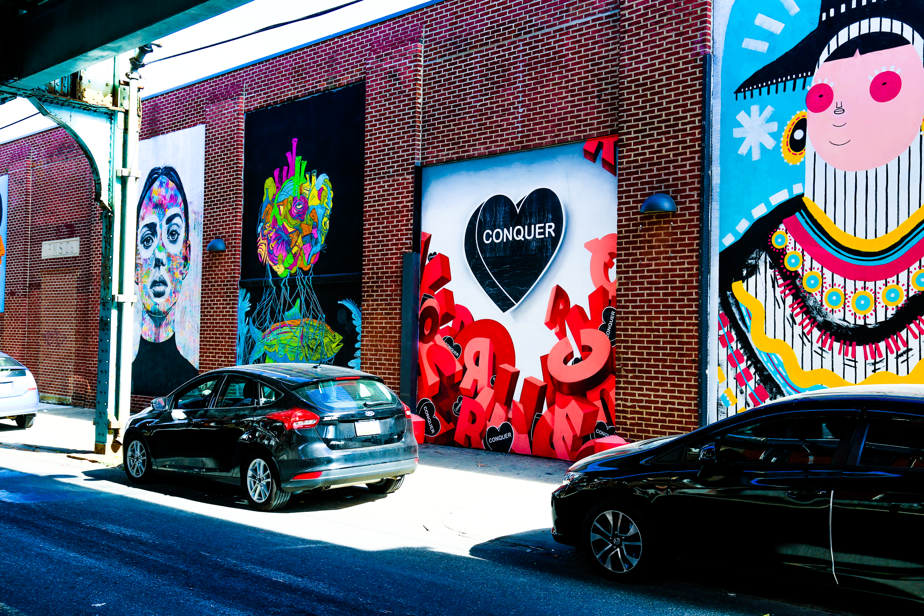 And if you’re asking what’s the difference between street art, murals, and public art: murals and public art are commissioned, legal forms of art in the public space. And street art is not commissioned (aka illegal) but it’s usually (or at least often) either done on buildings/walls that are abandoned or on construction walls. And sometimes street art is even done in temporary ways that are completely non-destructive, like most yarnbombing for example.