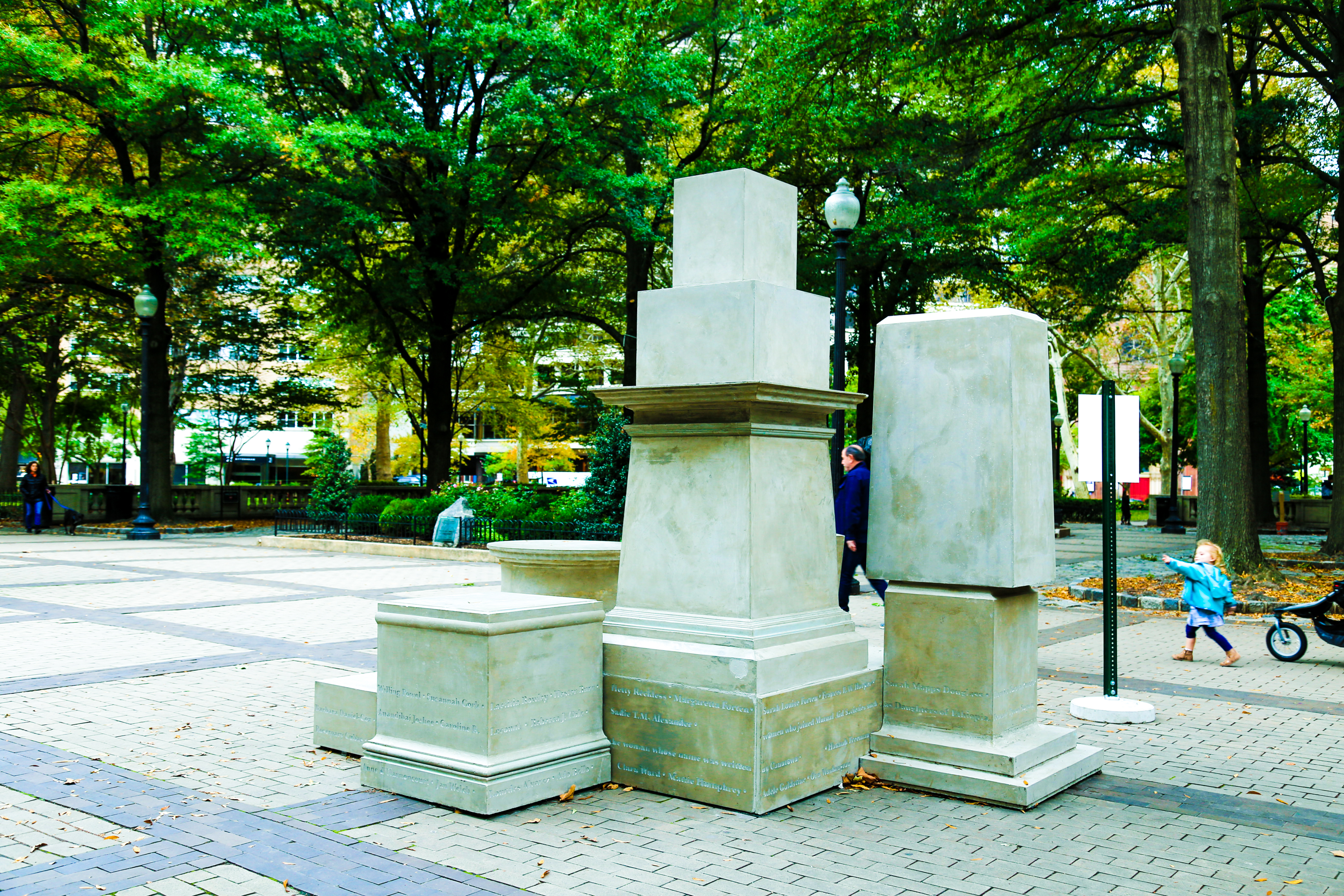 Monument Lab, which was curated by Paul M. Farber and Ken Lum, and produced with Mural Arts Philadelphia, was a bold and ambitious project to begin with (over five years in the making!) when the events of Charlottesville just weeks before it was scheduled to launch propelled it to a new level of importance. After hundreds of white nationalists and their supporters gathered for a rally over plans to remove a Confederate statue in Charlottesville ultimately ending in the death of a counter-protester, cities and towns around the country started looking at their monuments with an even more critical eye. Meanwhile, Philadelphia was poised to host a two-month, citywide exhibition about the very topic that was now on everyone’s minds.