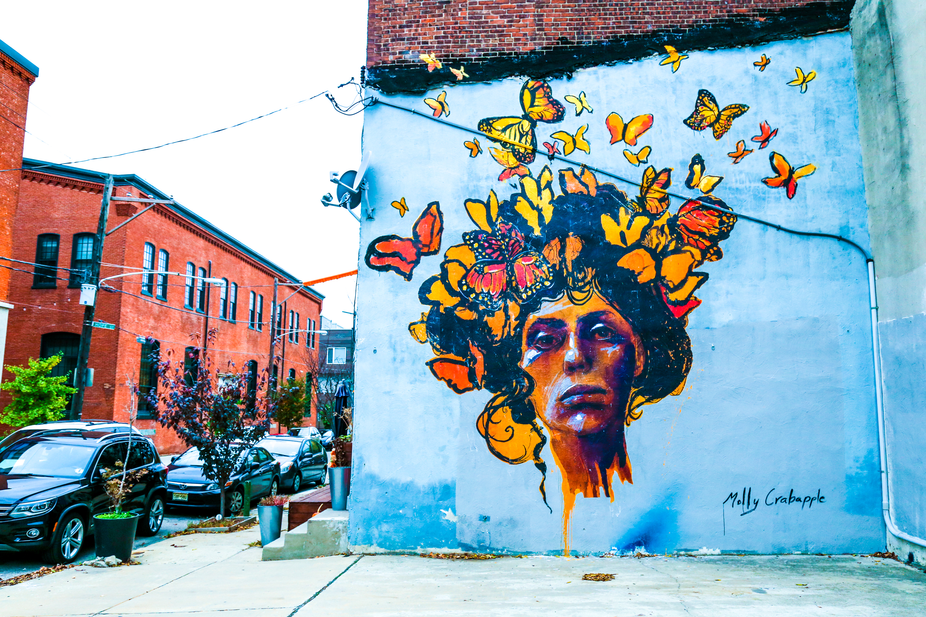 Molly Crabapple painted an incredibly popular (a photo of it quickly became one of my most liked photos on Instagram this year) new mural this fall at Front and Oxford streets in Fishtown, a part of the We The People series curated by RJ Rushmore and commissioned by Mural Arts Philadelphia.