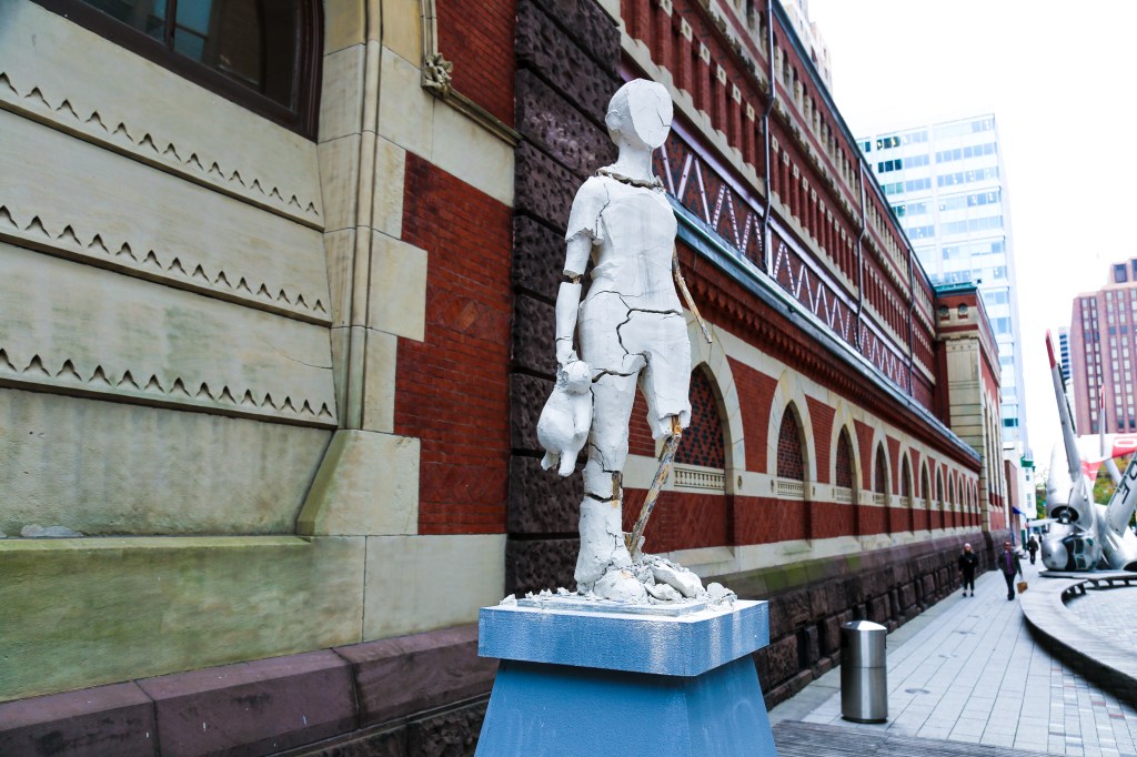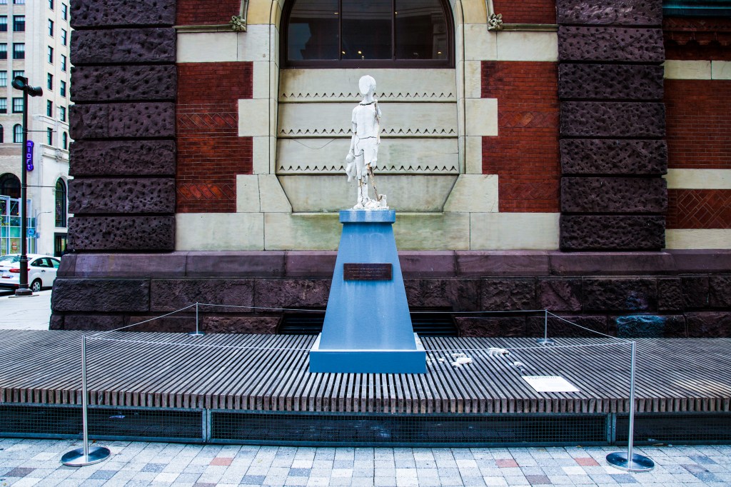 A meditation on the history and present-day significance of immigration in Philadelphia and beyond, Tania Bruguera‘s Monument to New Immigrants  installed a physically incomplete unfired sculpture of an immigrant child – unmarked by race, ethnicity, or gender to represent not a particular community, but all immigrants – which after weeks of weathering and outdoor conditions deteriorated and slowly disappeared upon which another identical sculpture took its place. This cycle repeated throughout the Monument Lab exhibition of which it was a part, until the series of fabricated sculptures fully disappeared. In talking about her installation, the artist remarked that the installation was an ode to “arrival, adaption, and renewal.” (Read more here.)